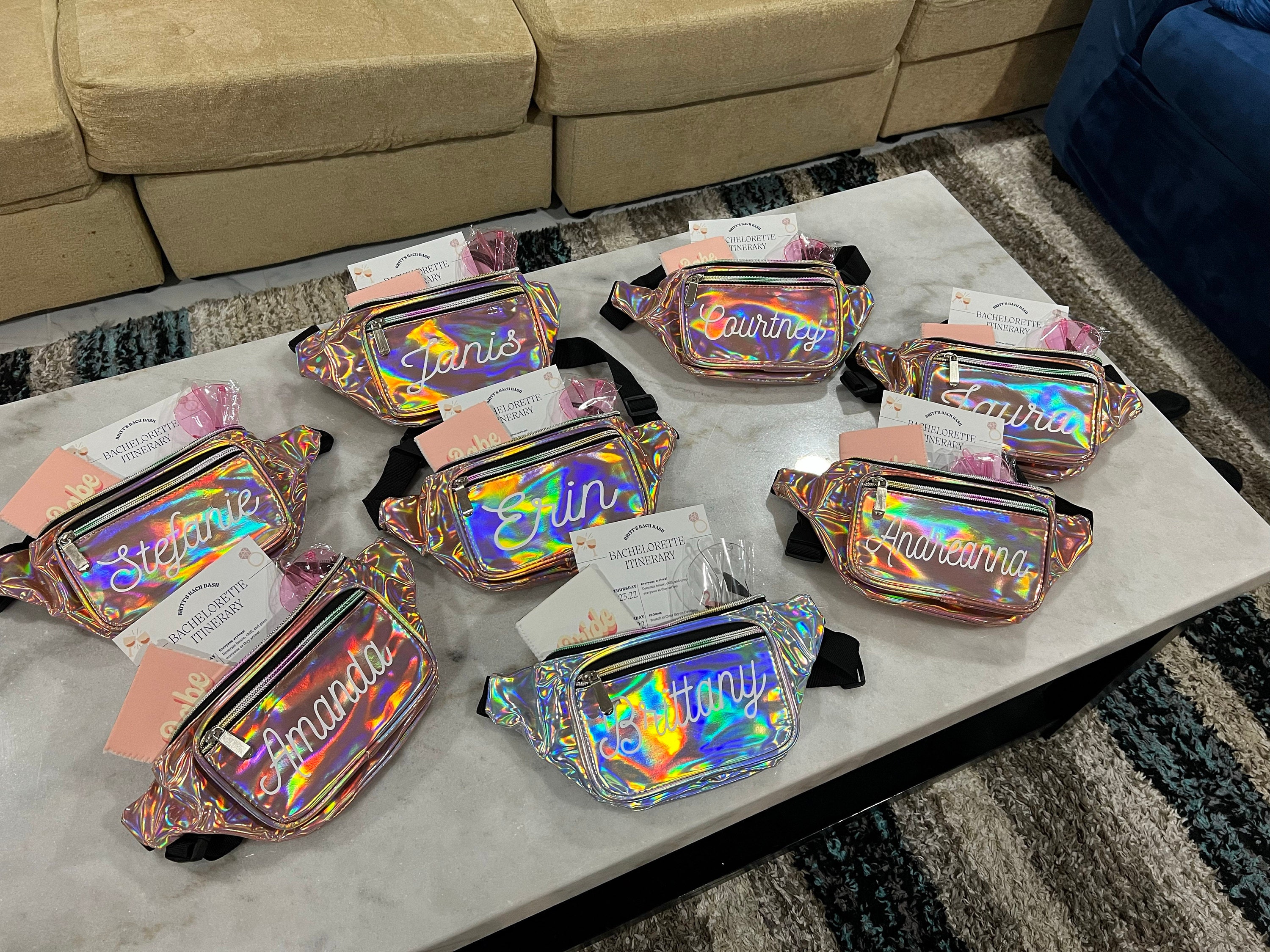 These custom Fanny packs can be used in so many ways! Bachelorette parties, sport teams, teacher’s gifts or party favors