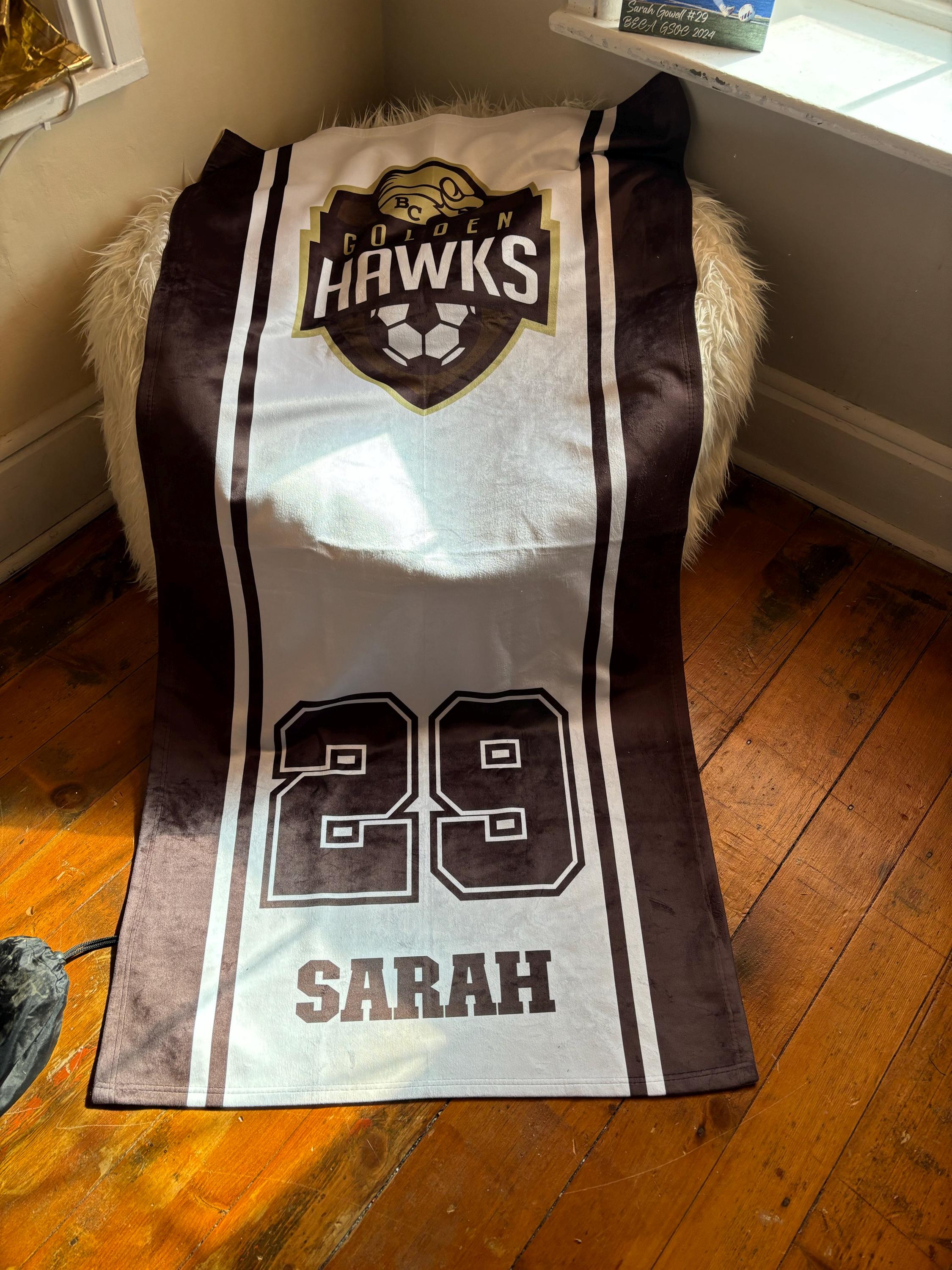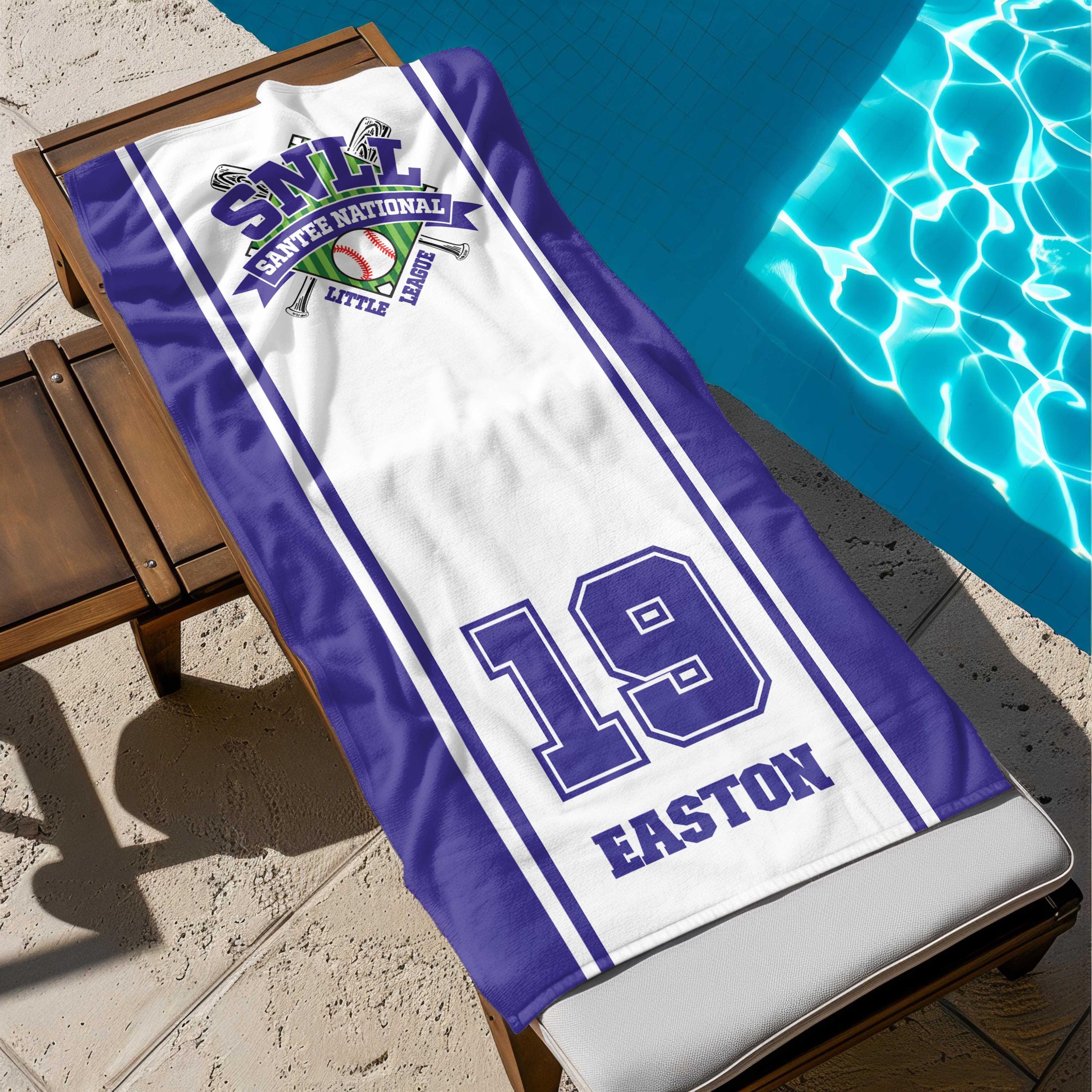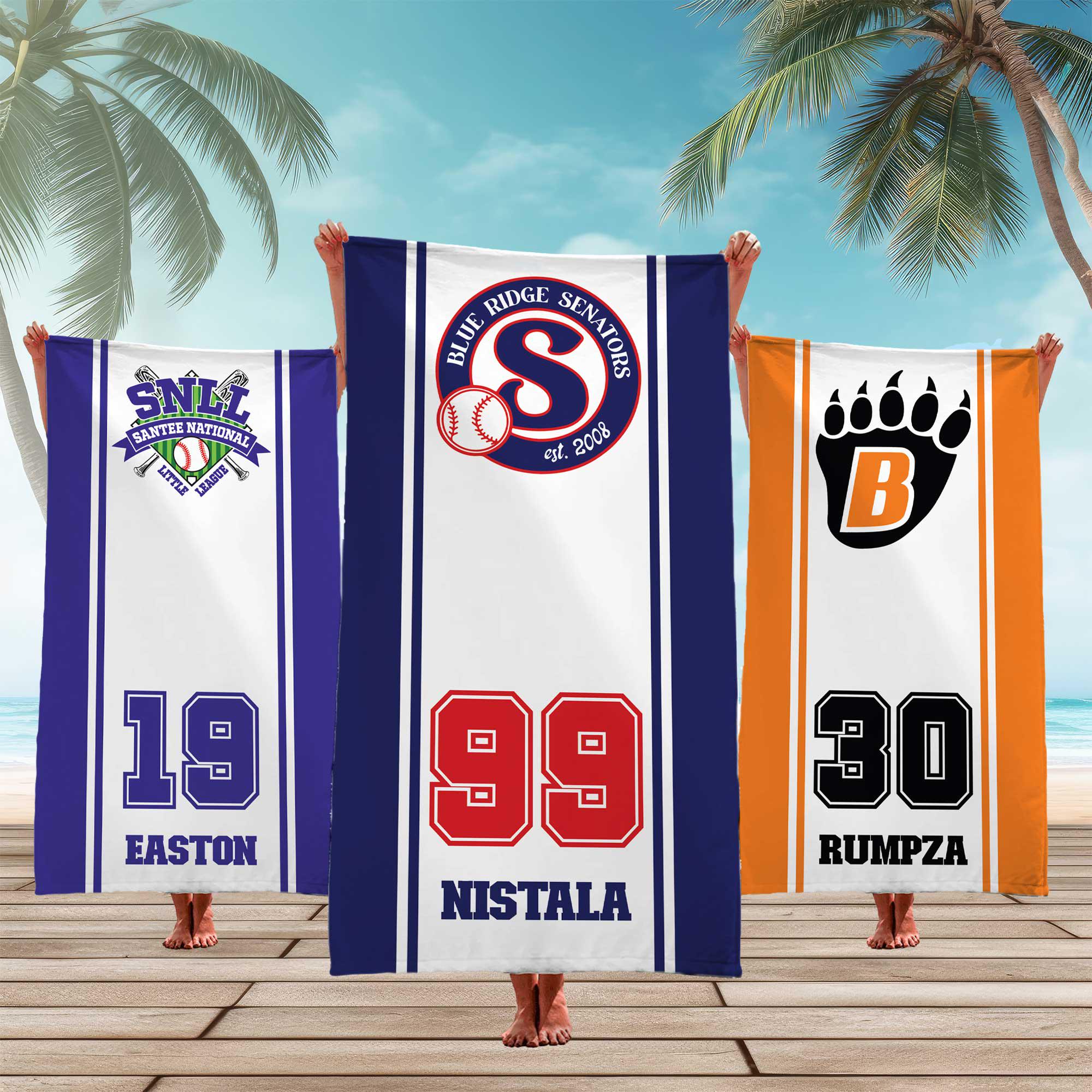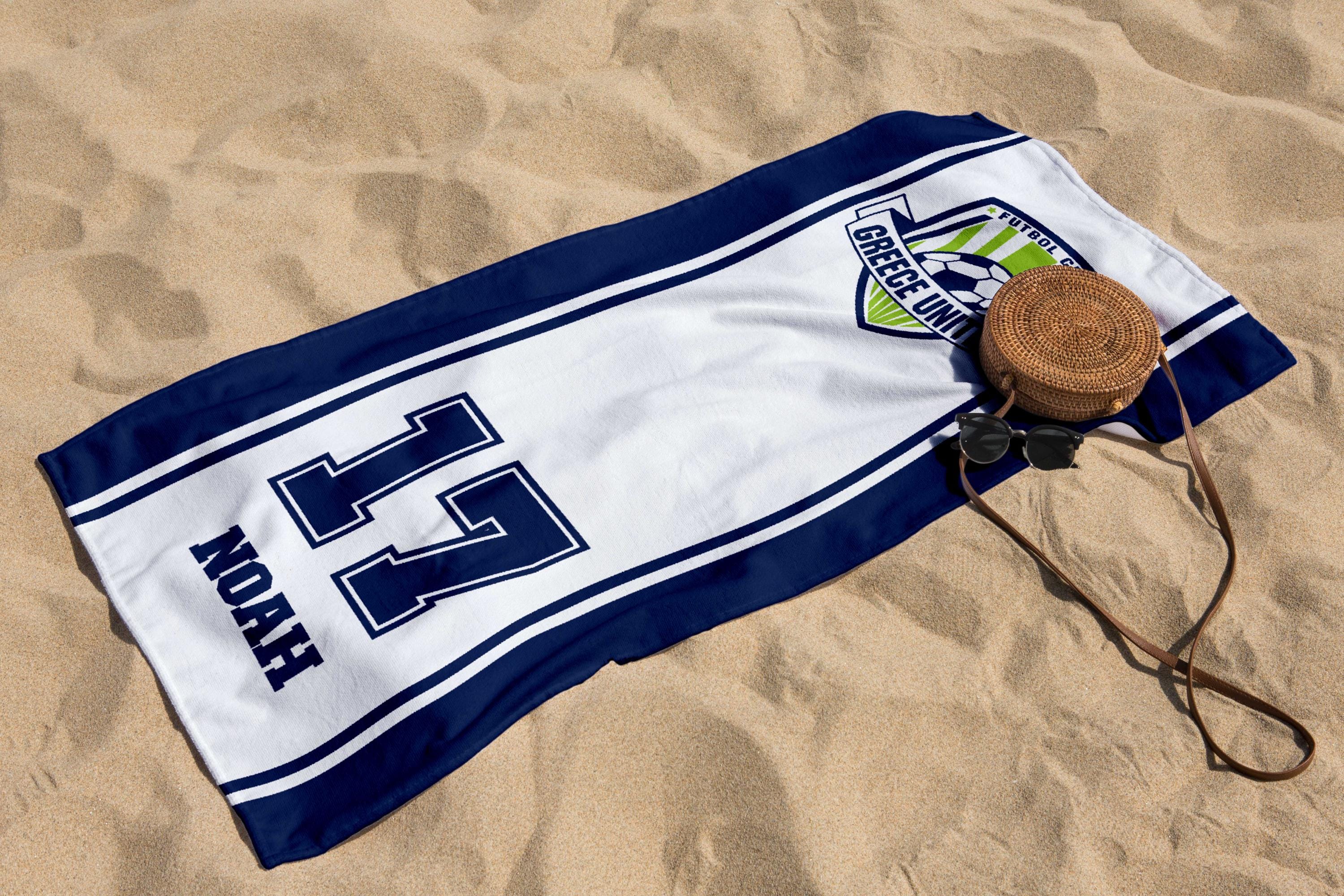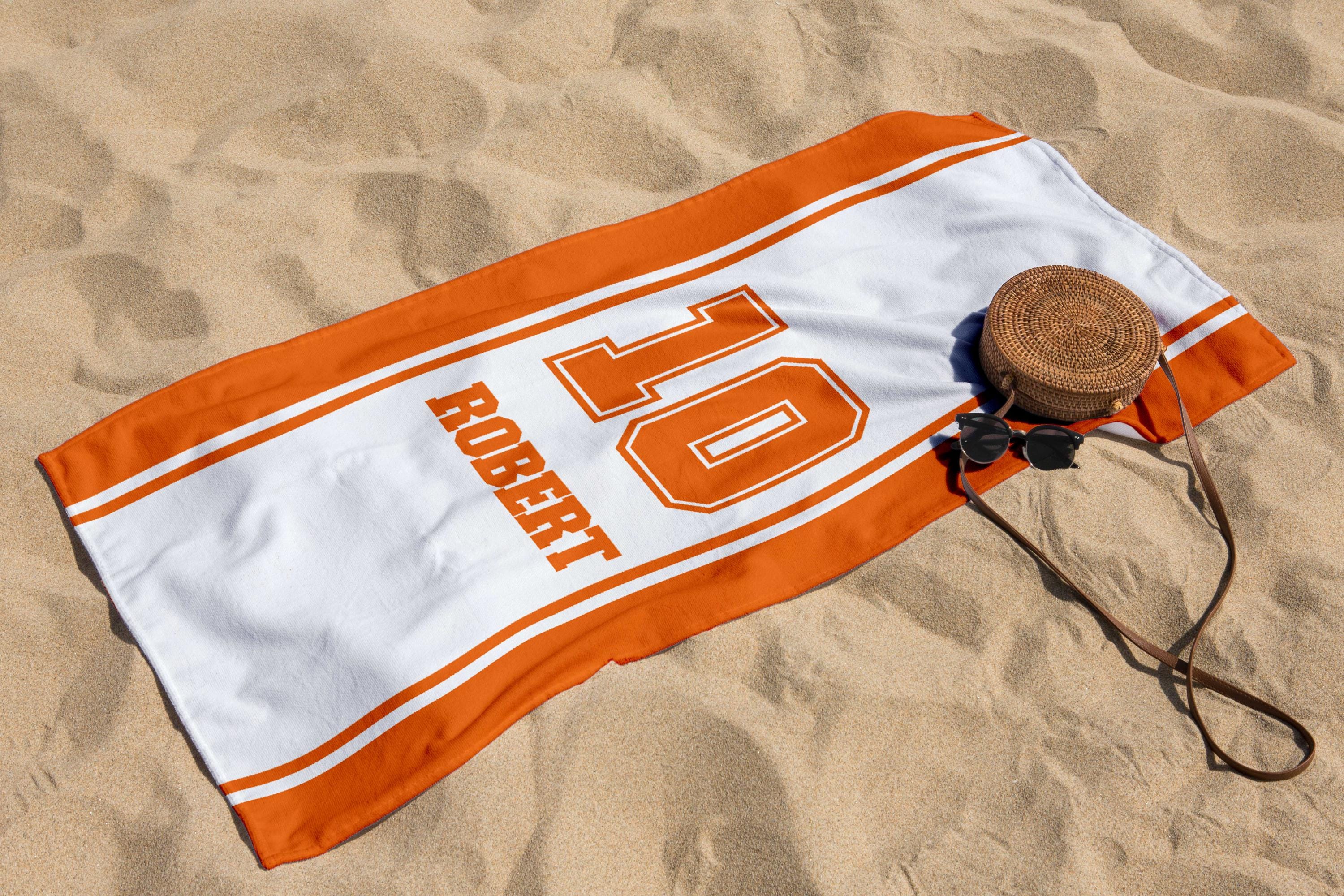 - Luxuriously soft, premium, quick-drying beach towel personalized with your name