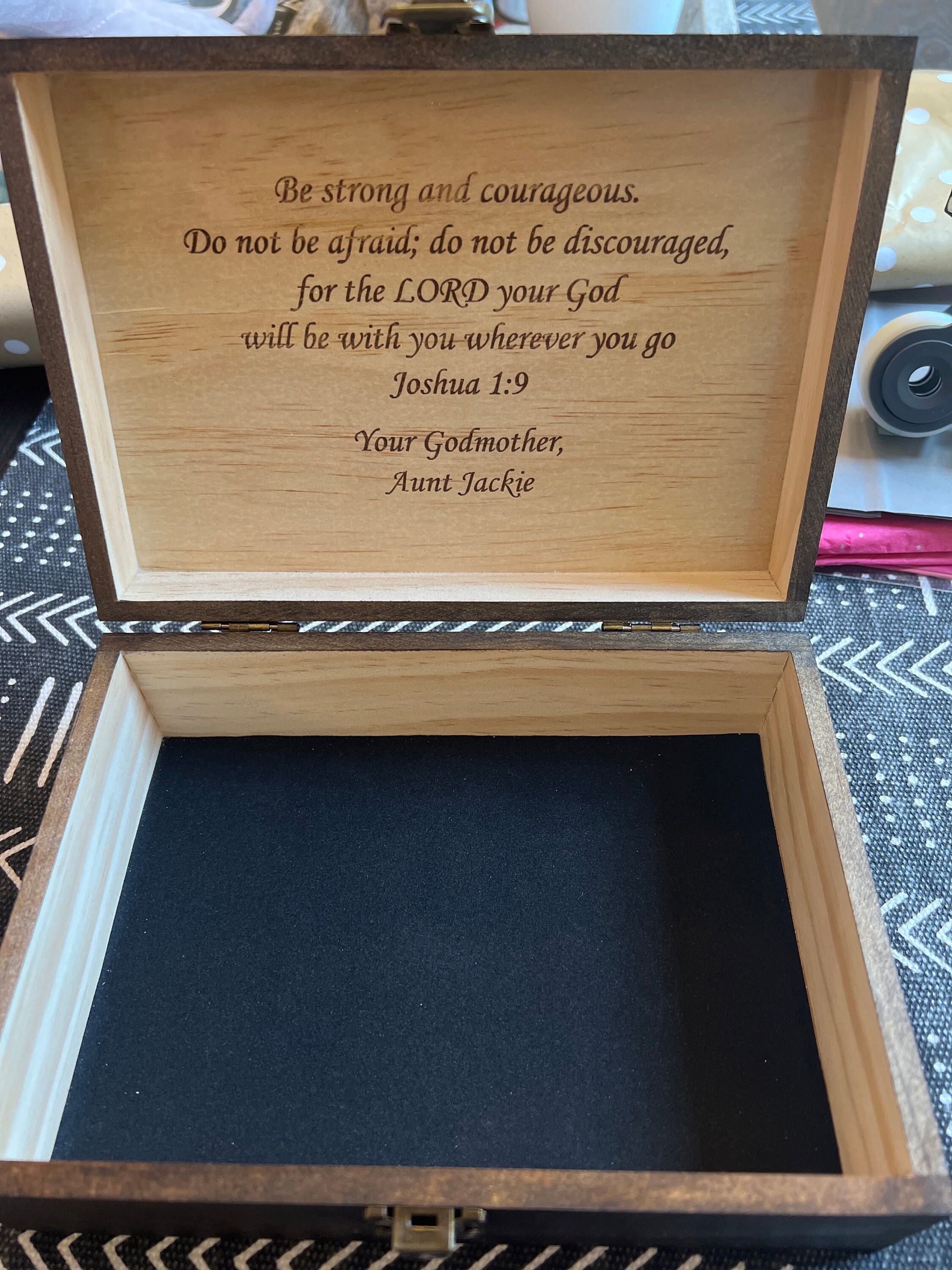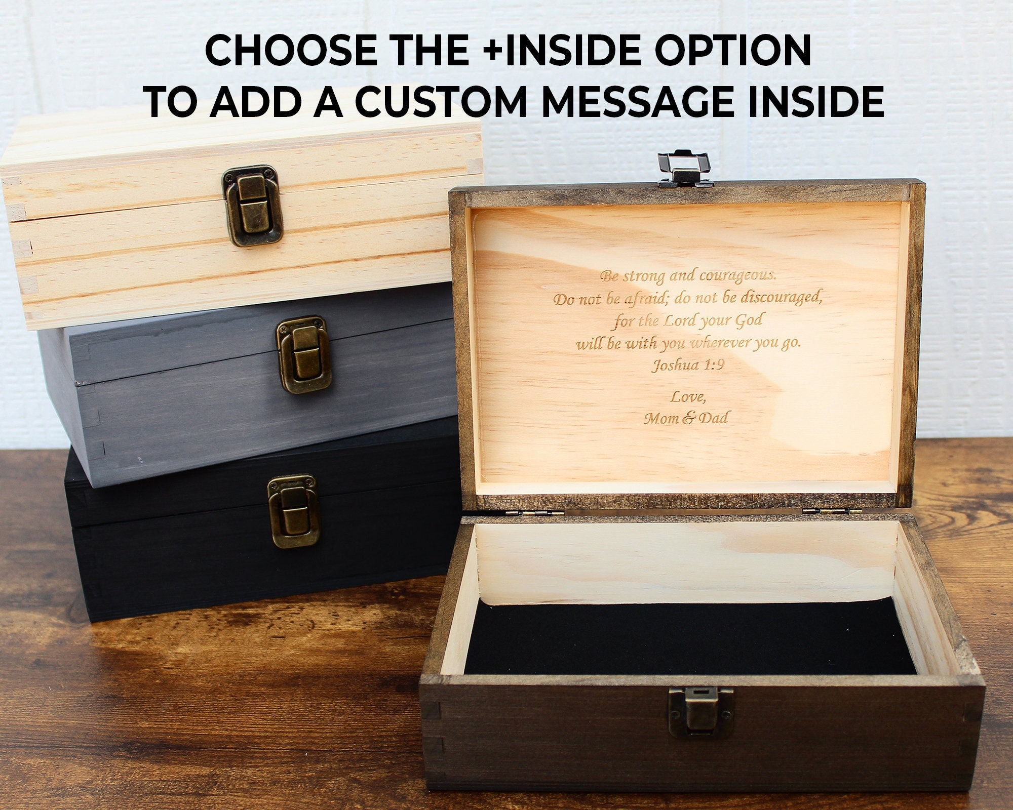 You can edit any text on your box with personalized engraving details! Change a name, date, quote, or any text! Just put all engraving details in the "Notes to Seller" box at the end of checkout. Please let me know which font you would like in your notes! 🔹Popular Quotes to Use:🔹