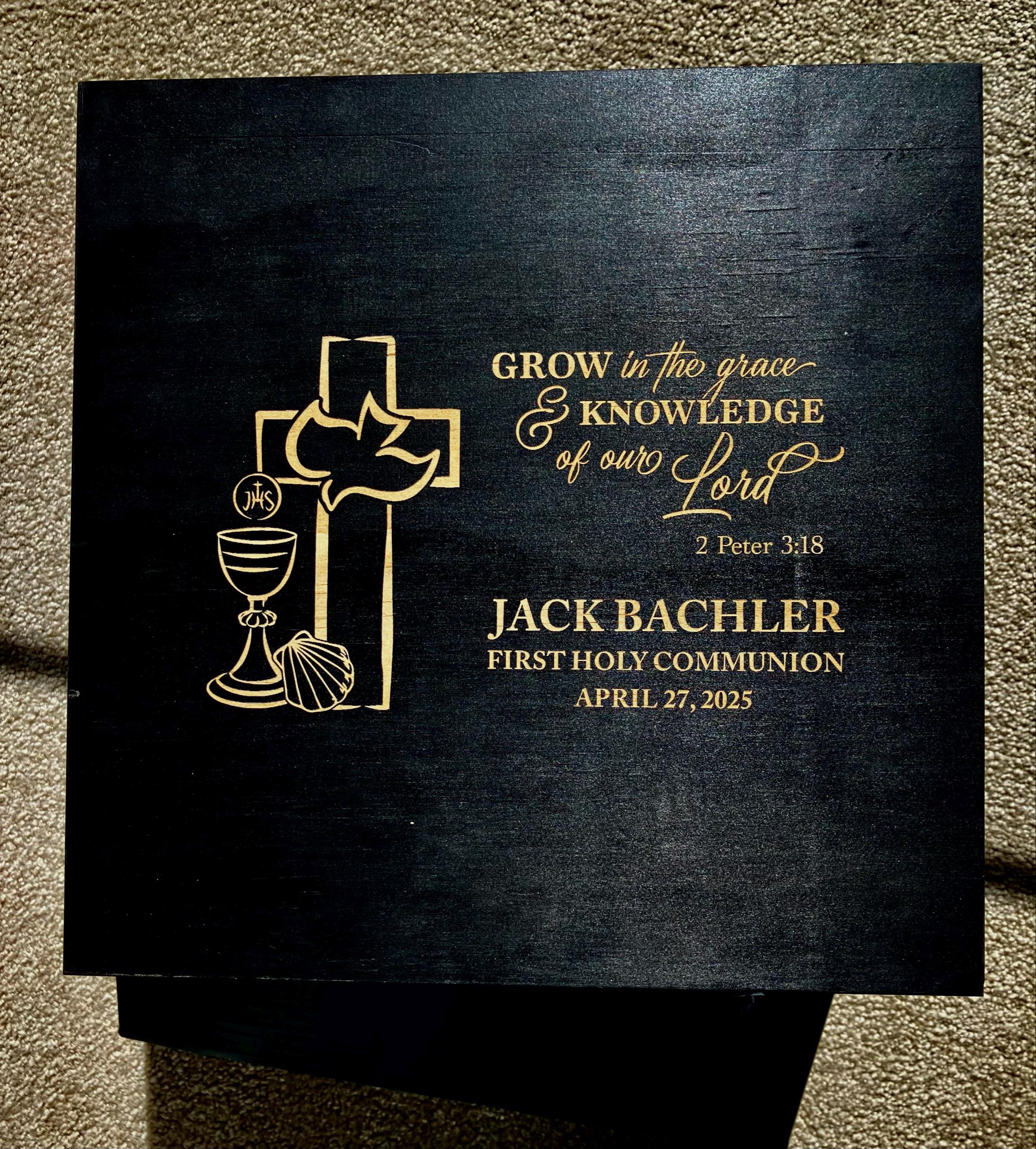 Custom Wooden Christening, Naming, First Communion, Confirmation Gift Memory Box with Your Personalized Engraving!