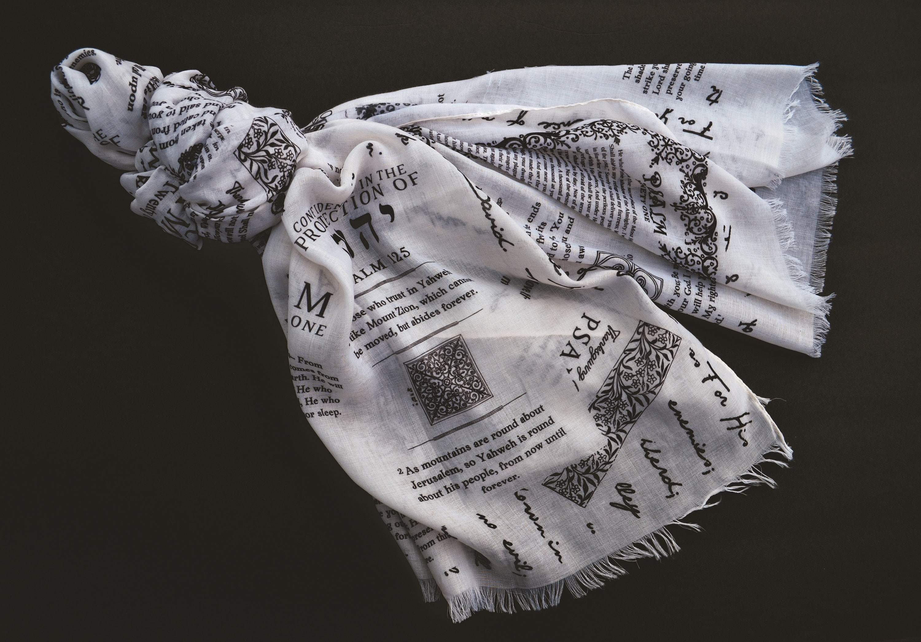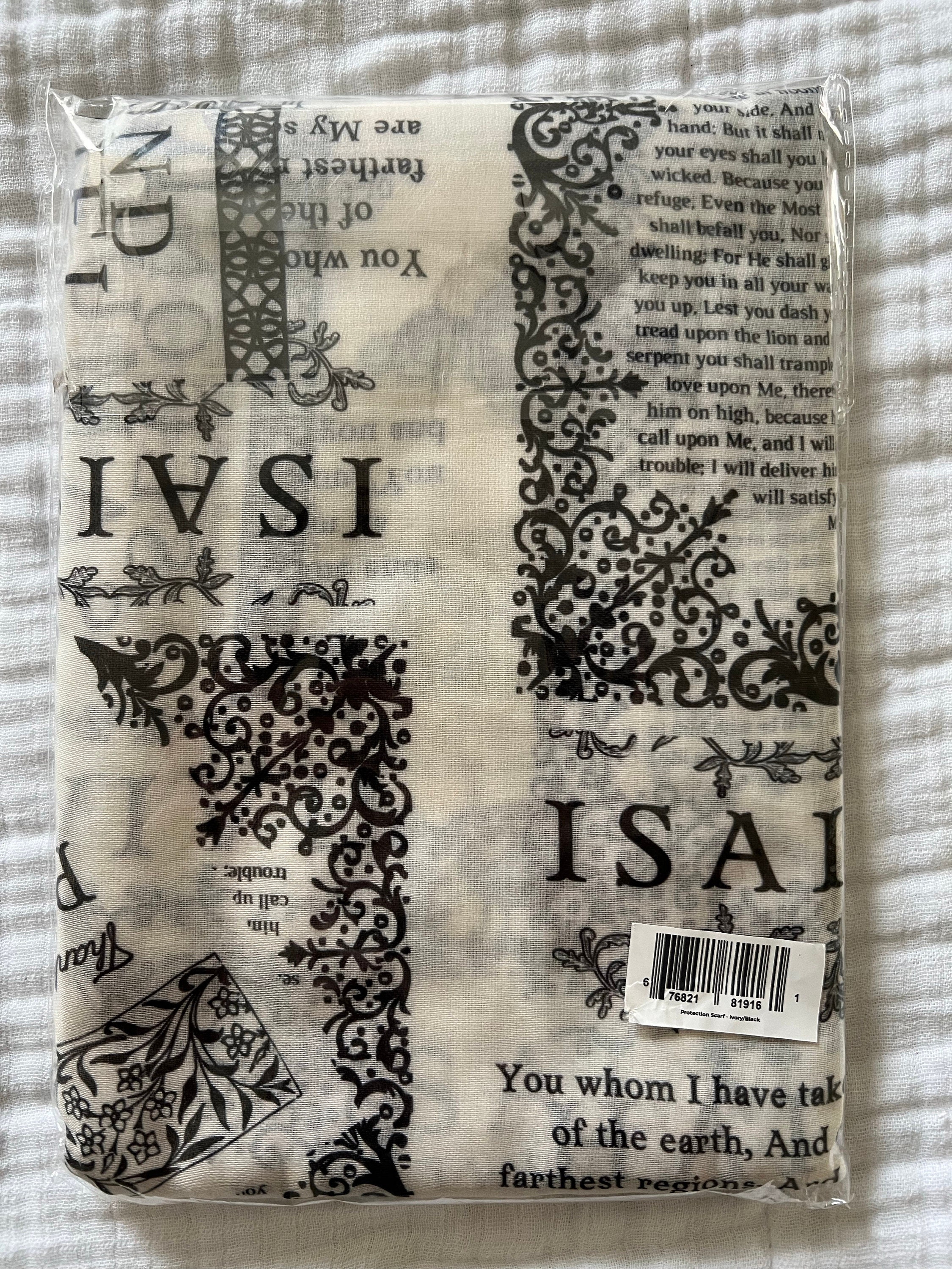 Emblazoned with scripture, this scarf is a declaration of God's unchanging love and care, with Jesus' name "Yeshua" written in Hebrew, affirming His everlasting role as our protector. It features seven of the most popular scripture verses, including Psalm 23 and Psalm 91, providing spiritual comfort and protection for those who seek solace in God's Word.