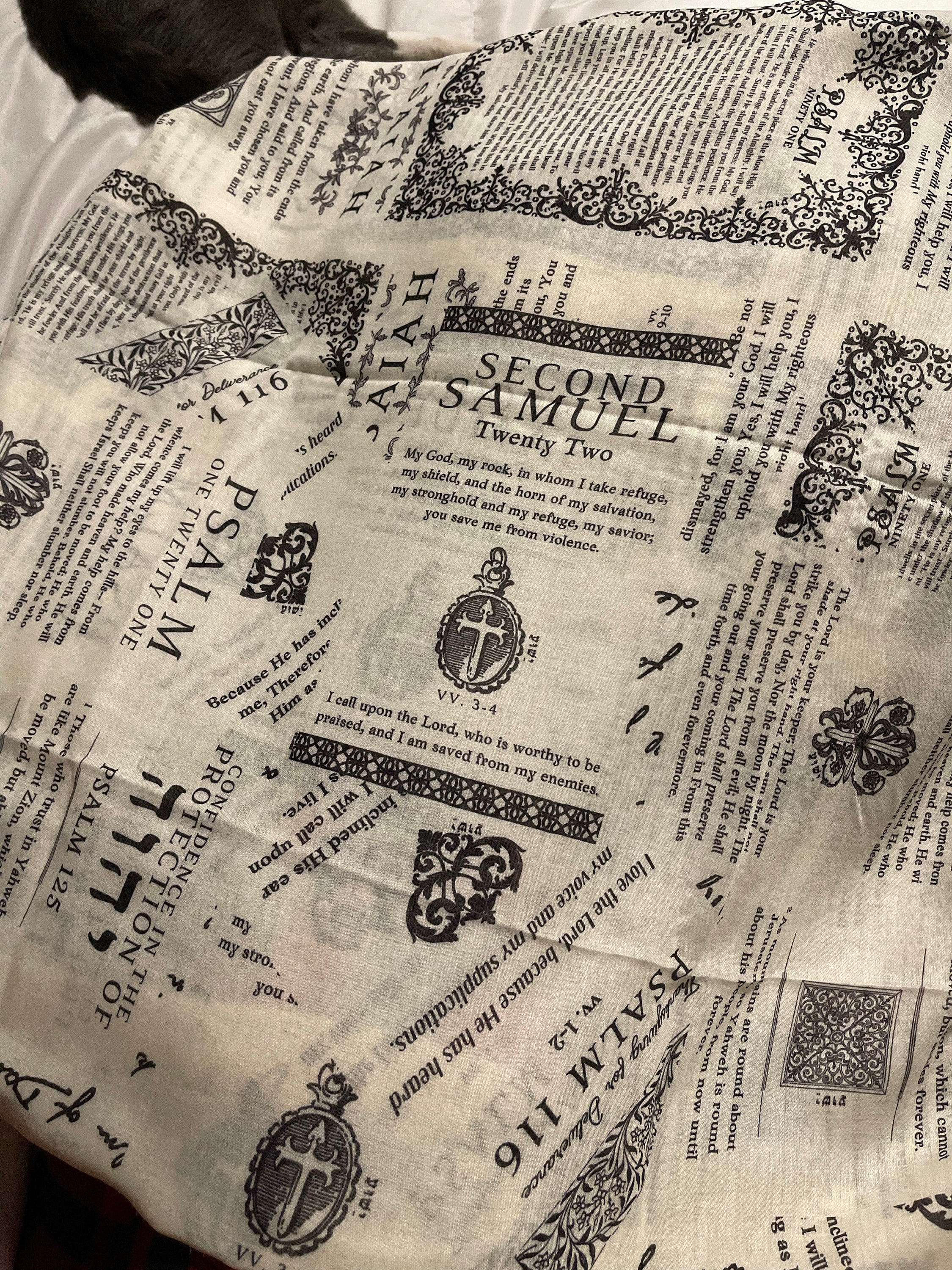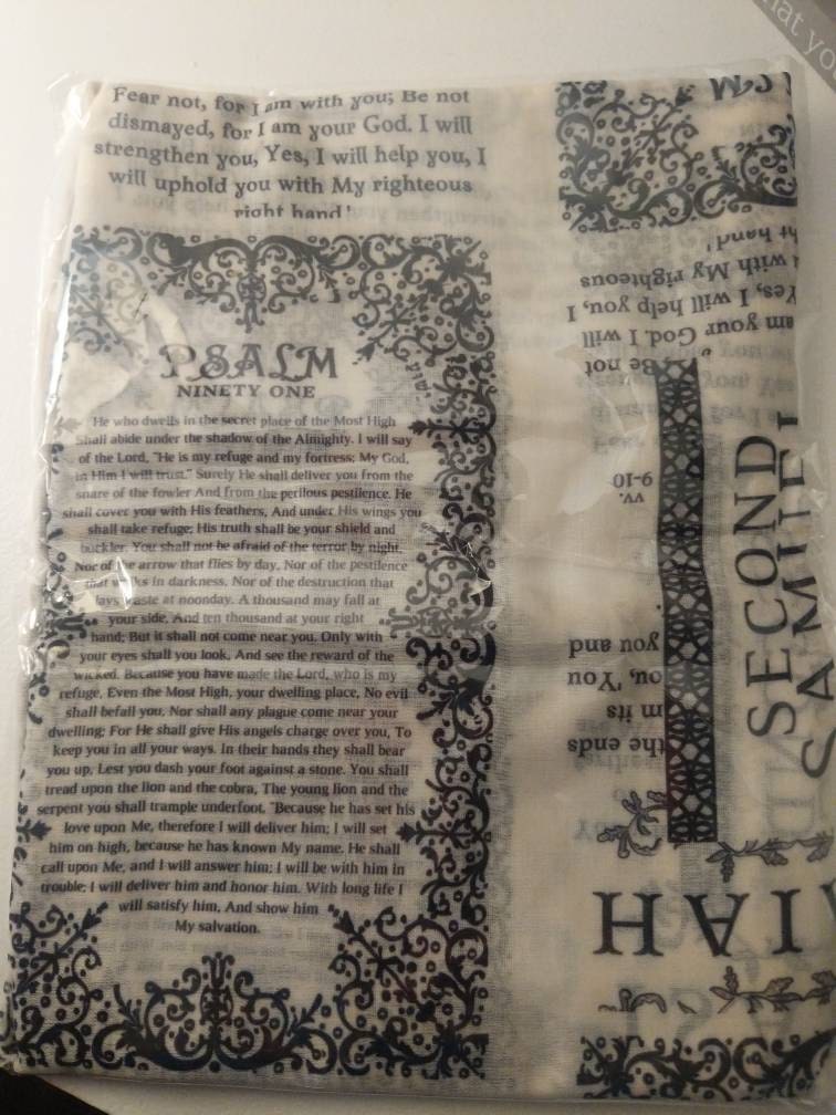 Made of soft polyester, this scarf drapes well and doesn't fall apart, making it perfect for those seeking a tangible connection to the Bible in daily prayer, or for comfort in any journey.