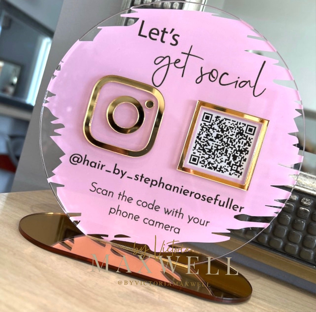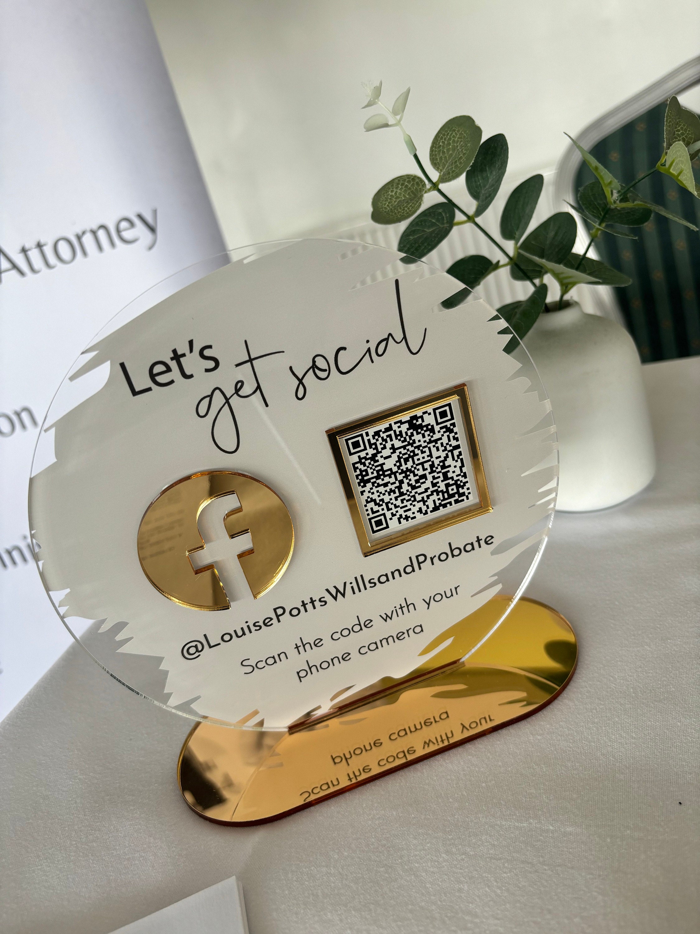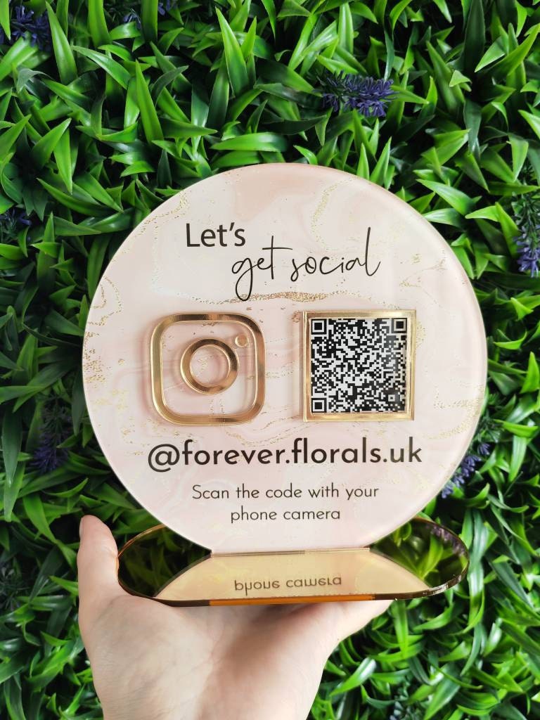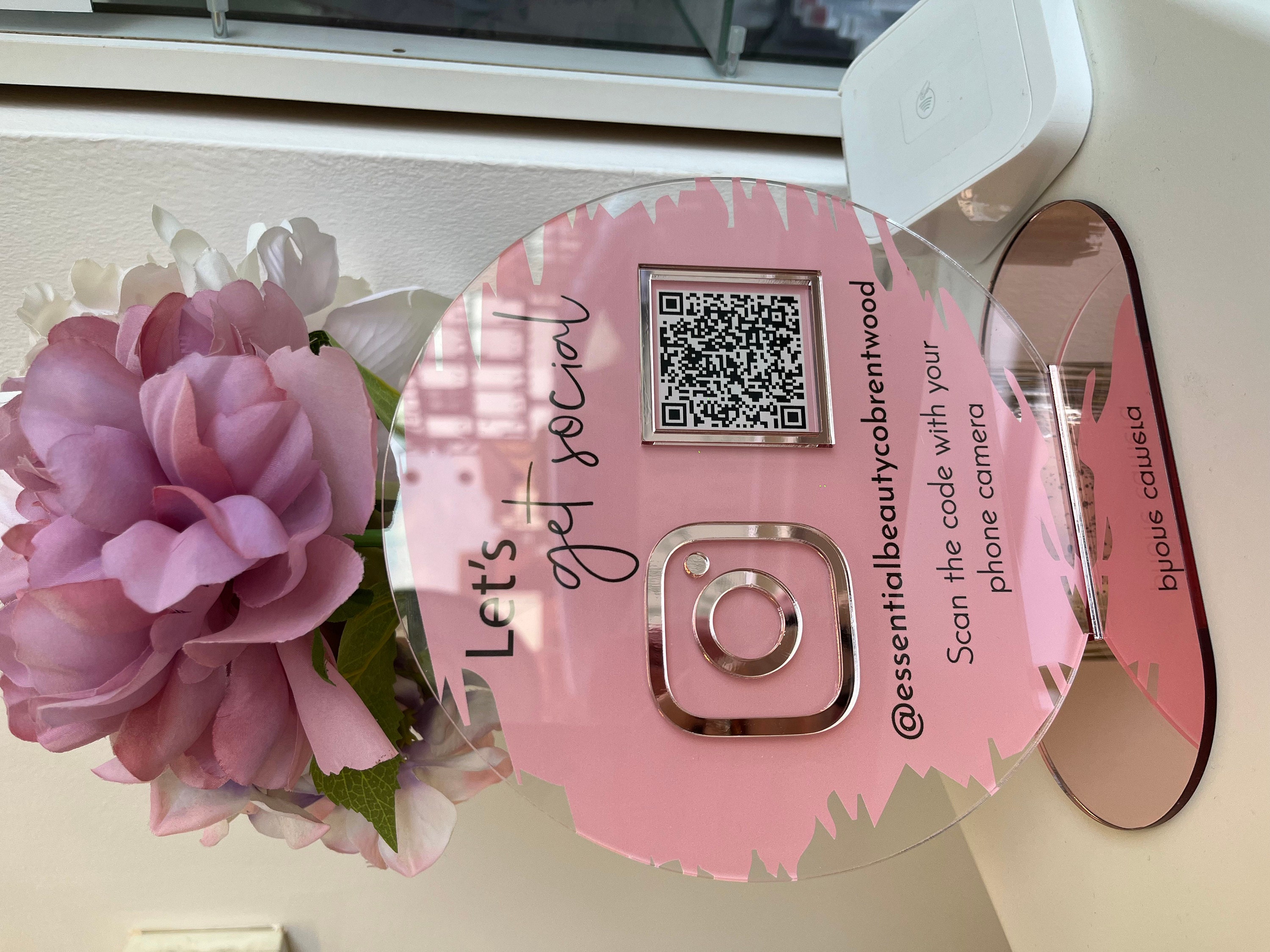 A beautiful social media advertiser to place on your reception desk or counter.