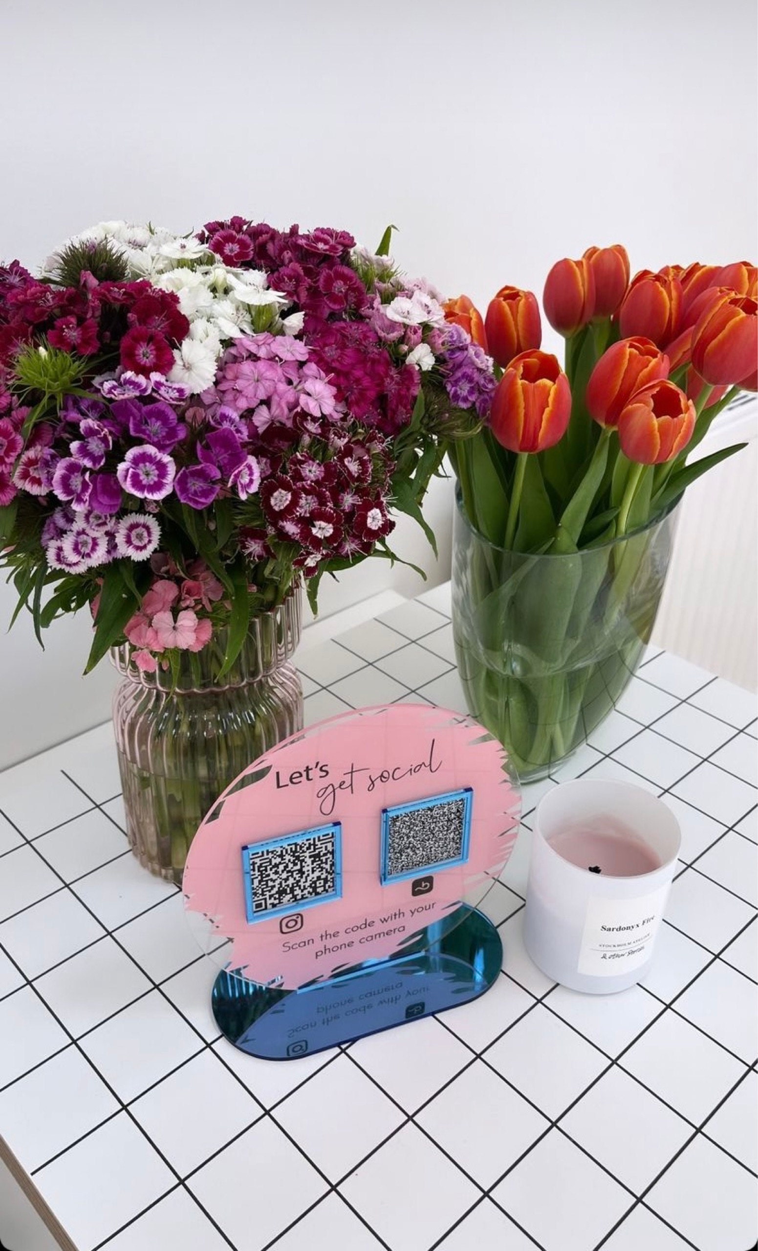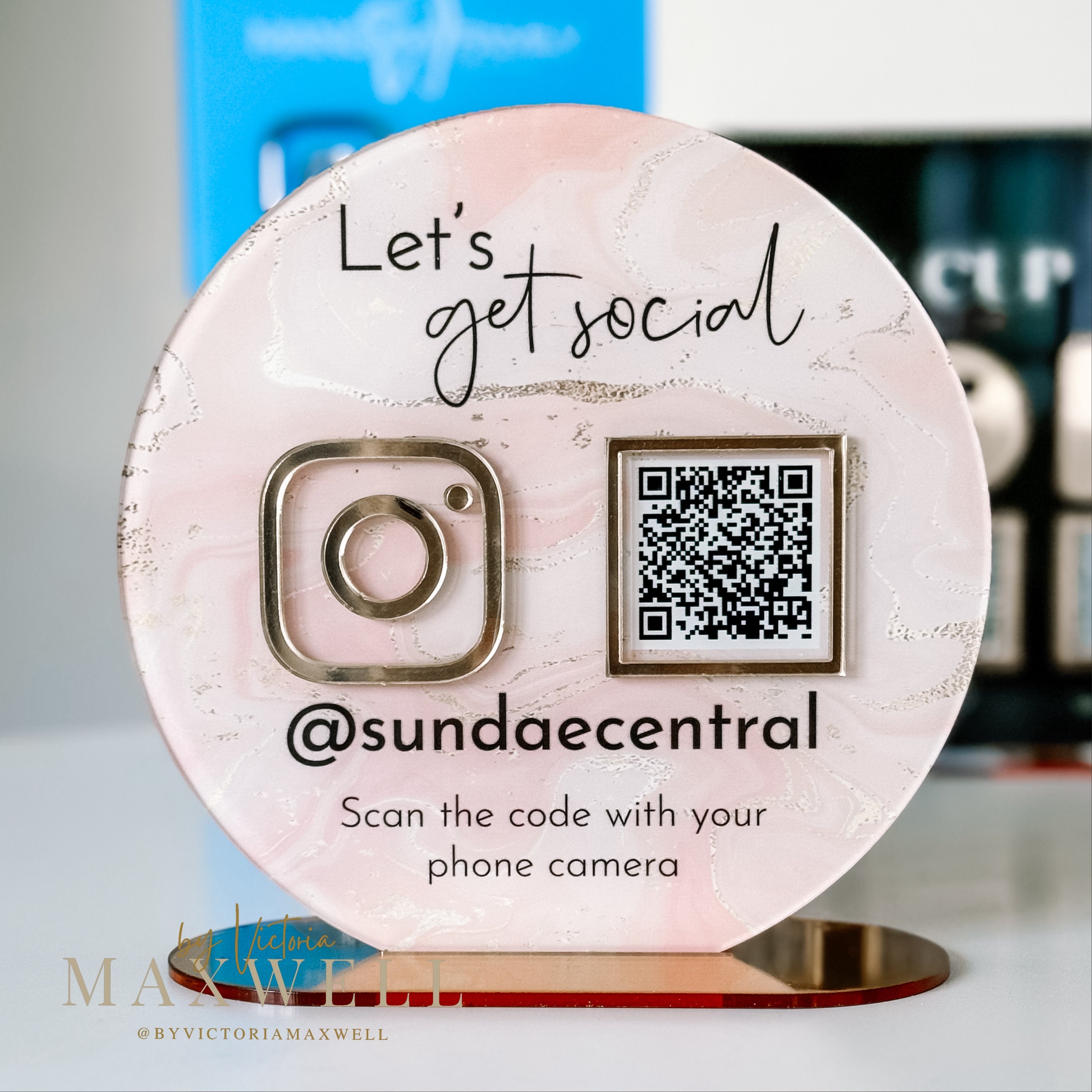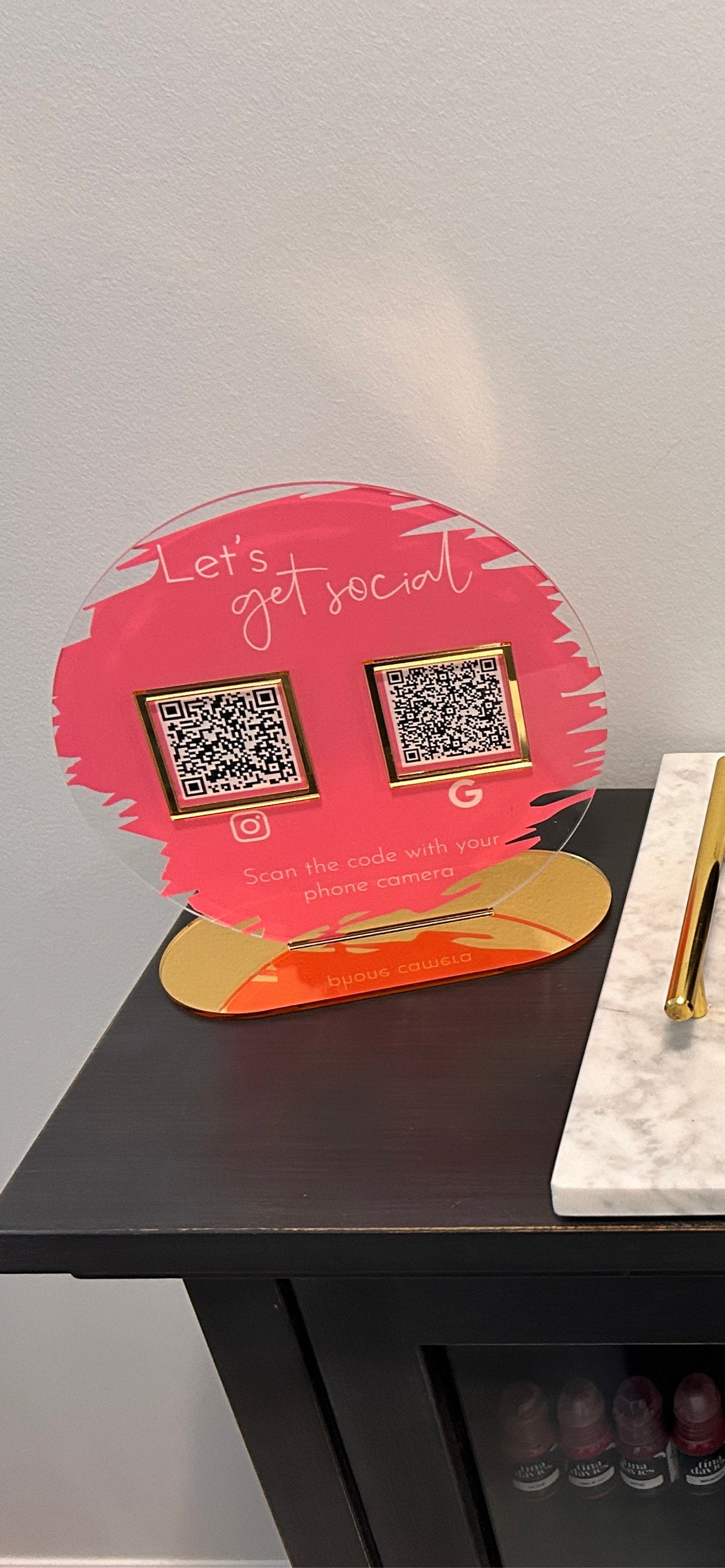 A beautiful social media advertiser to place on your reception desk or counter.