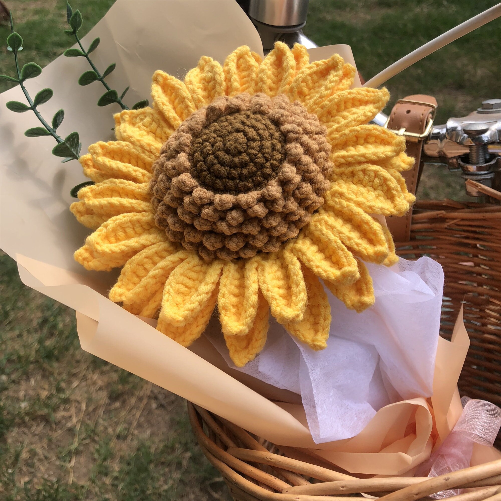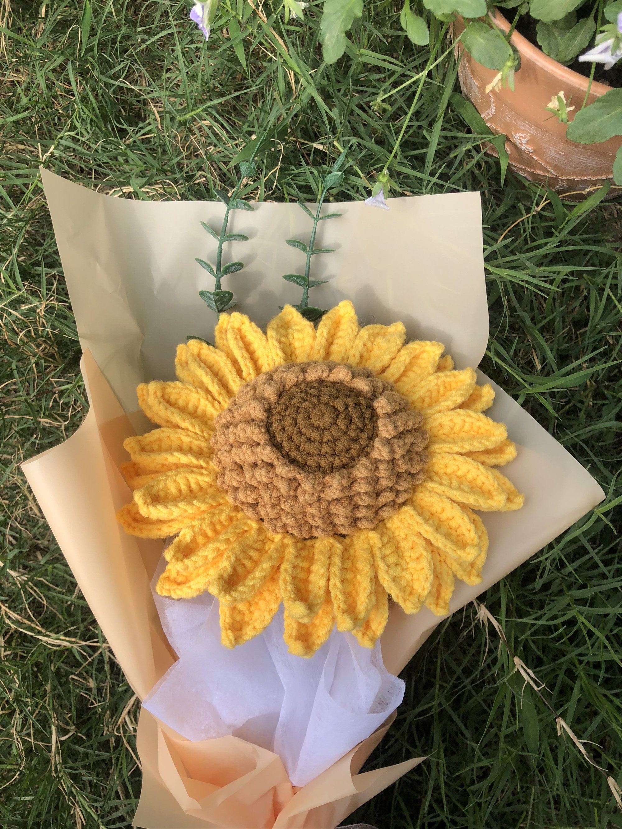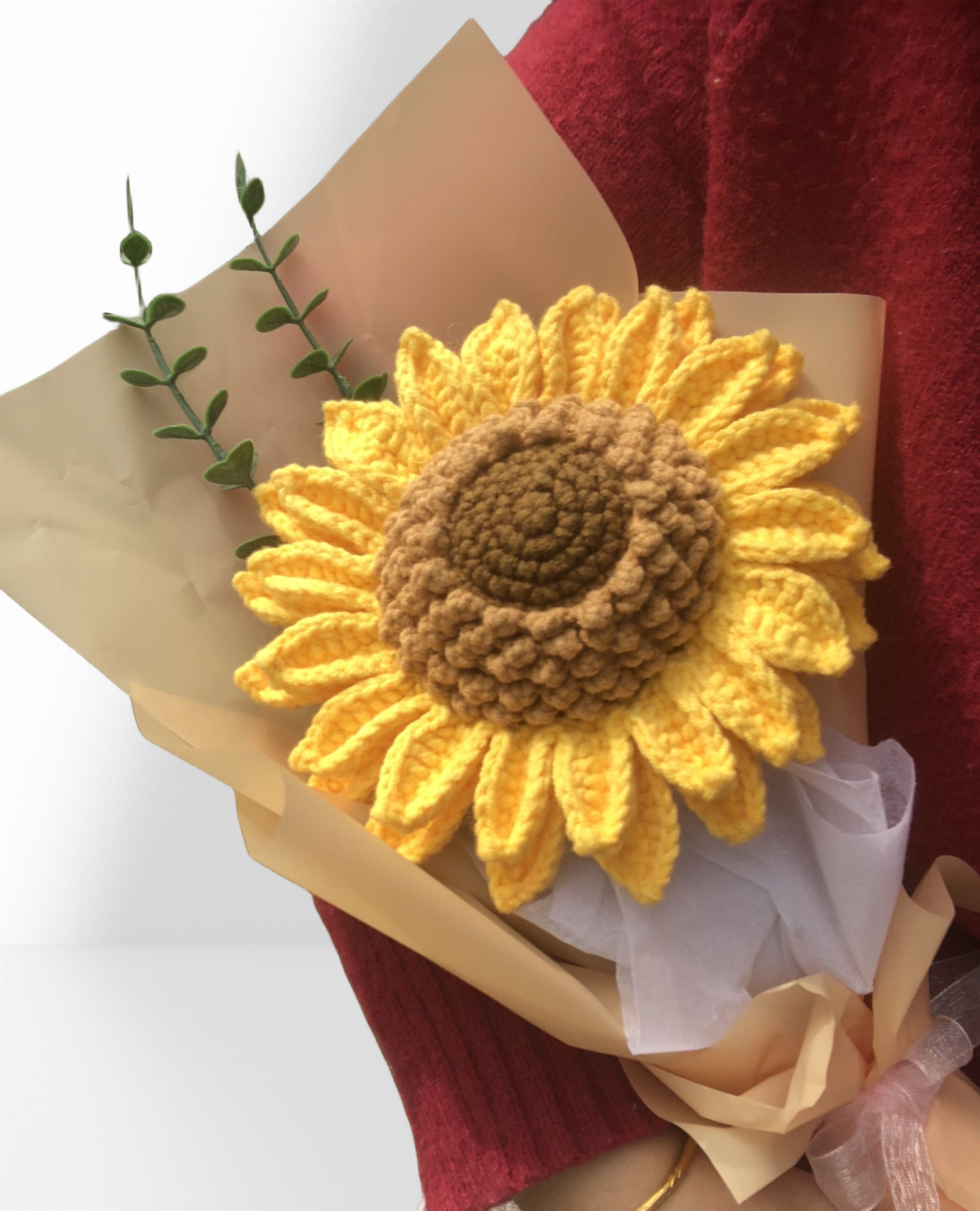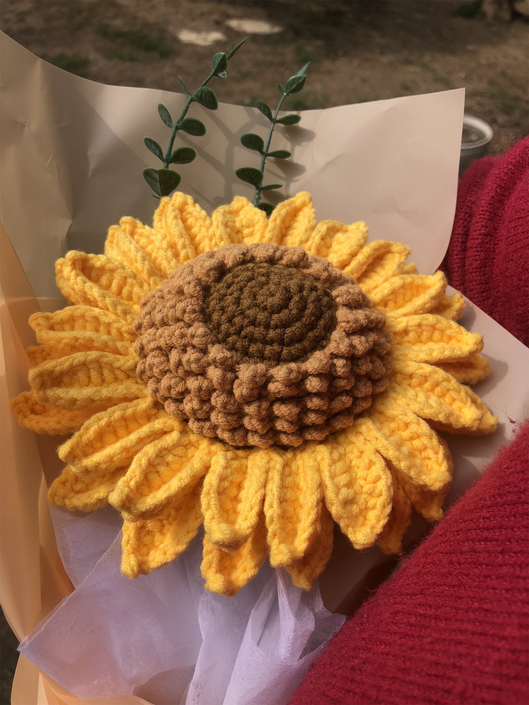 Eternal Sunshine: Unlike real flowers, this crocheted sunflower never withers, an everlasting symbol of love and passion.