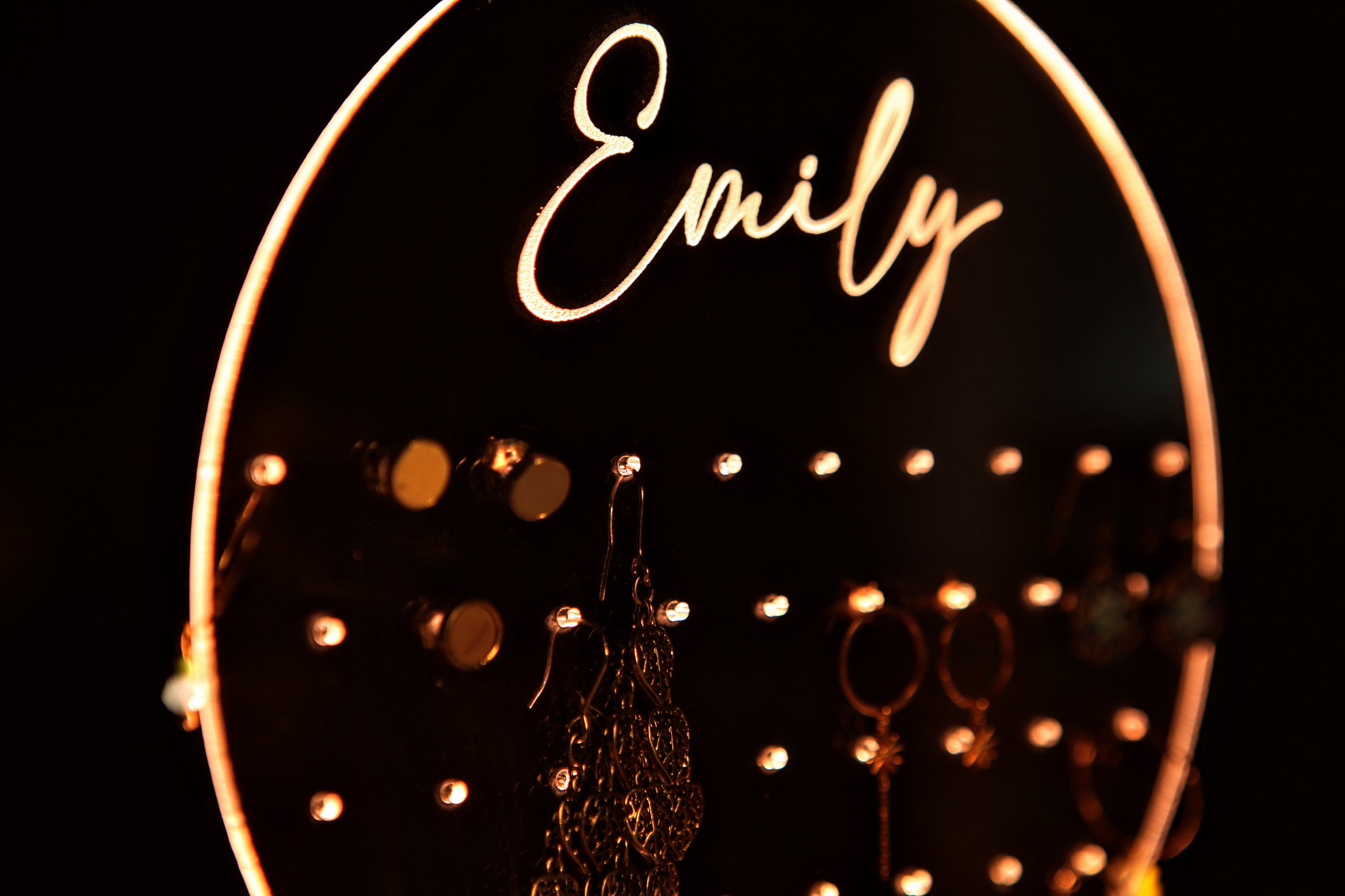 Our custom acrylic earring display is the best way to keep your jewelry organized in a very chic way!