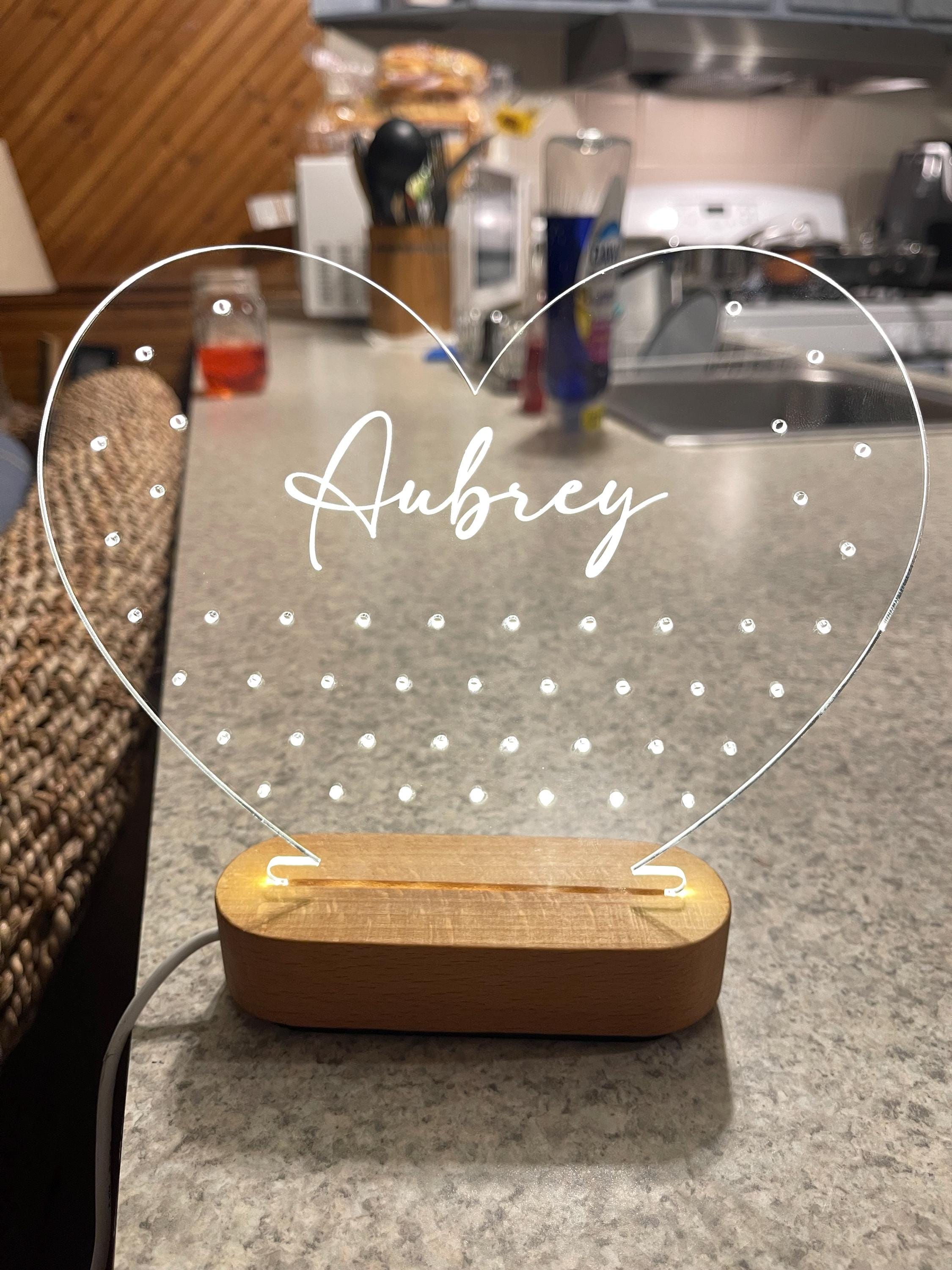 The night light is made with a very high quality base, such as real wood and premium acrylic.