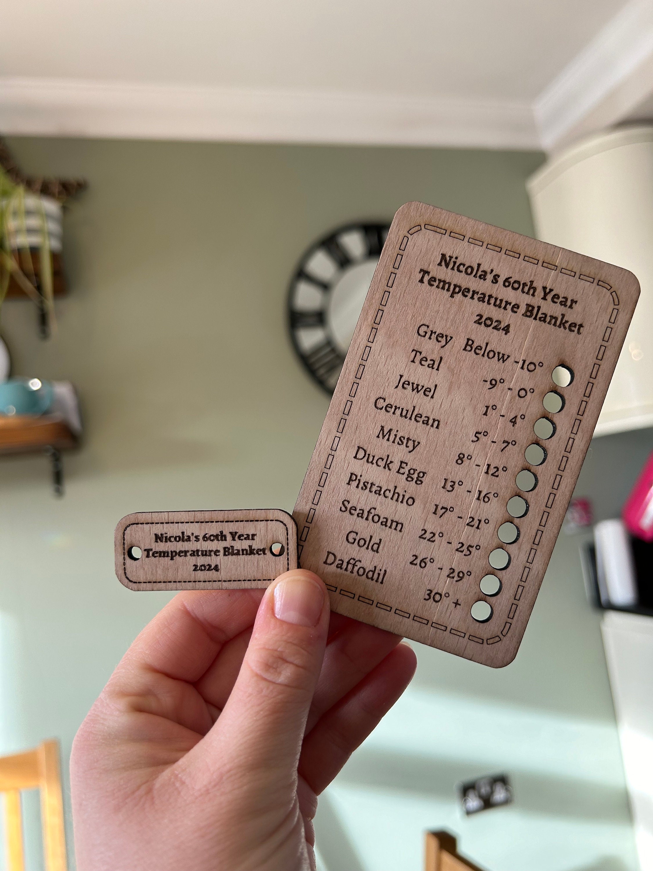 Choose the number of holes, then send in the title and label (and button text) you want for personalisation, either as a message or personalisation.