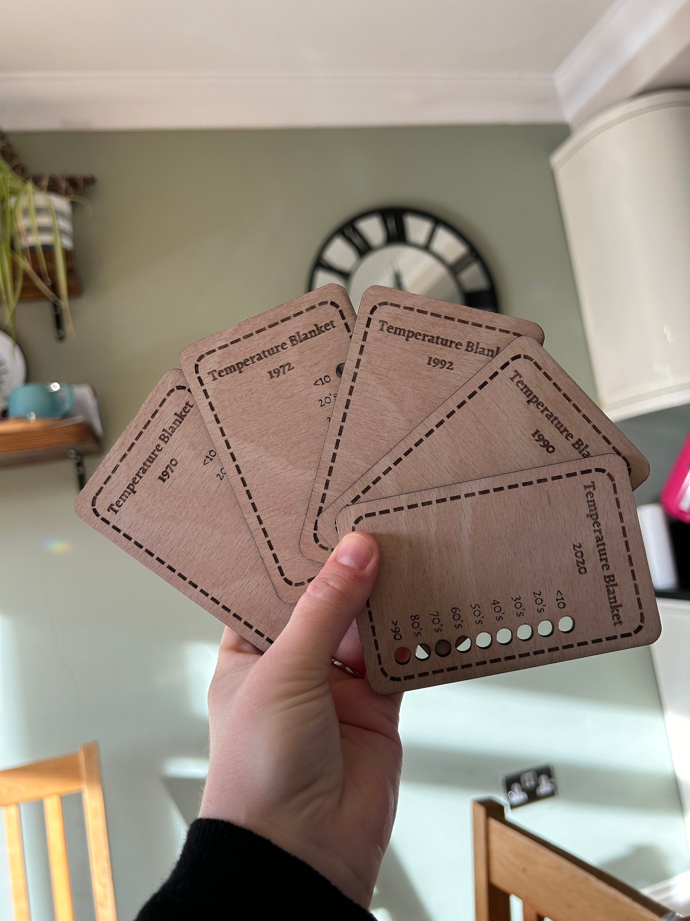 We laser cut these from 3.6mm birch plywood; no splinters and no damage to your yarn. Sometimes the colour of the wood may vary slightly from the picture.
