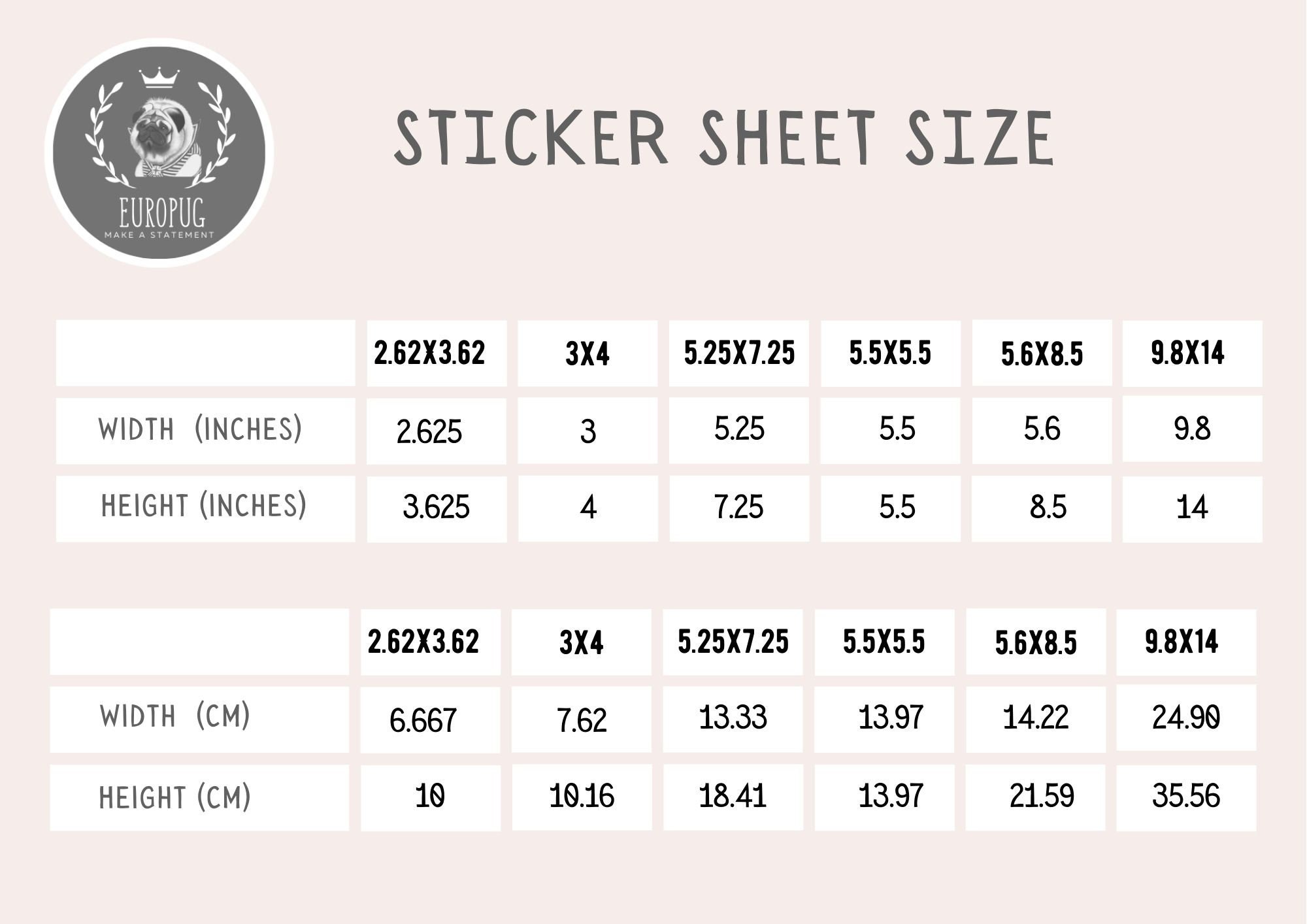 All dimensions (width x height) are the dimensions of the sticker, not the sticker itself.