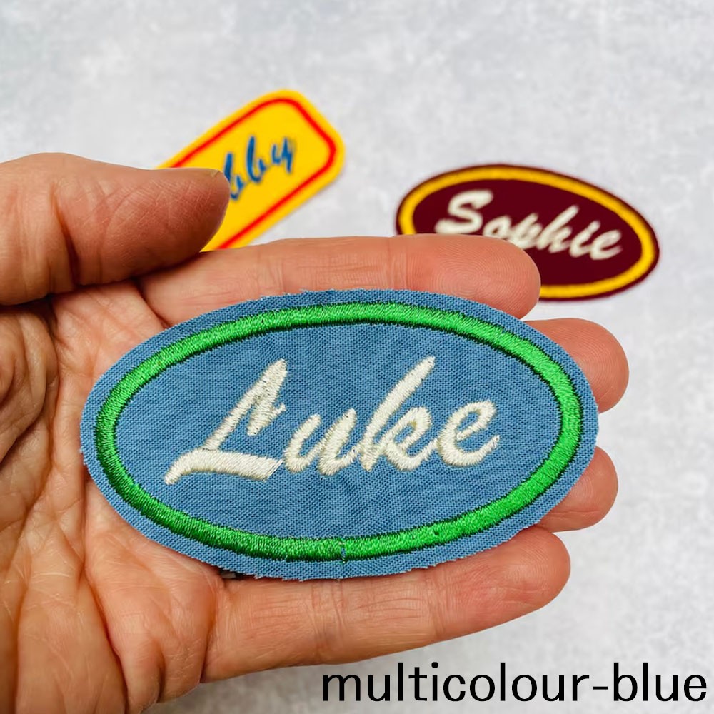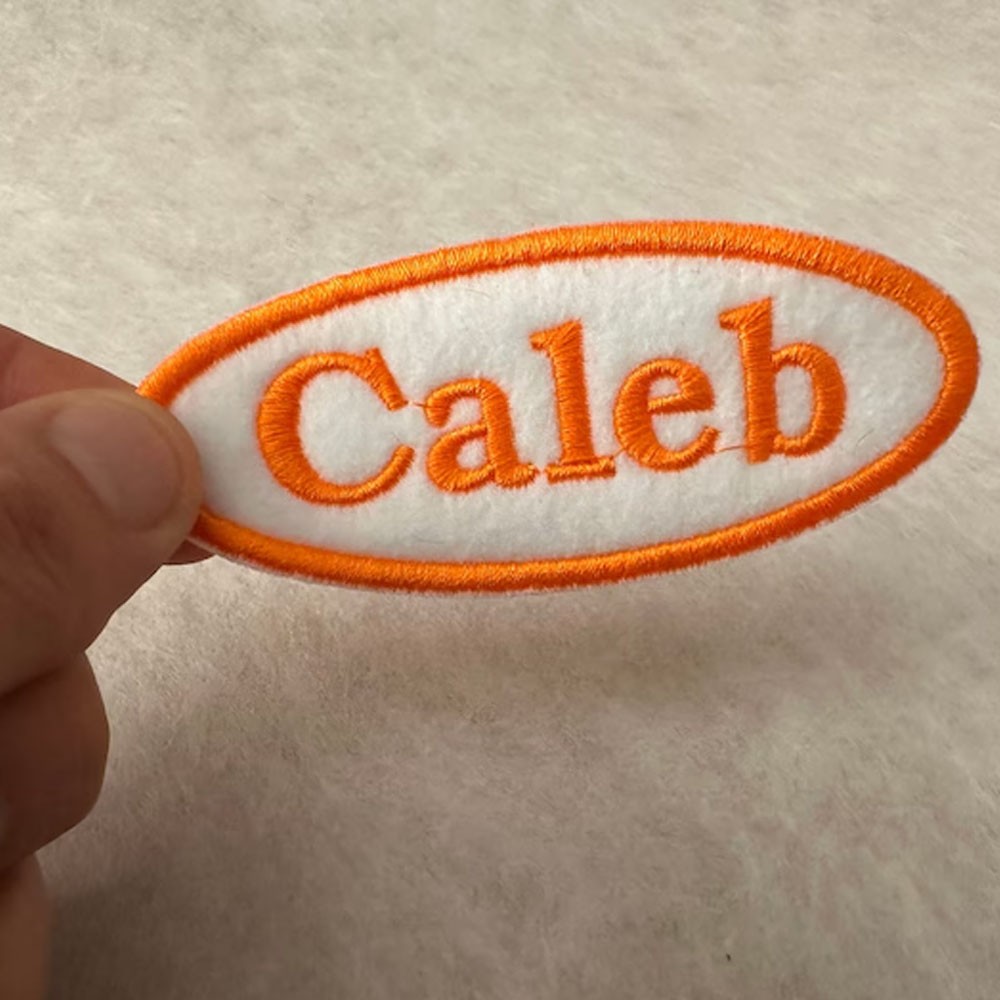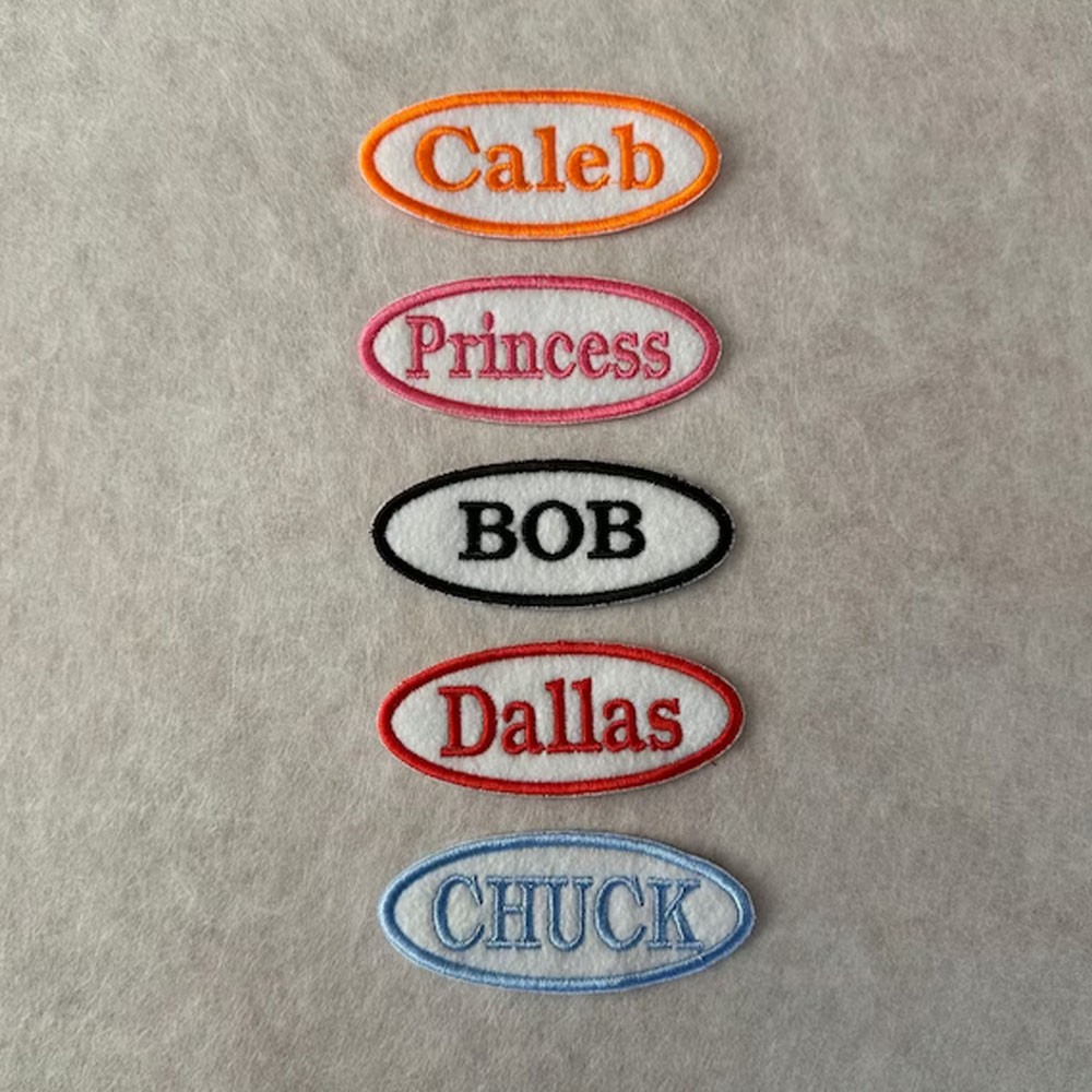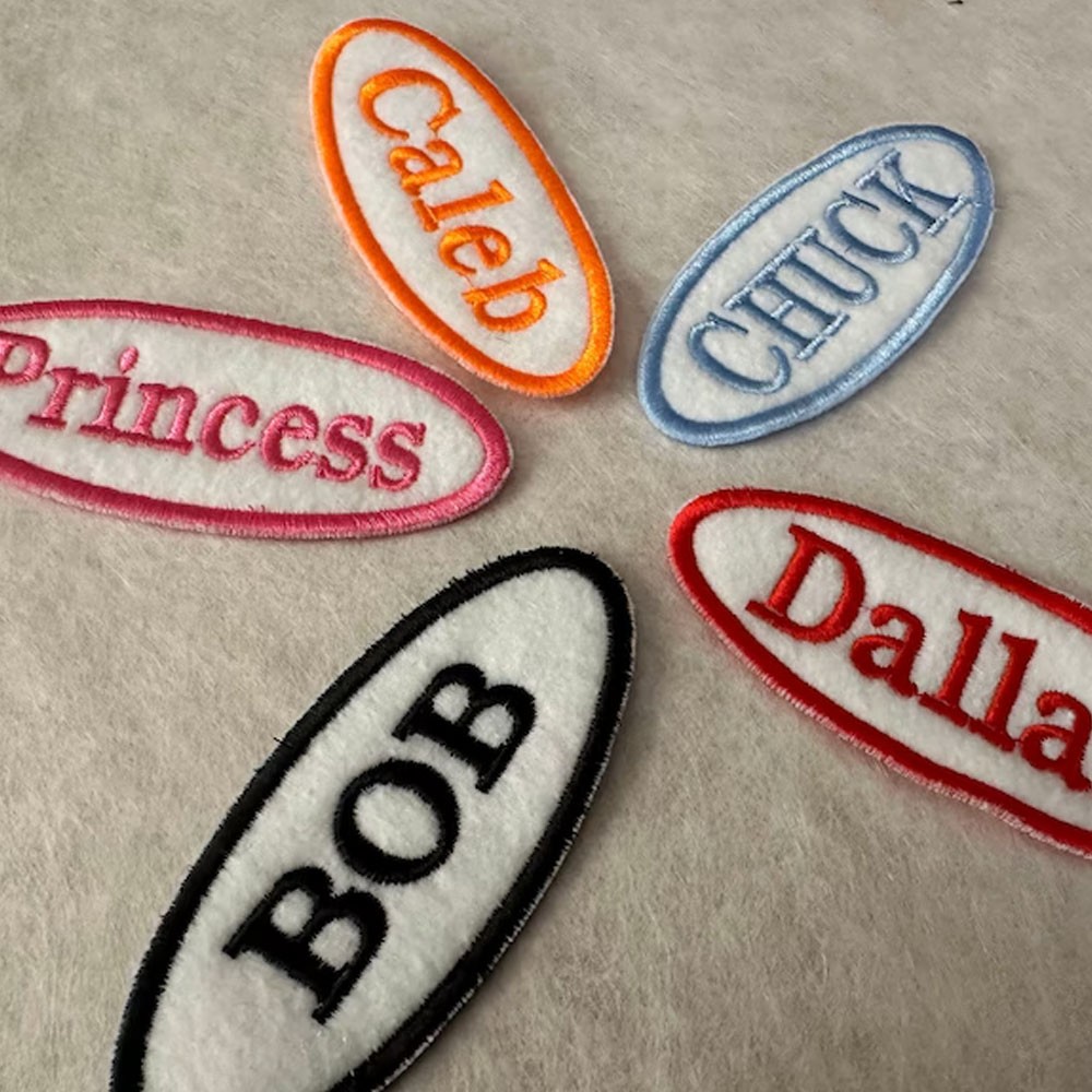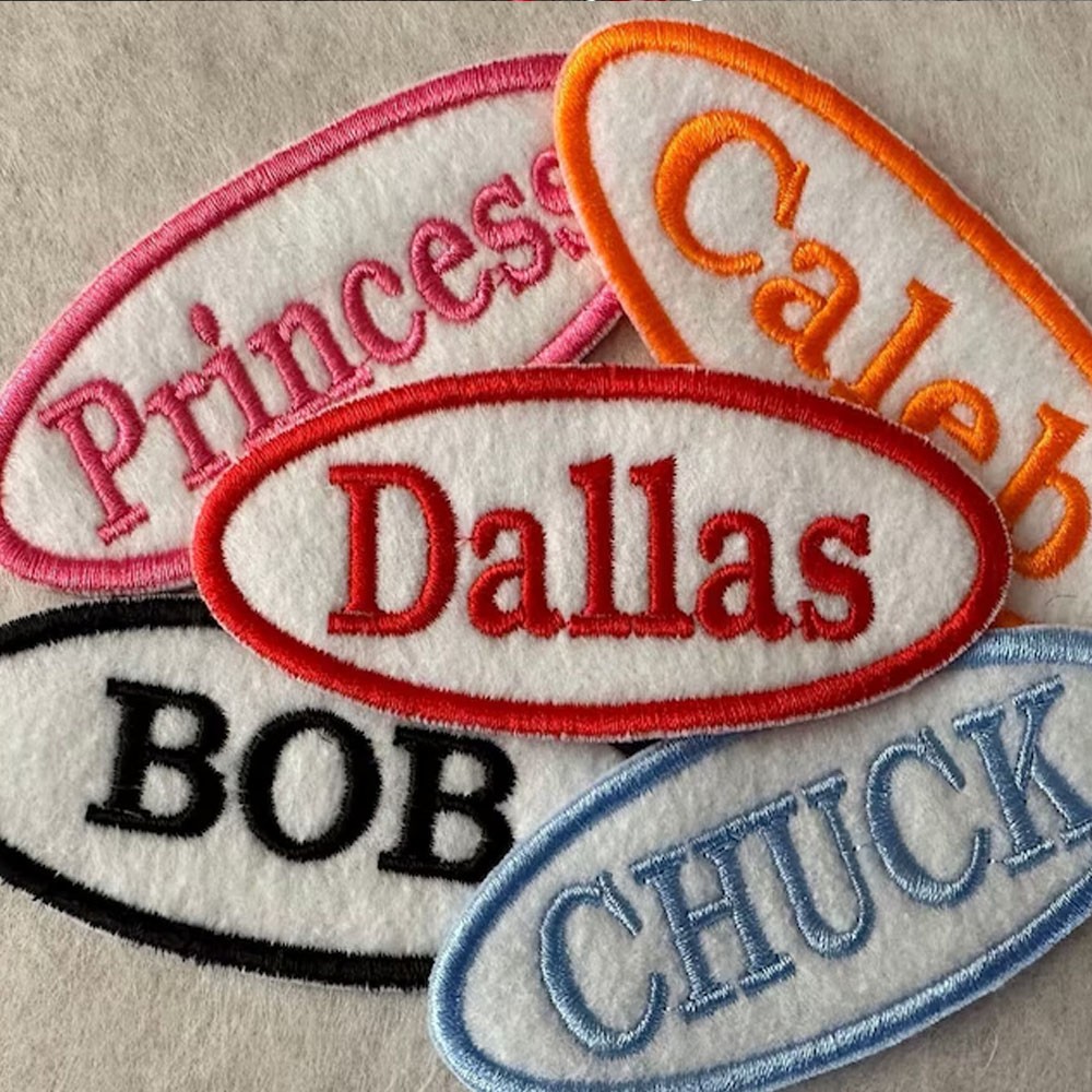 Custom Embroidered Name Patch - This personalized name patch allows you to have a name or initials beautifully embroidered, making it a unique accessory for jackets, bags, or uniforms. The custom design adds a personal touch to any outfit or item.