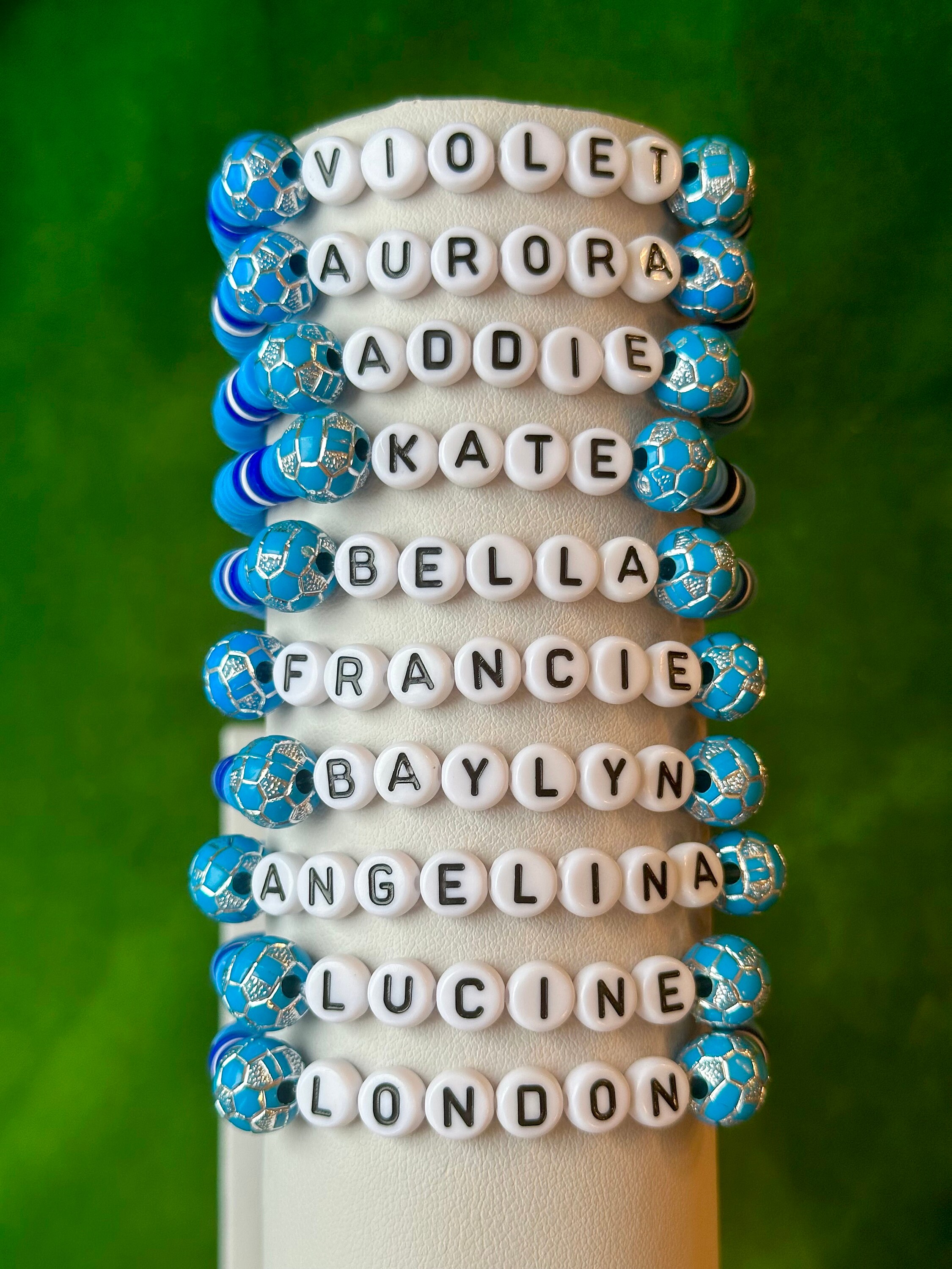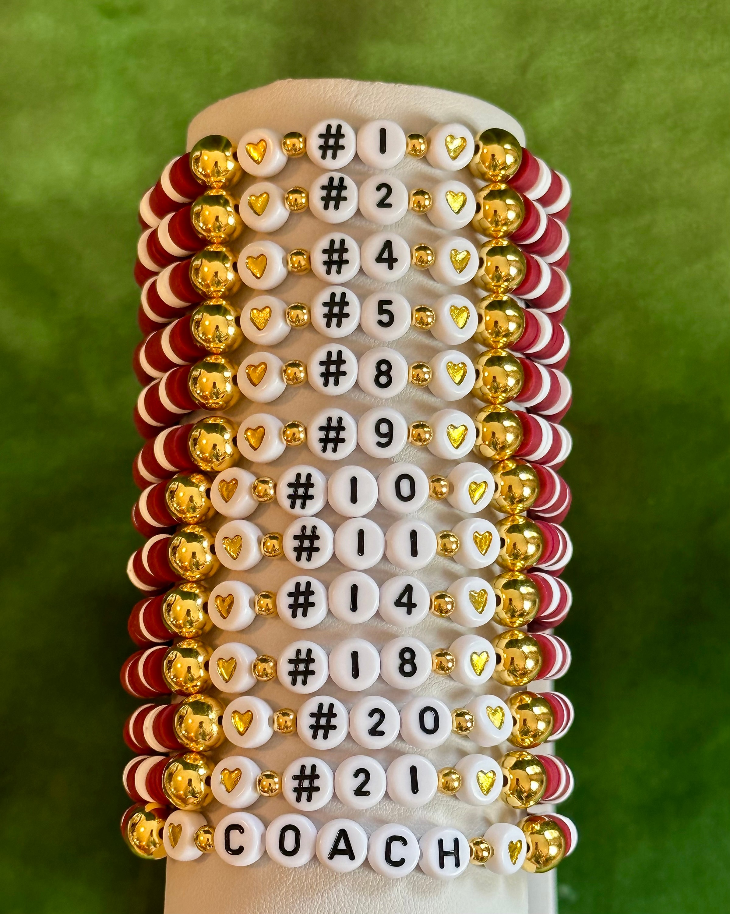 Show your team spirit with a unique bracelet for your sports team or team! Whether it's volleyball, soccer, or softball, our personalized beaded bracelets are the perfect player gift.