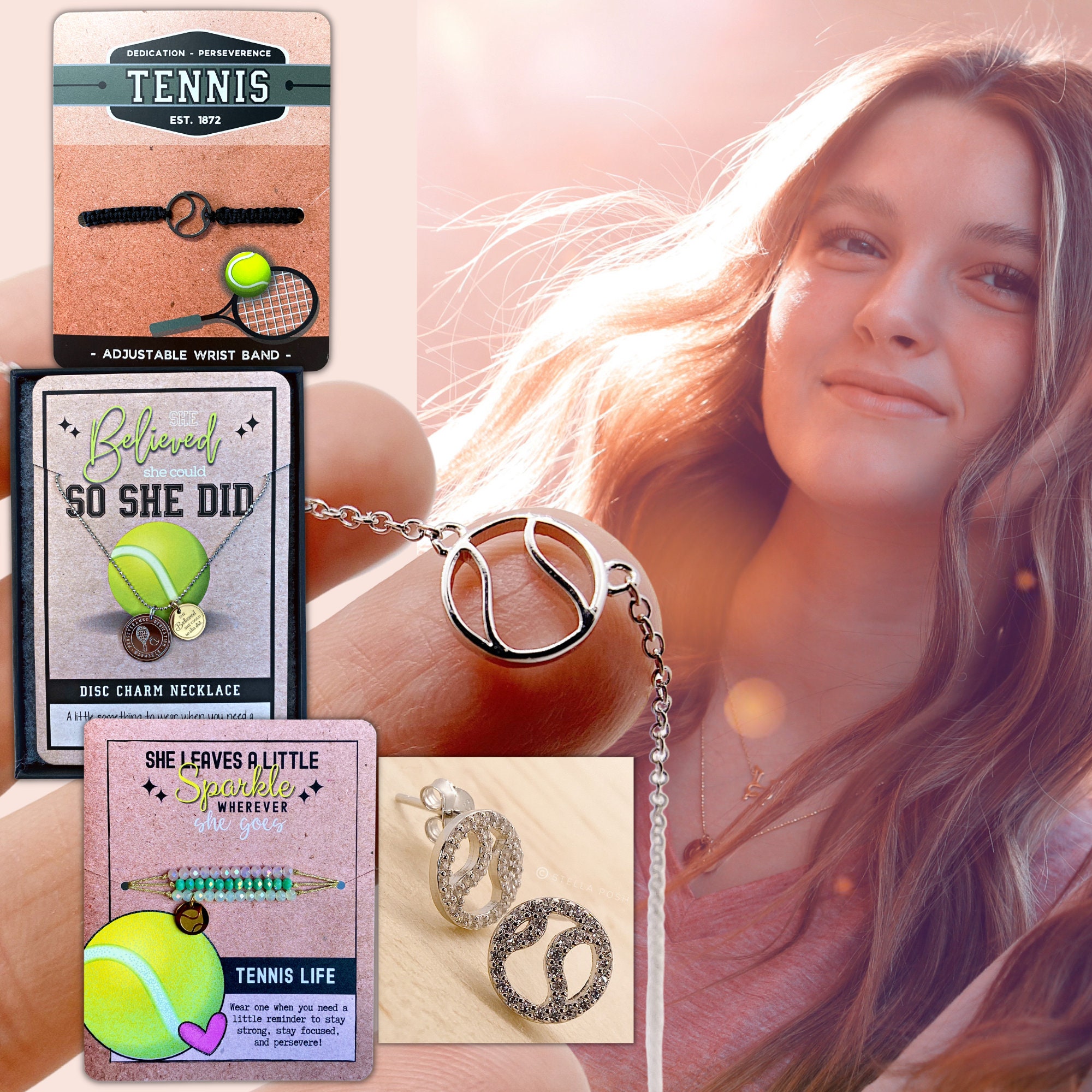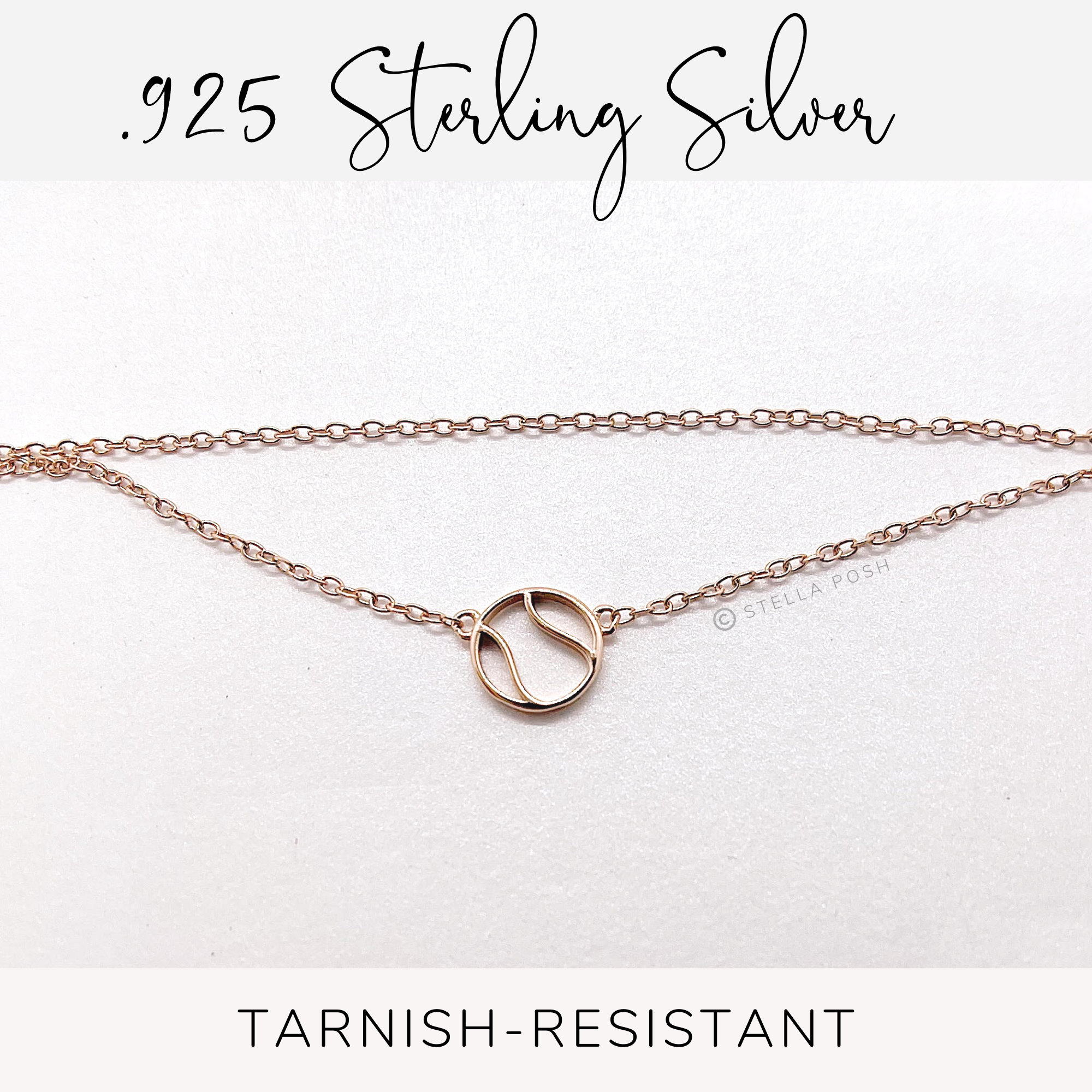 This dainty tennis ball necklace is the perfect gift for any tennis team, tennis coach, tennis mom, or tennis player! This tiny tennis ball pendant is delicate and simple, perfect for stacking or layering with other jewelry. Made from quality solid .925 Sterling Silver that is tarnish-resistant and suitable for sensitive skin. The chain is adjustable, so she'll find her perfect length. Gift packaging as shown is standard with all orders.