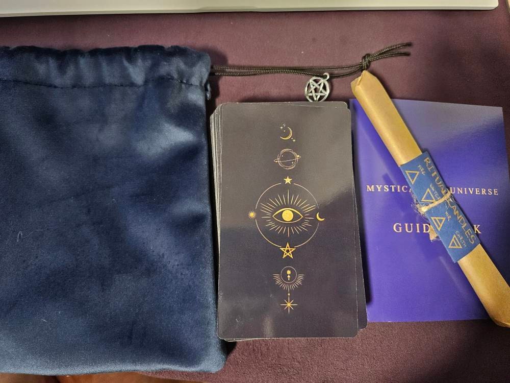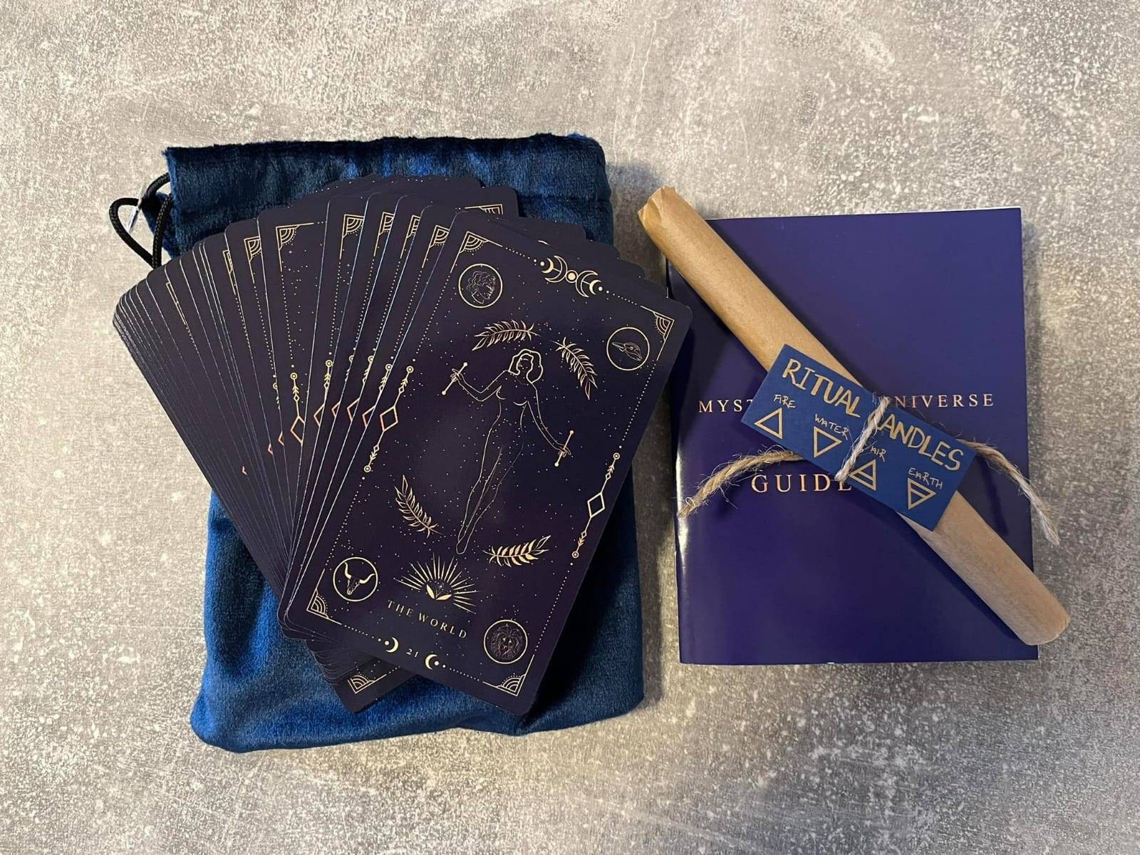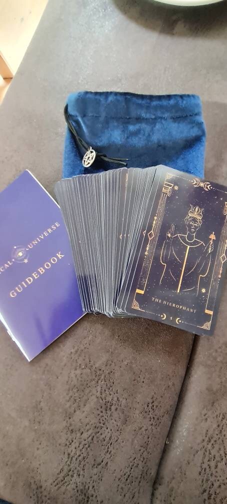Mystical Cosmic Tarot is the first deck we made. The design was inspired by the mysterious world connected to the universe. Our artists created it using our ideas and experience in the world of Tarot. This is how we see the mystical side of the universe. This deck opens up communication with your higher self and helps you connect with your cosmic spirit and energy.