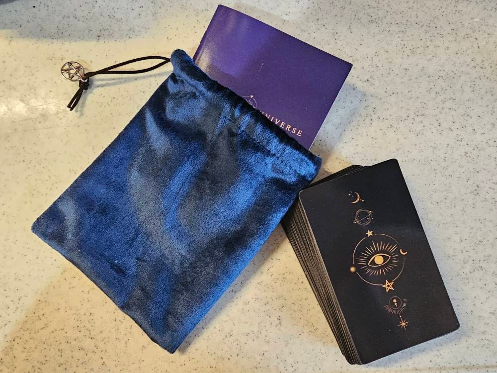 • Handmade blue velvet card bag with pentacles