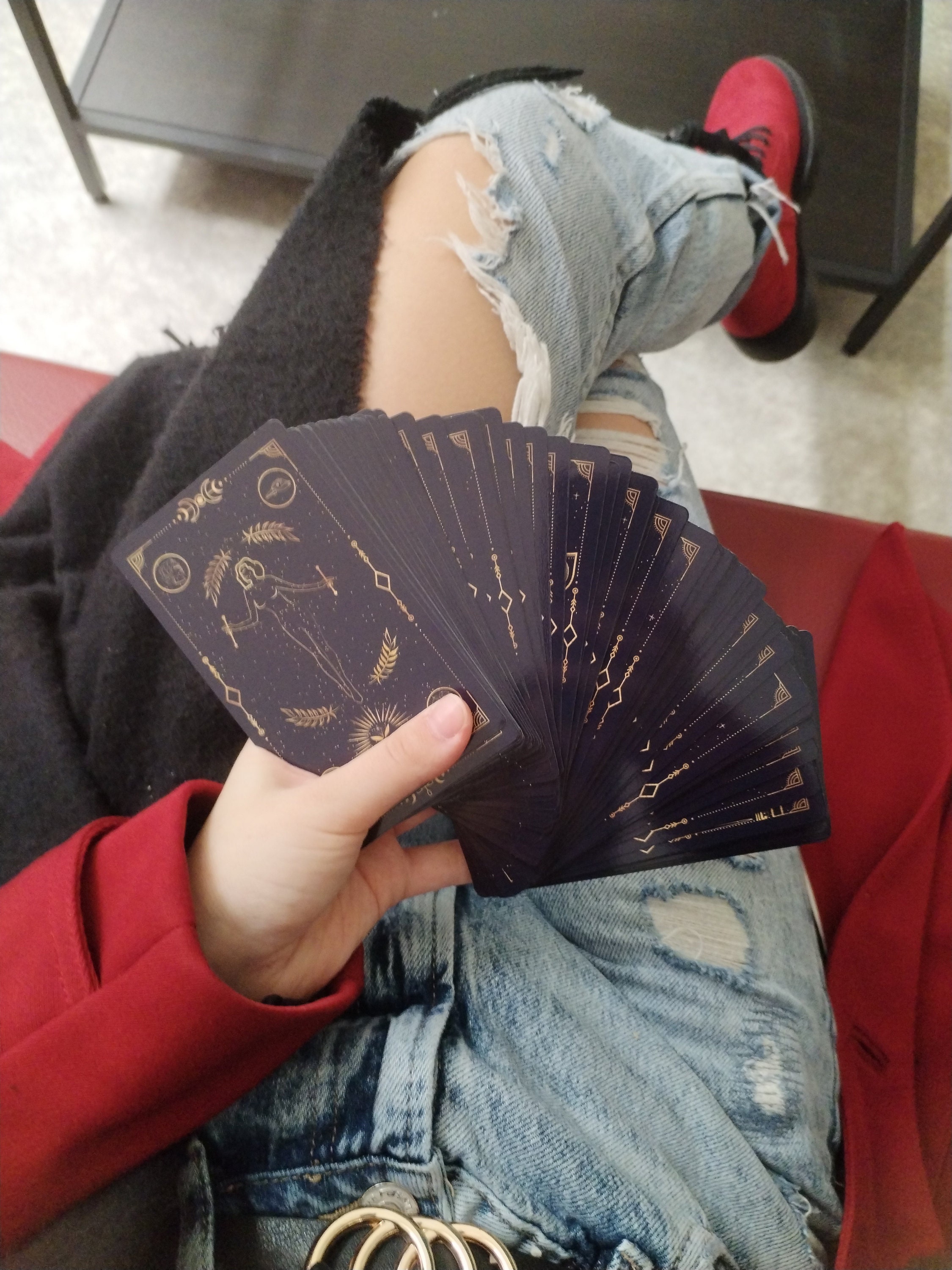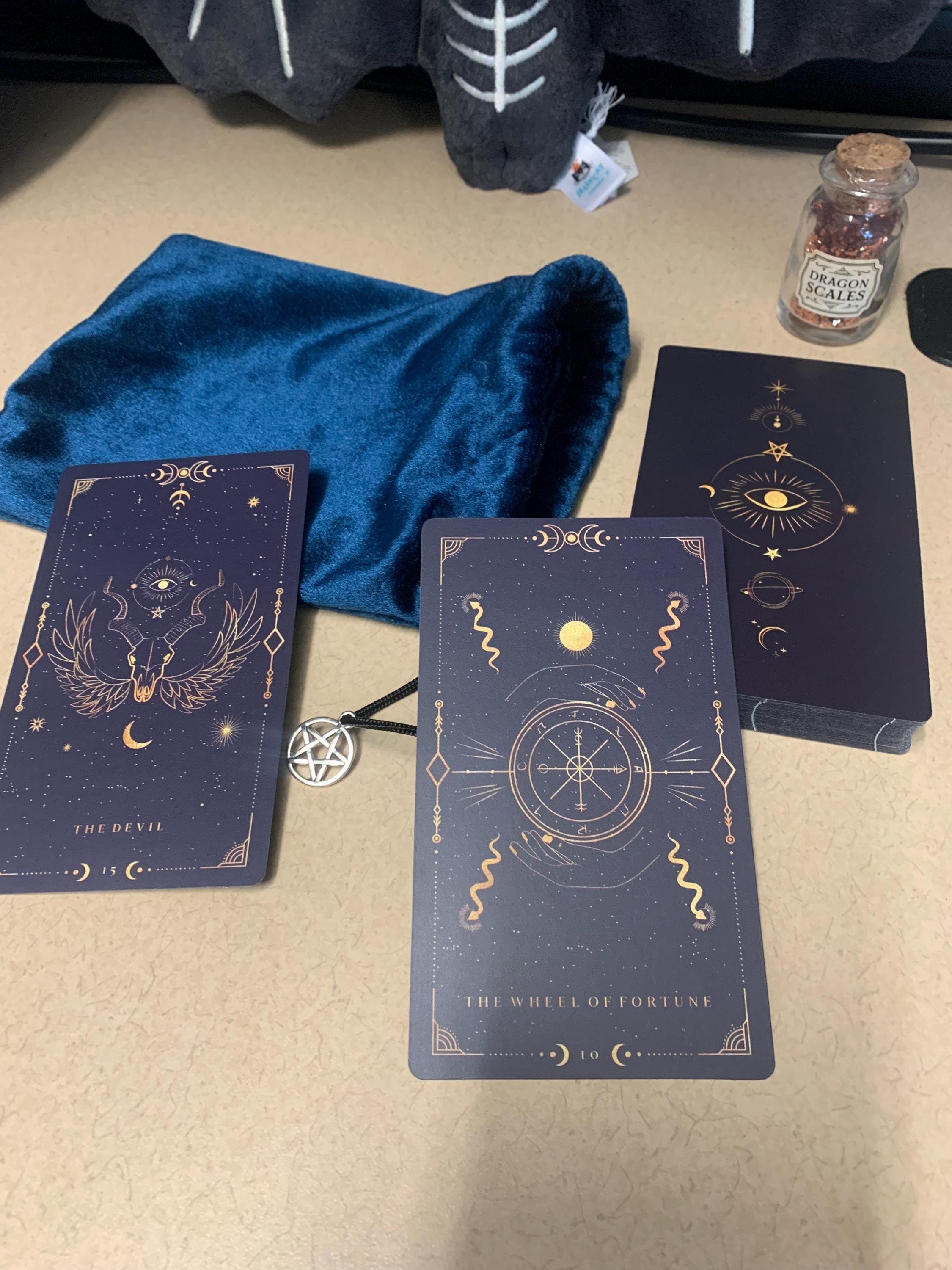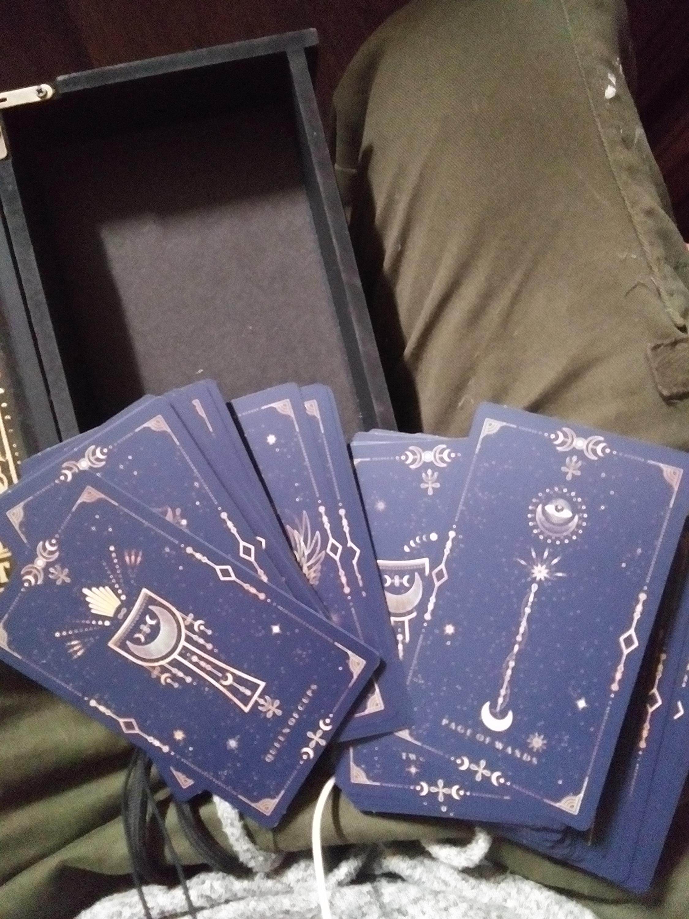 The gold details on the cards are intentionally made lighter than real gold because we believe that this tone makes the mysterious Tarot energy more powerful and protects you longer. Bright, contrasting tones are not recommended in the magical world.