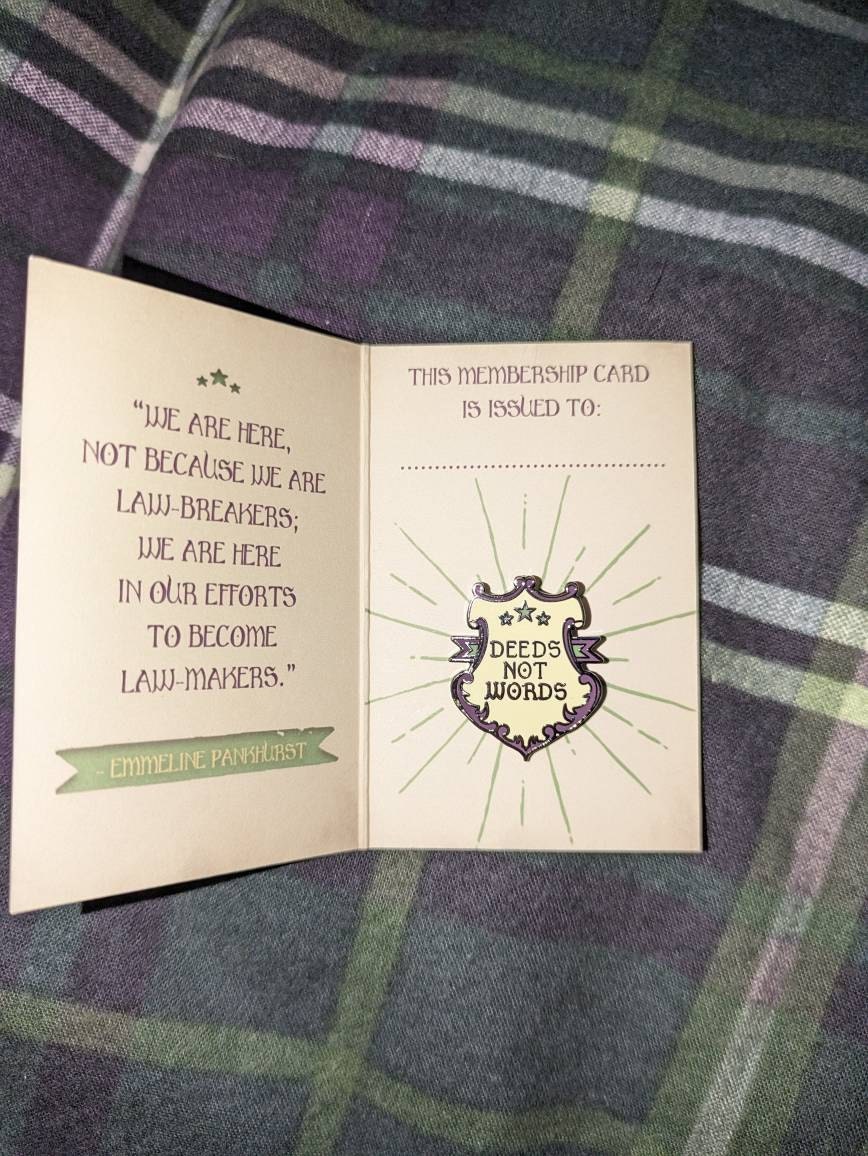 To make it extra special, each pin arrives on a 'Votes for Women' membership card – making it the perfect gift for any feminist. Or why not treat yourself?