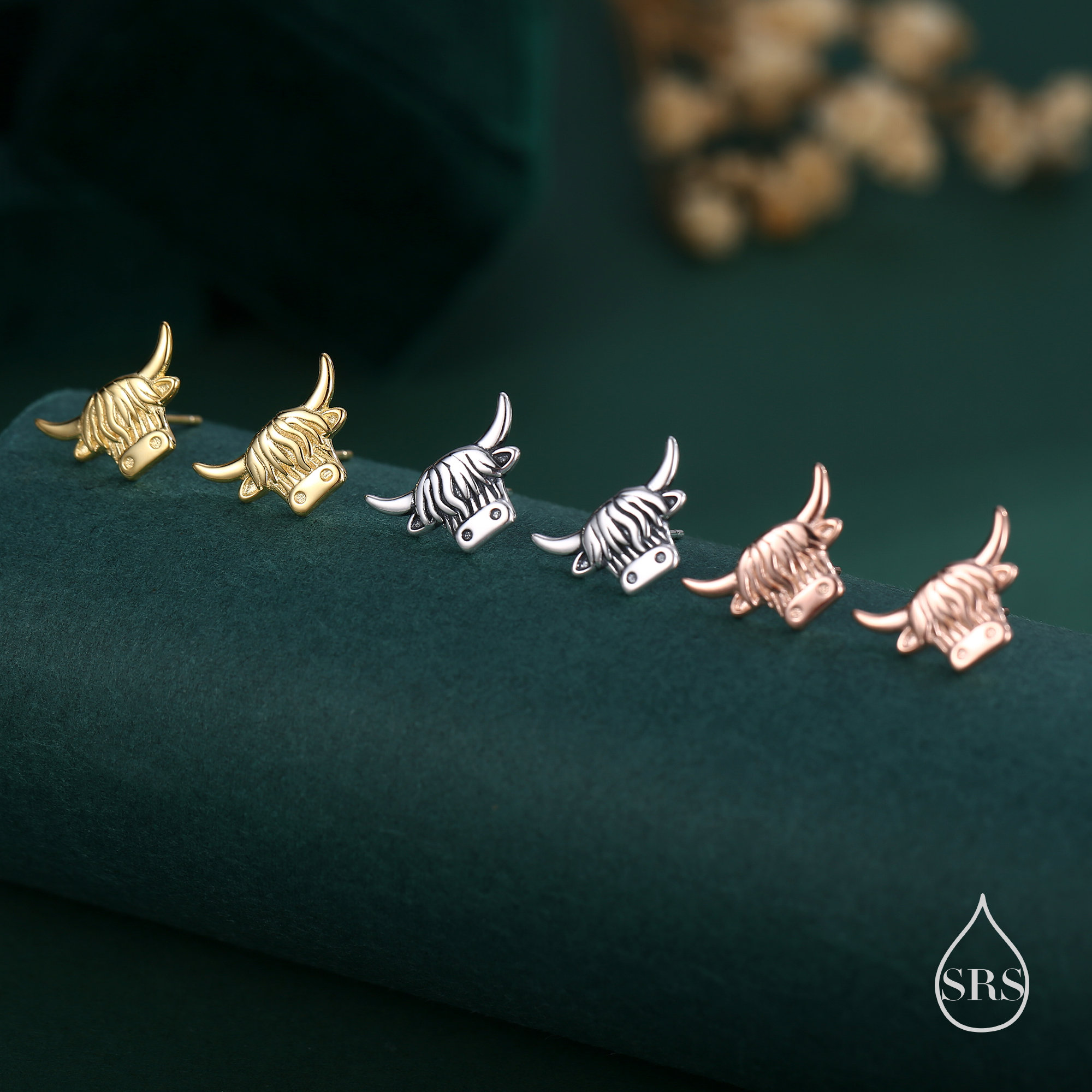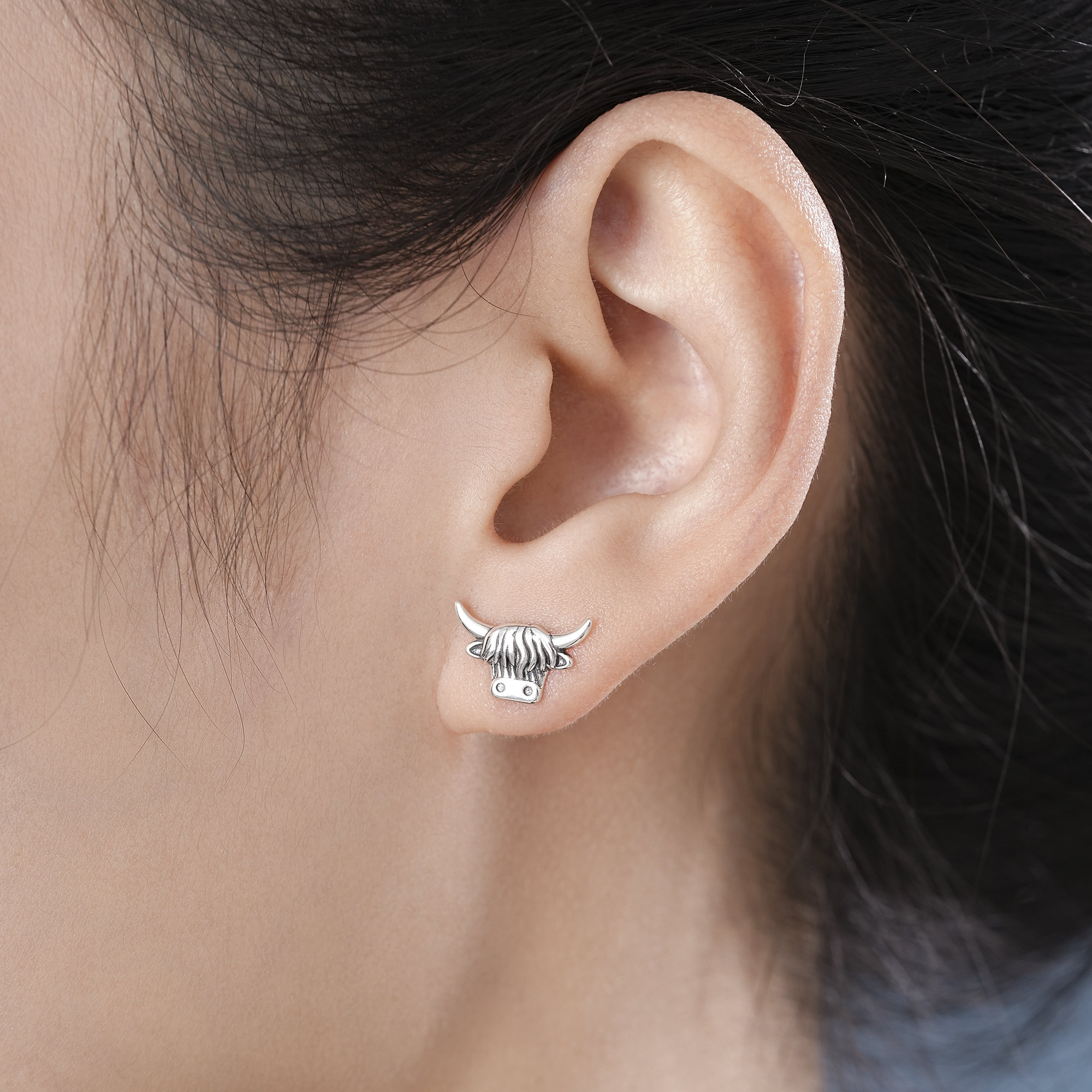 Fine Highland Bull Stud Earrings, Sterling Silver, Silver or Gold or Rose Gold, Cute Bull Earrings, Cow Earrings, Scottish Design