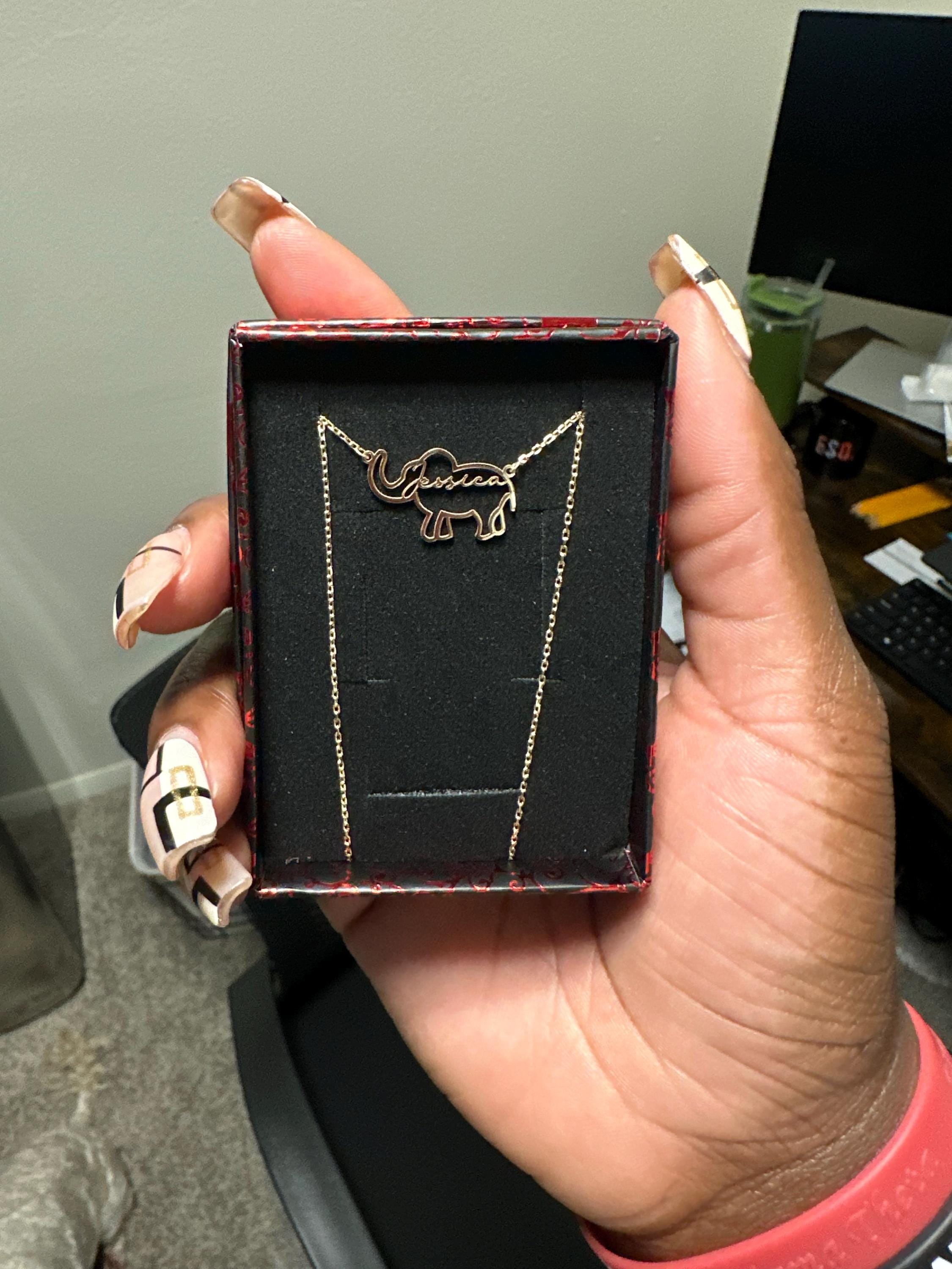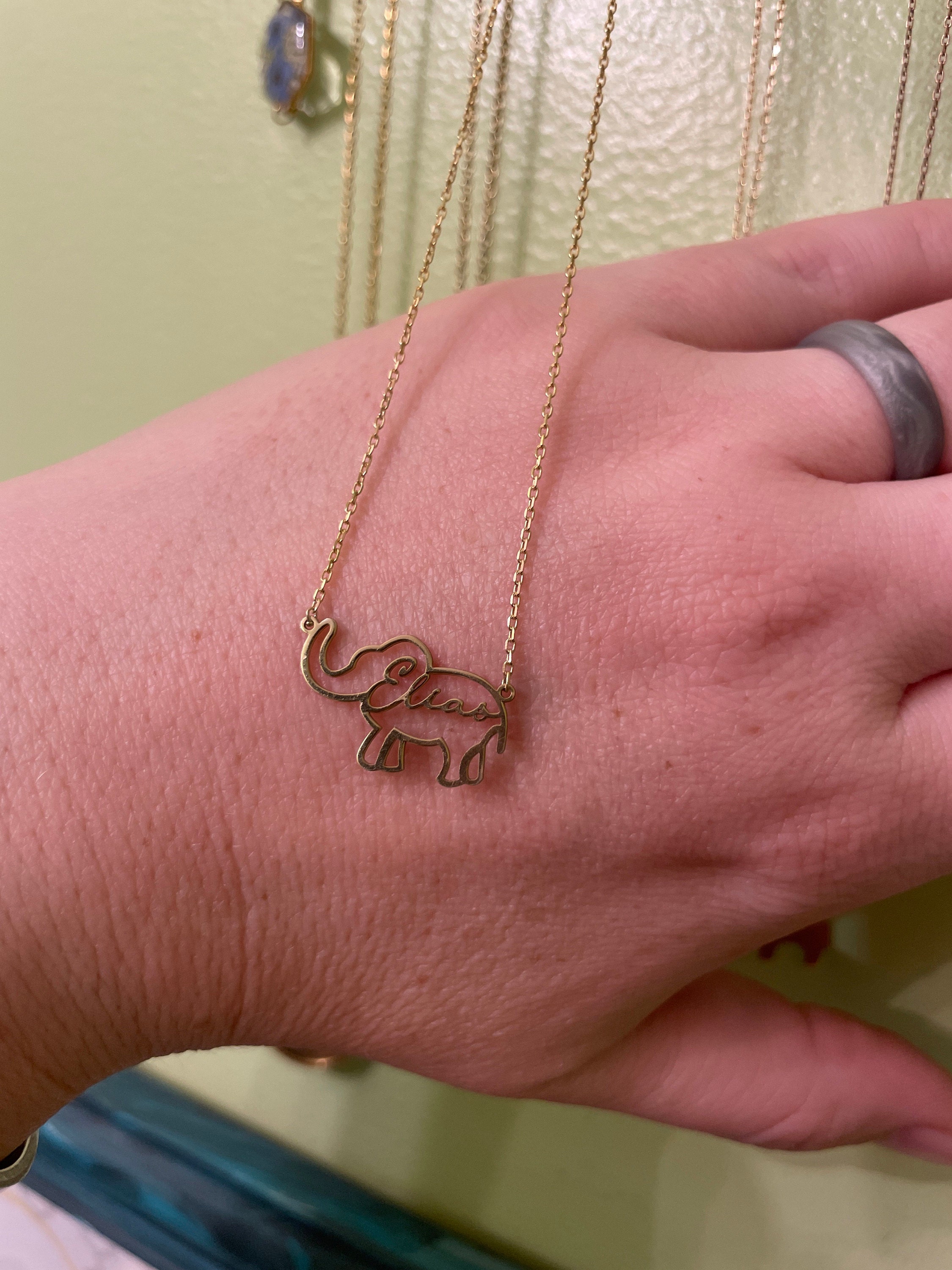 Wear your identity with grace and power. Our elephant name necklace combines personalized elegance with the enduring spirit of the elephant.