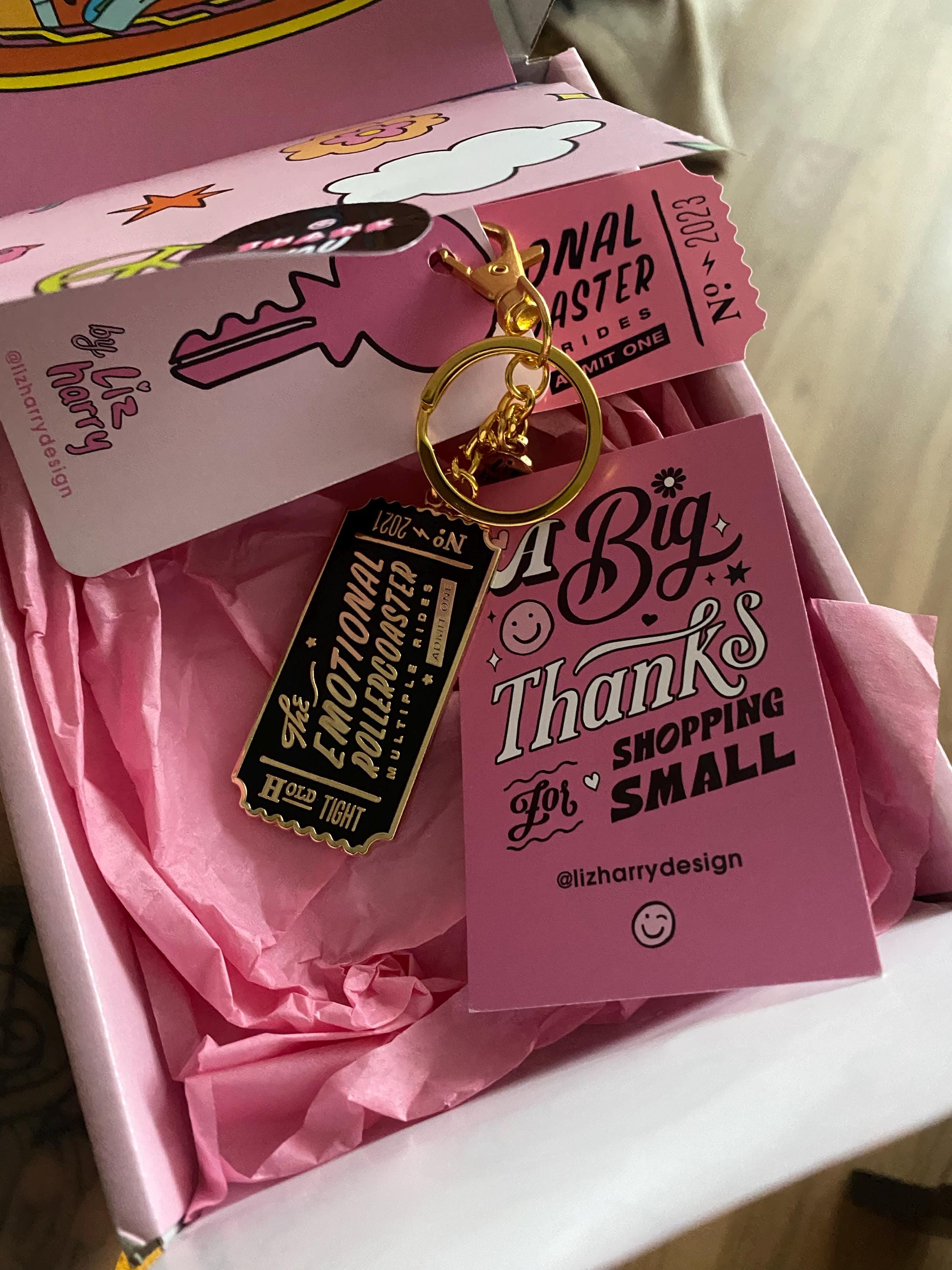 These 'Emotional Rollercoaster' keychains make wonderful little gifts, with phrases like 'Ride Many Times', 'Hold On' and 'Acknowledge Once' - a lighthearted take on the challenges we've all been through during Covid lockdown and quarantine.