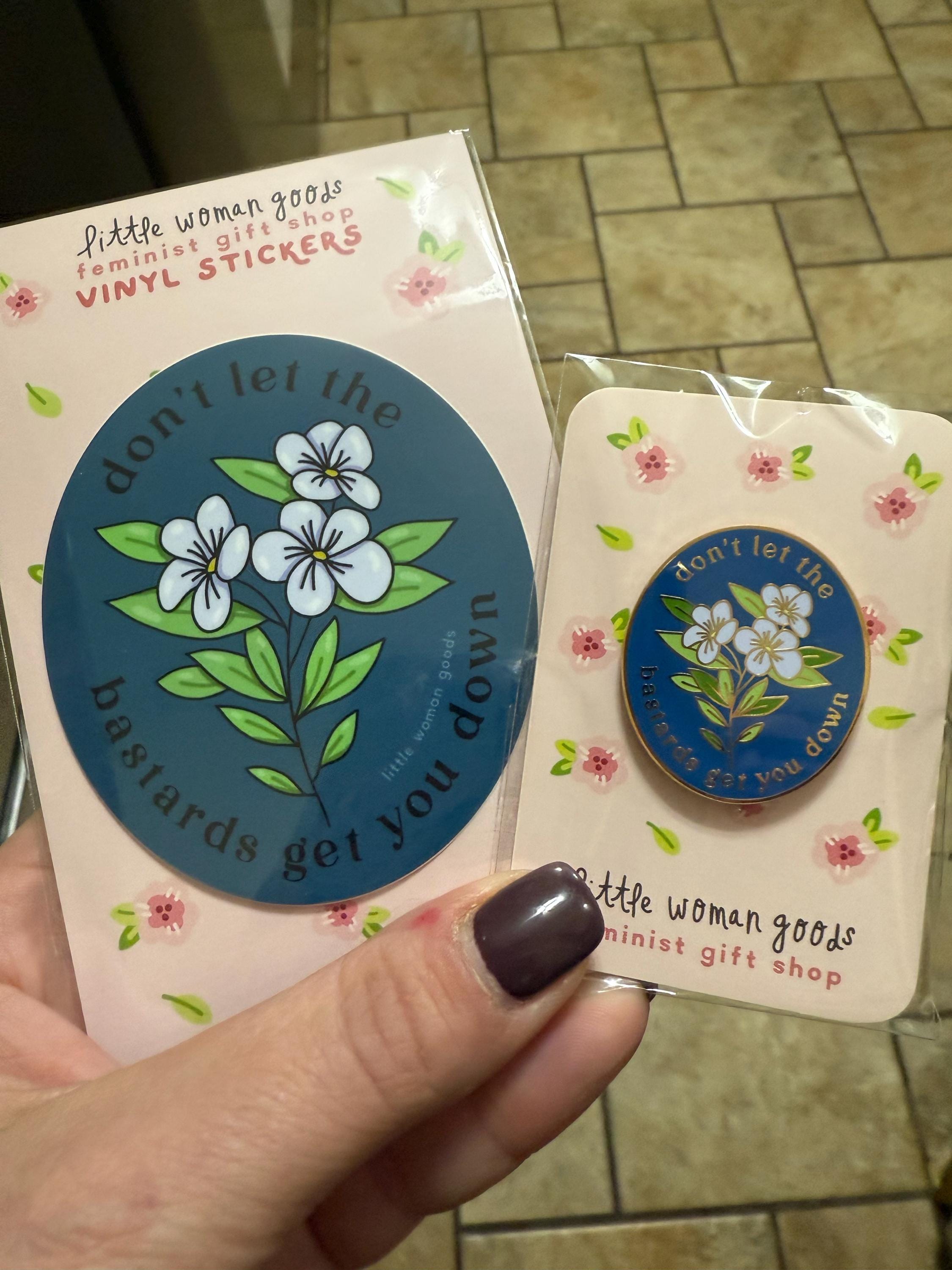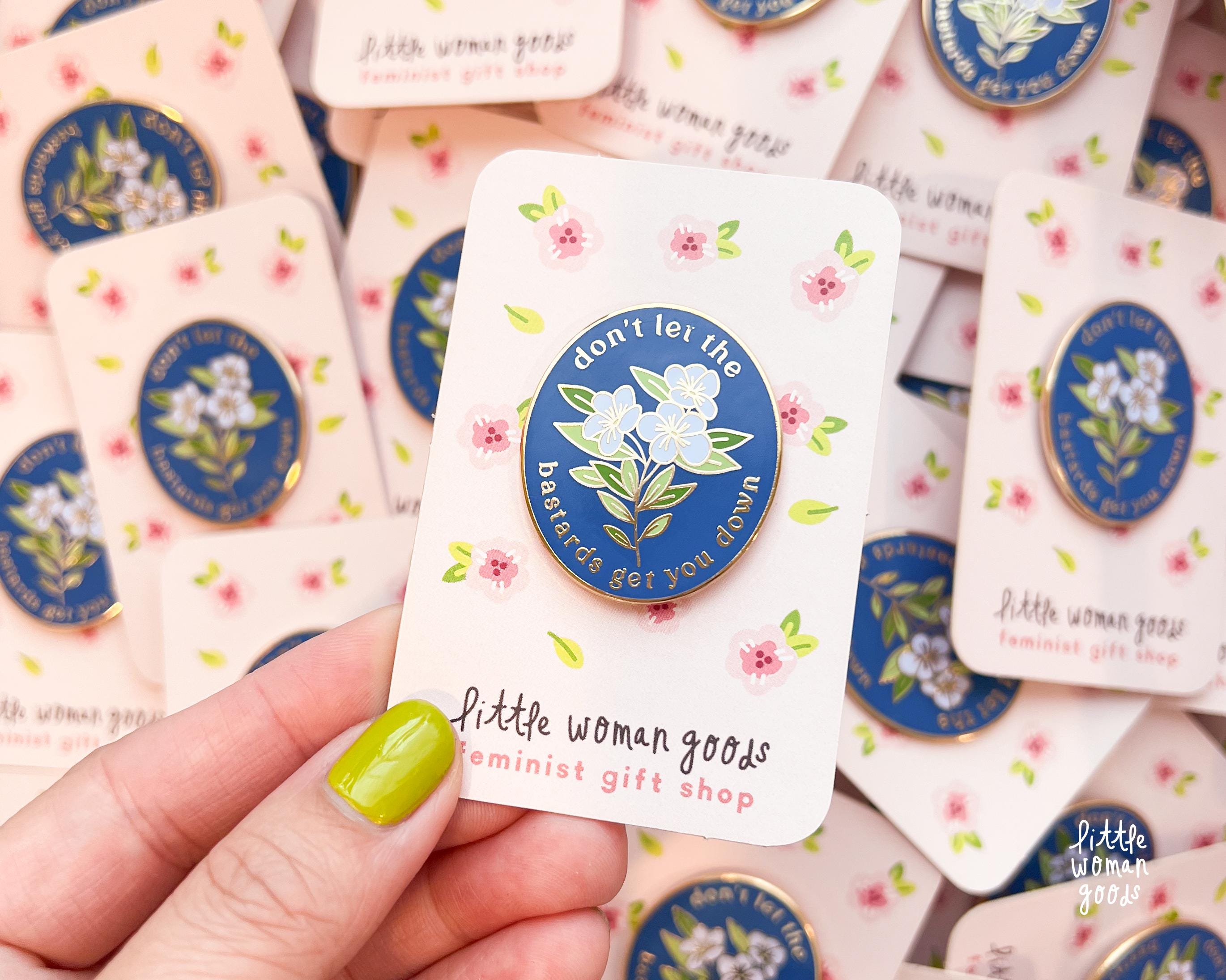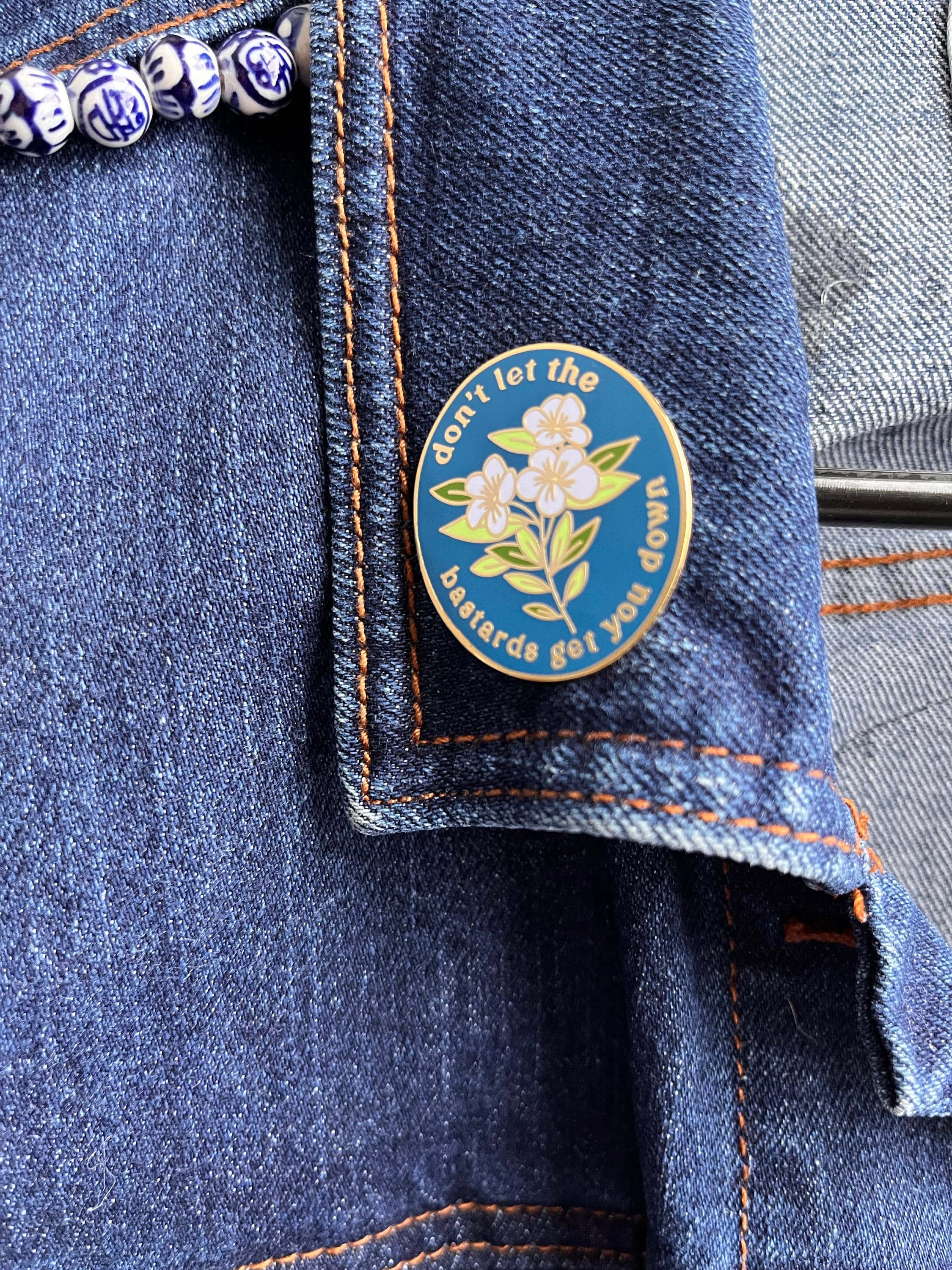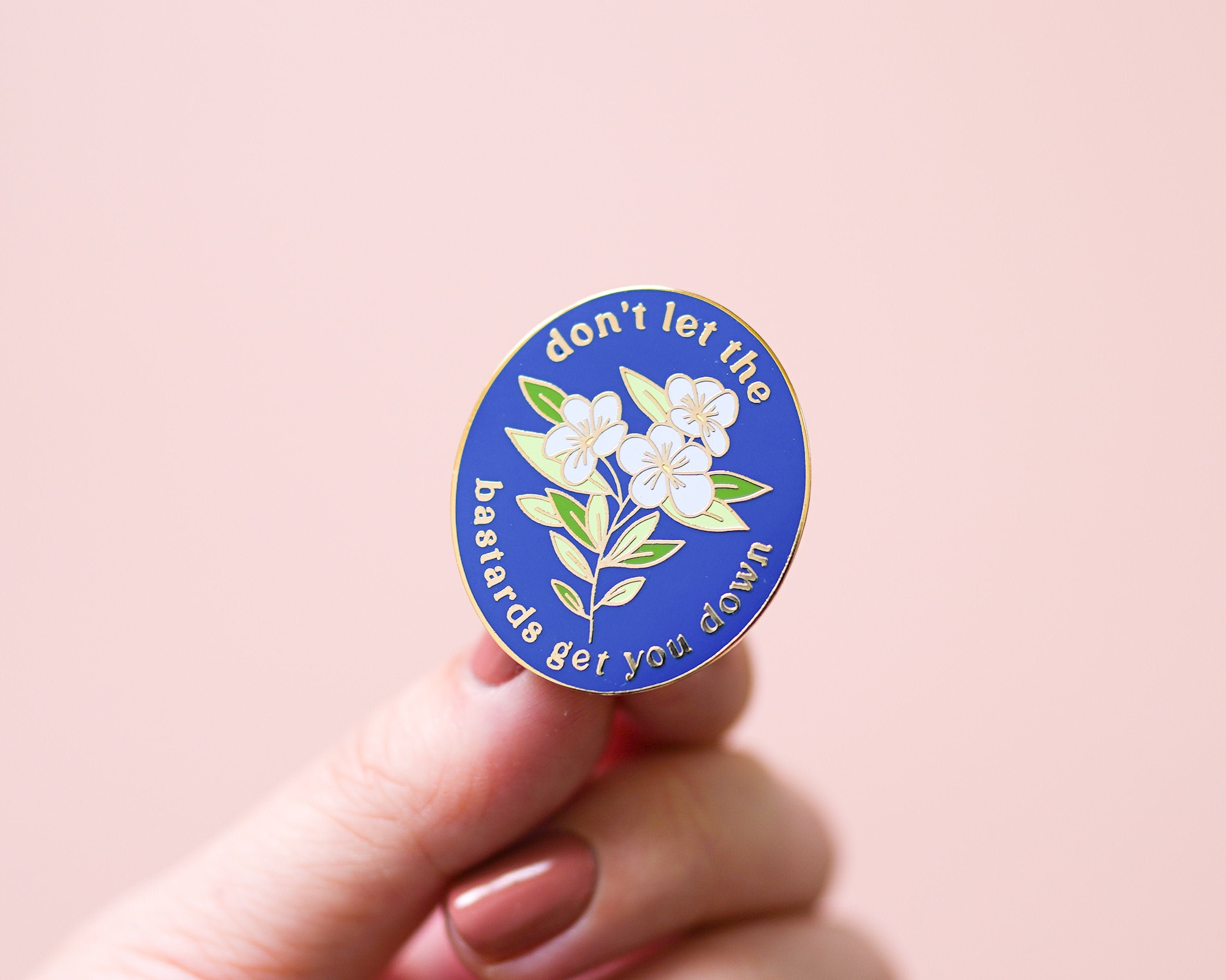 Don't Let Assholes Get You Down Pin Set: Buy One, Get One Free, 50% off! Buy two pins for only $18, one for yourself and one for a friend! Pin set includes 2 pins of the same design (Don't Let Assholes Get You Down Pin).
