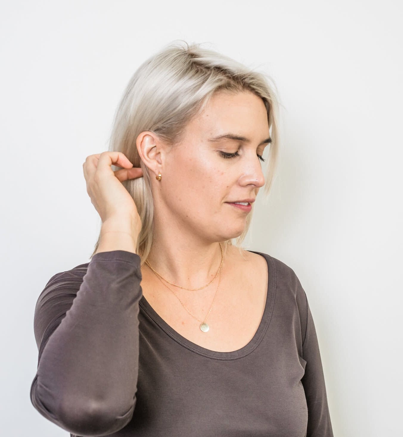 • Disc Pendant: 12mm, 14kt gold plated, sterling silver, or rose gold plated