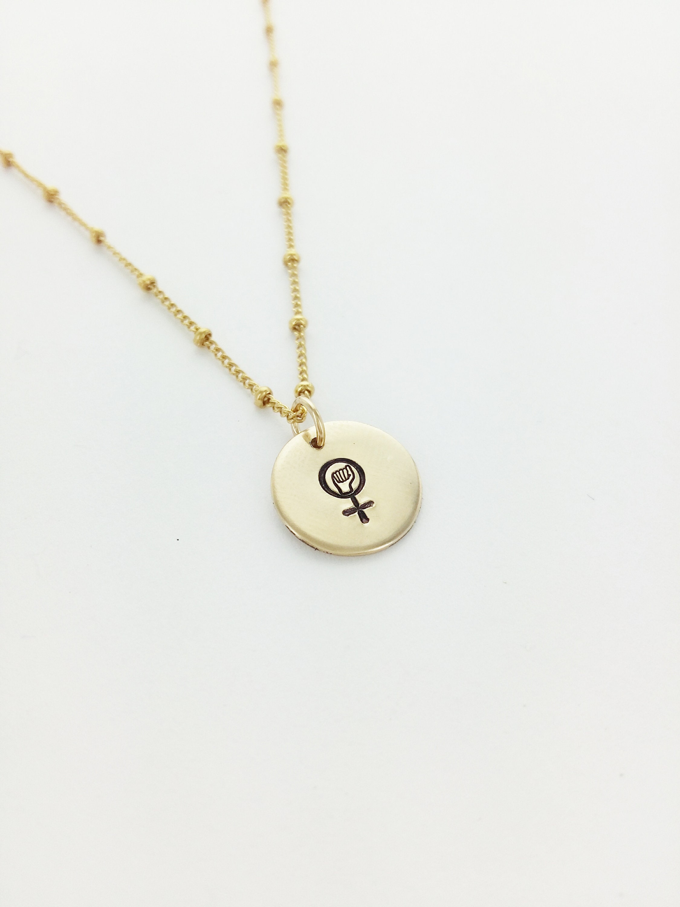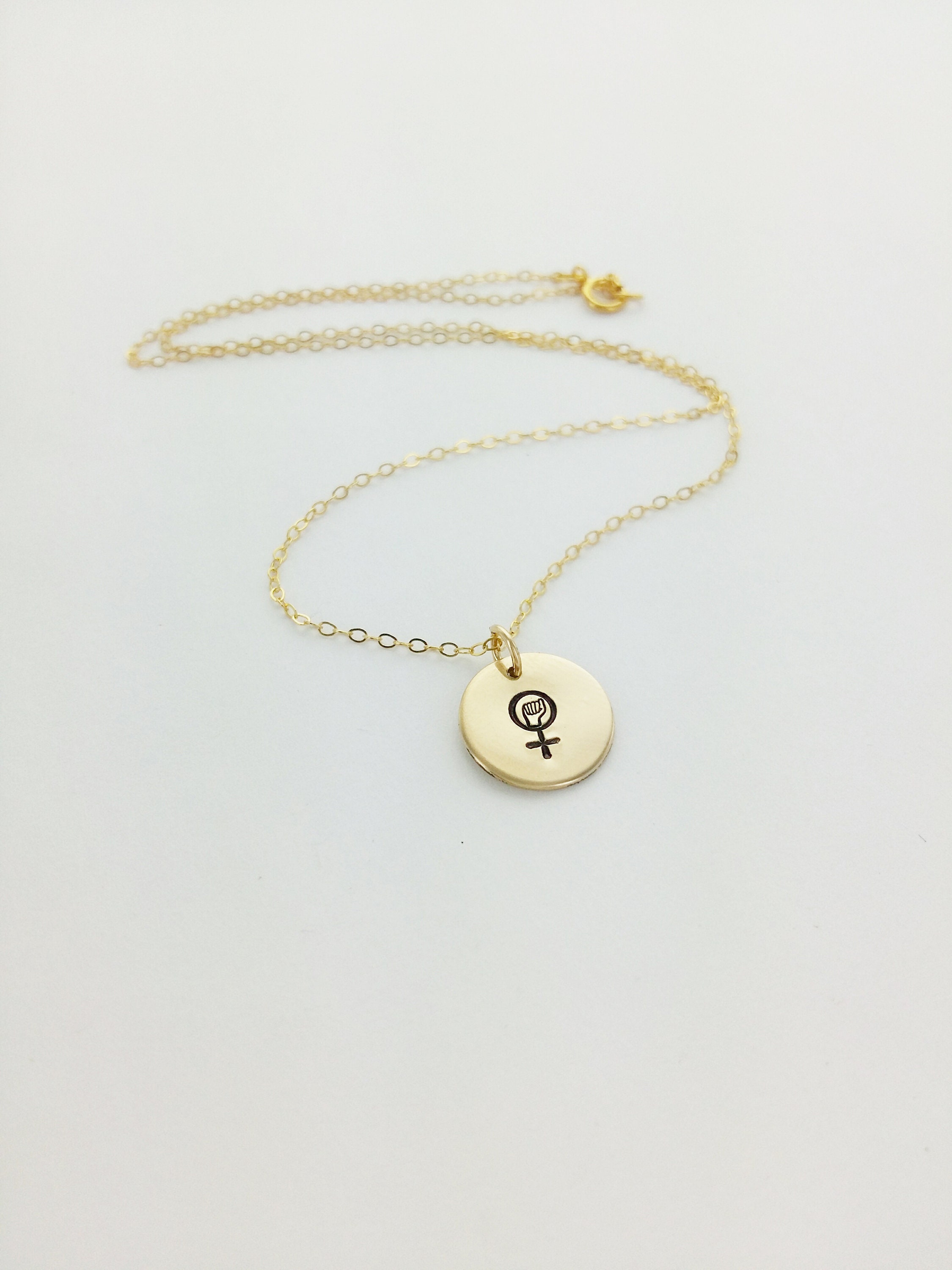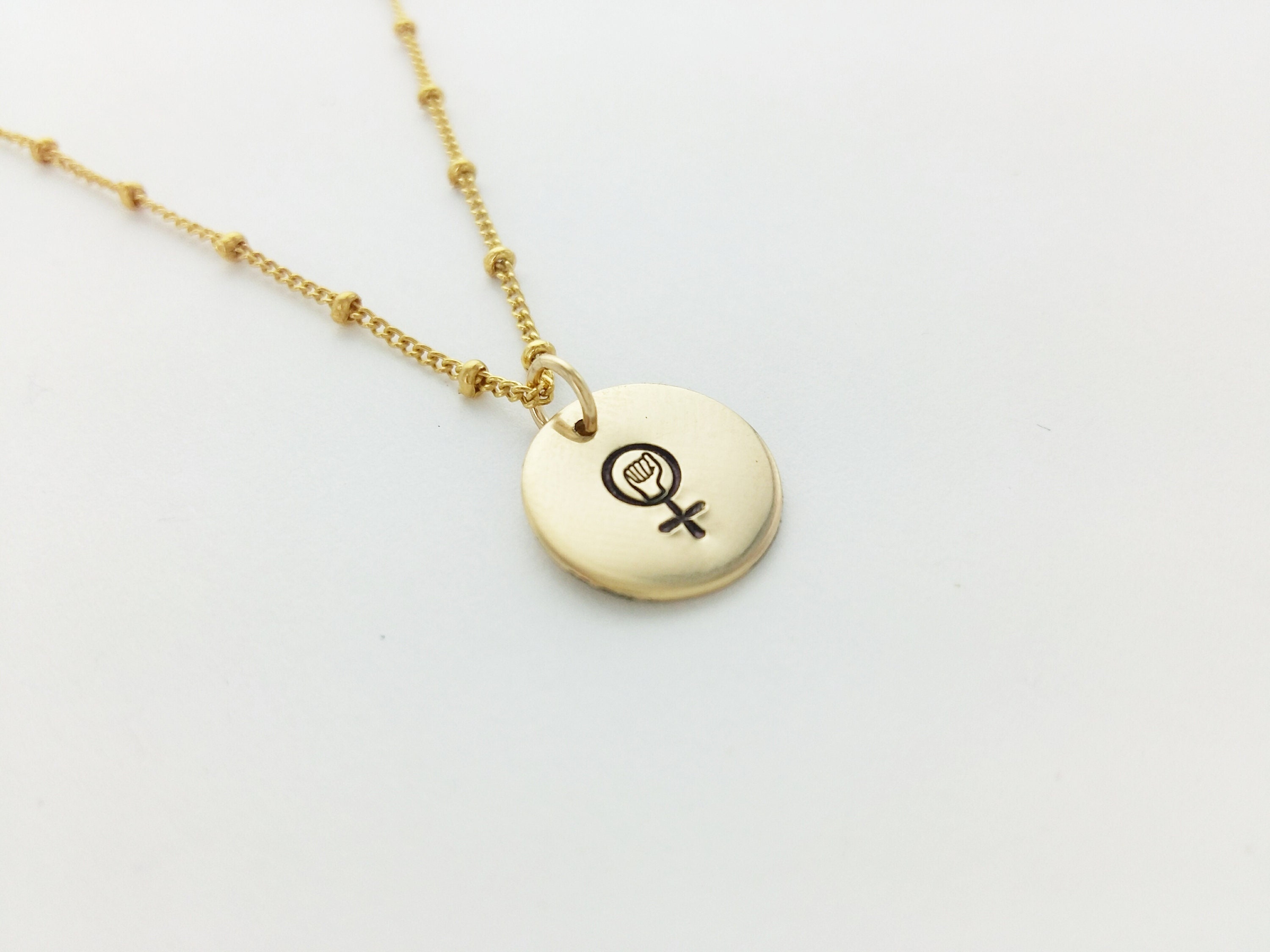Feminist Fist Necklace, Female Symbol, Engraved Disk Necklace, Resist, Protest, Smash the Patriarchy, Power, Gold, Silver, Rose Gold, Gift