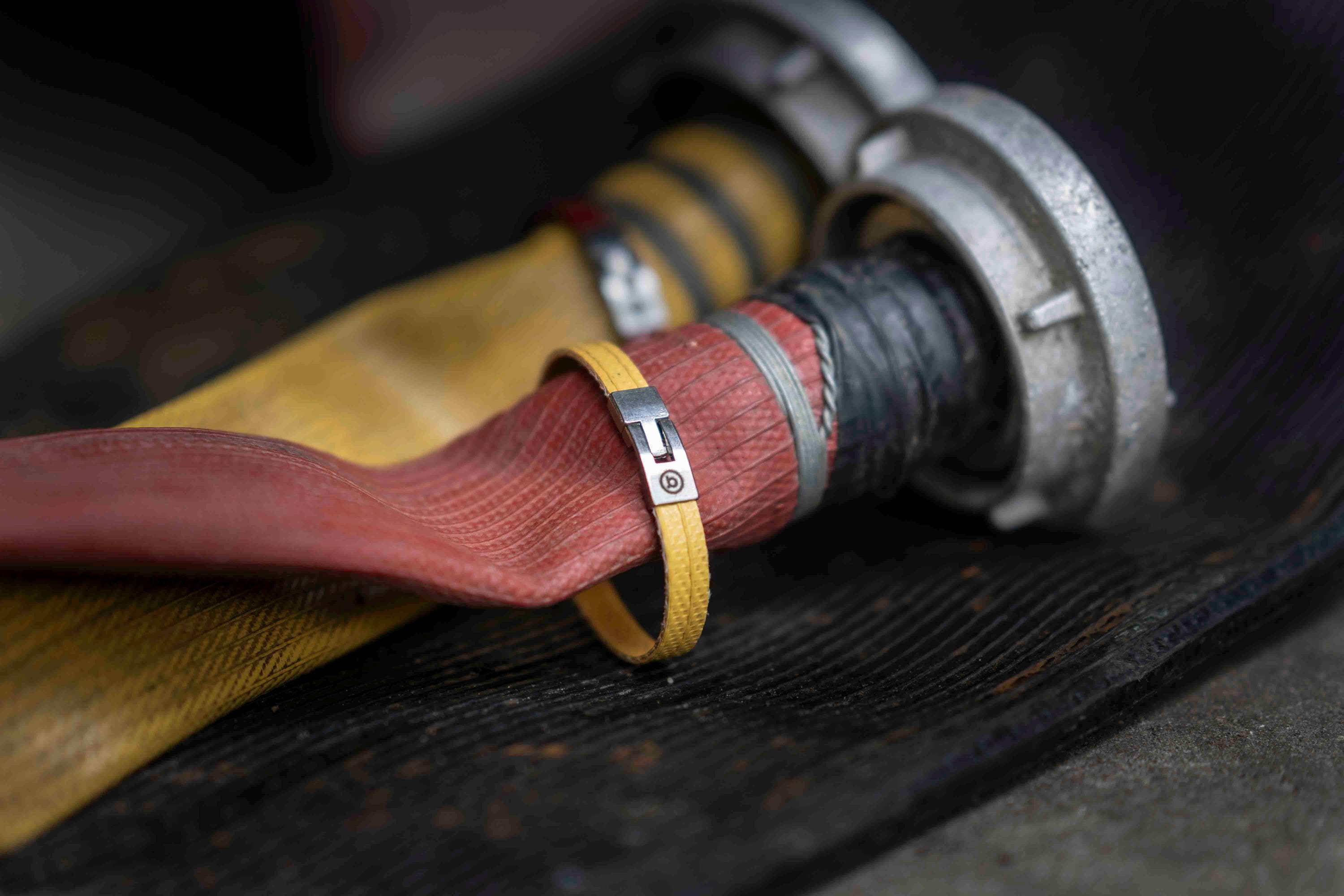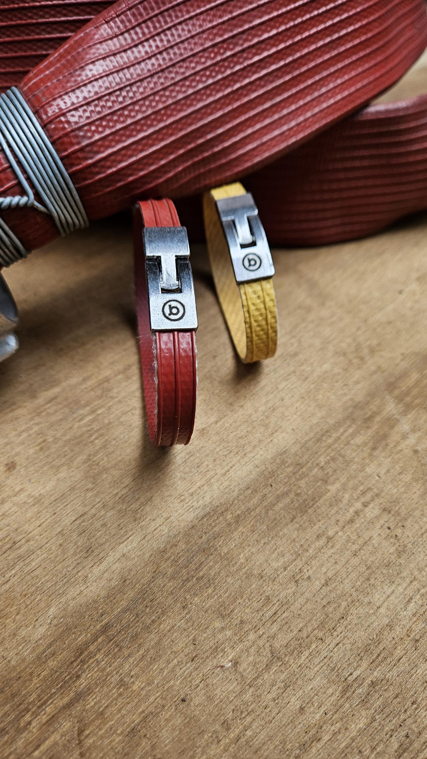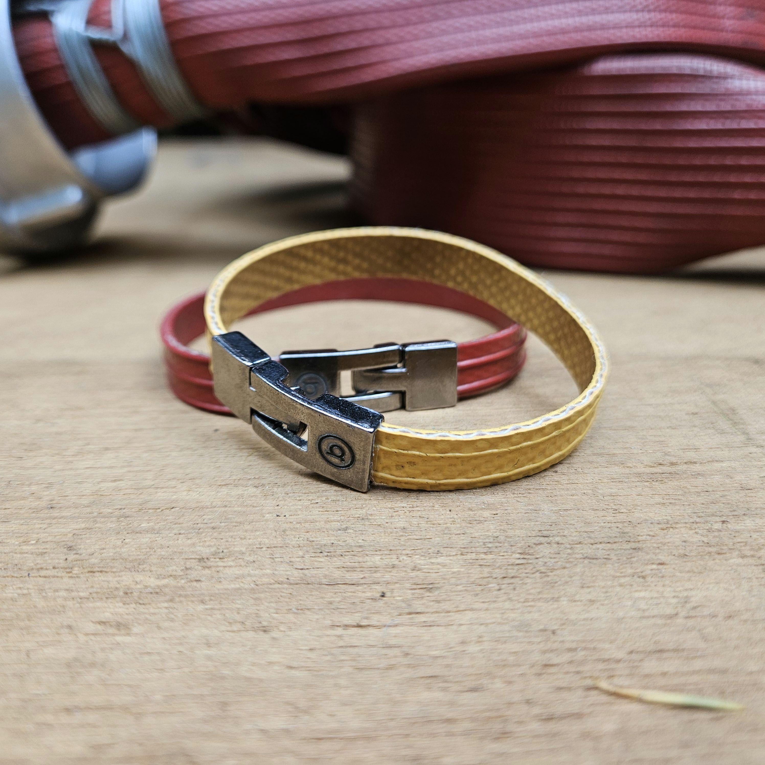 Unique Fire Hose Bracelet - Available in Yellow and Red – Bold and Sustainable Accessory. Made from old used Dutch firehoses.