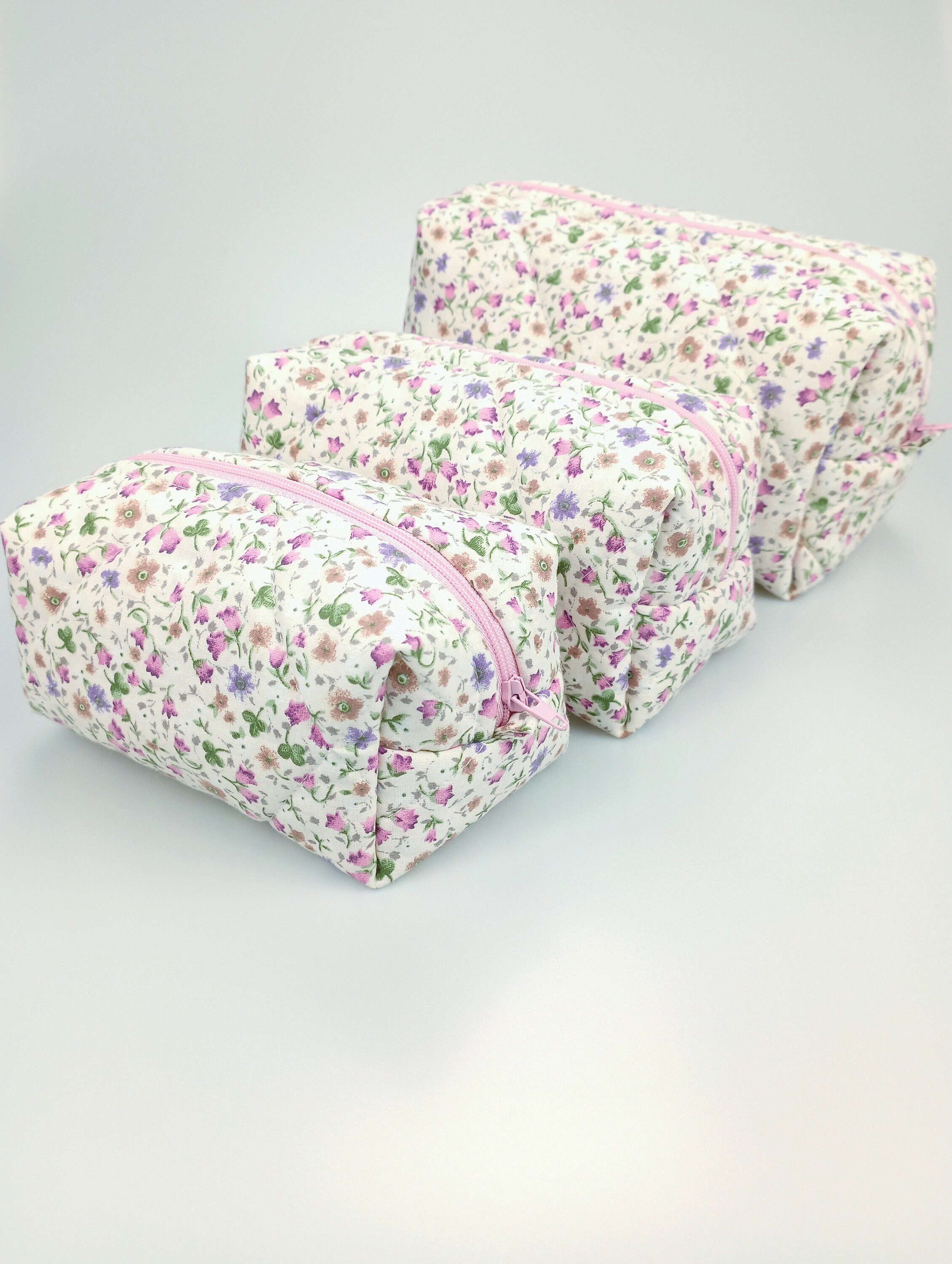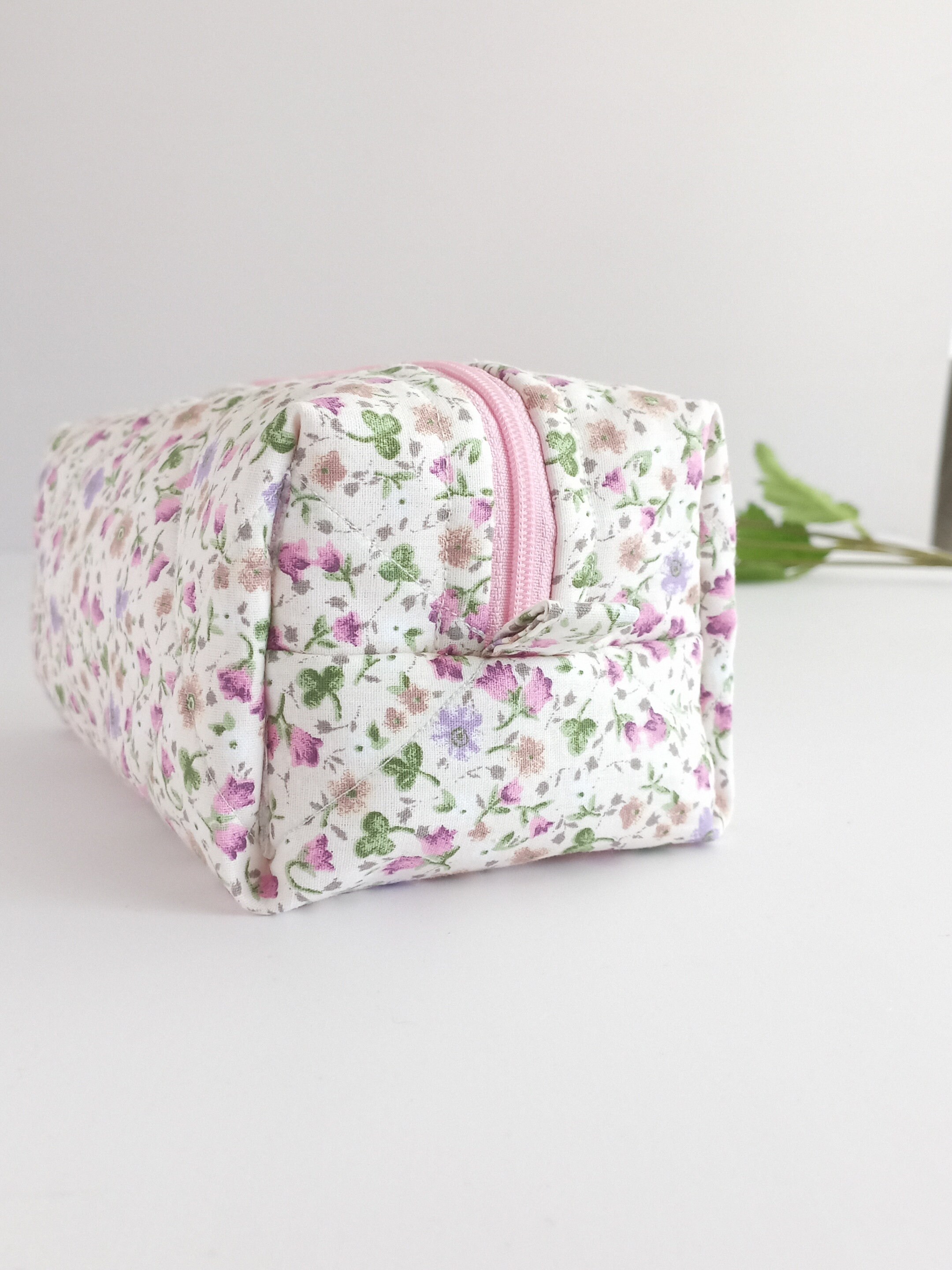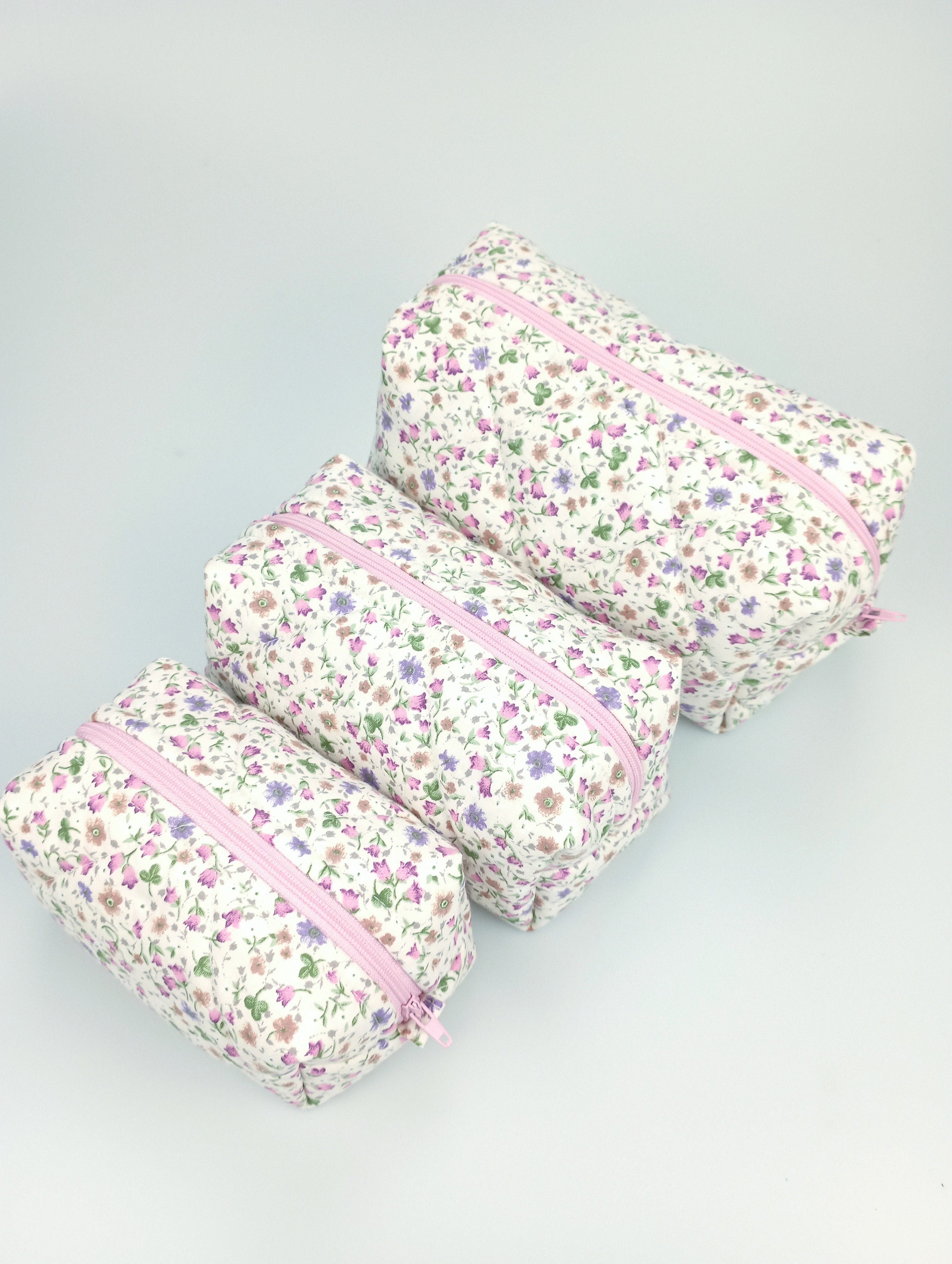 Both the outer and inner fabrics are made of cotton fabric. There is fiber fabric in between, so we have a fuller and softer makeup bag. The fiber fabric inside will not slip because of the cross stitching.