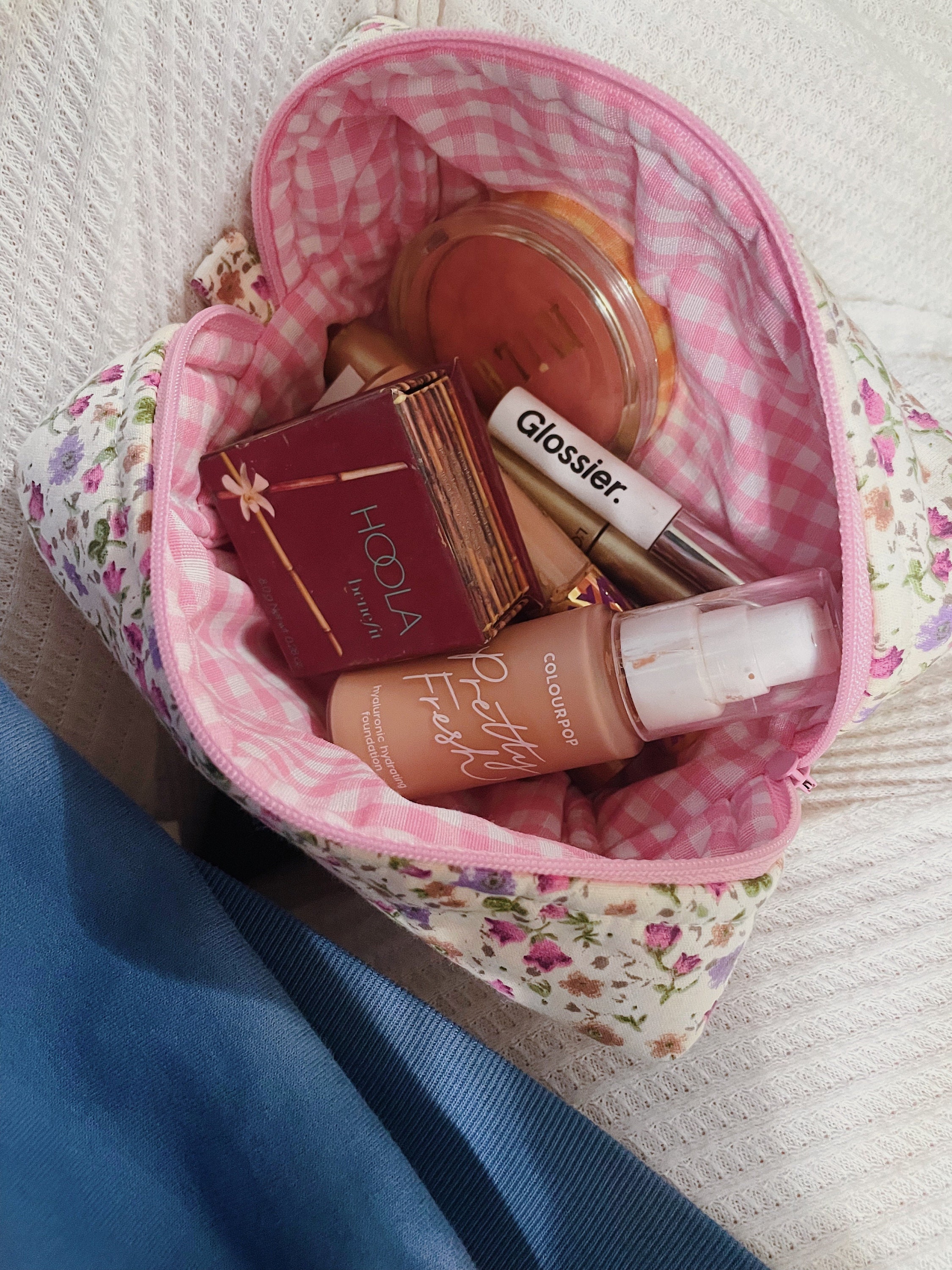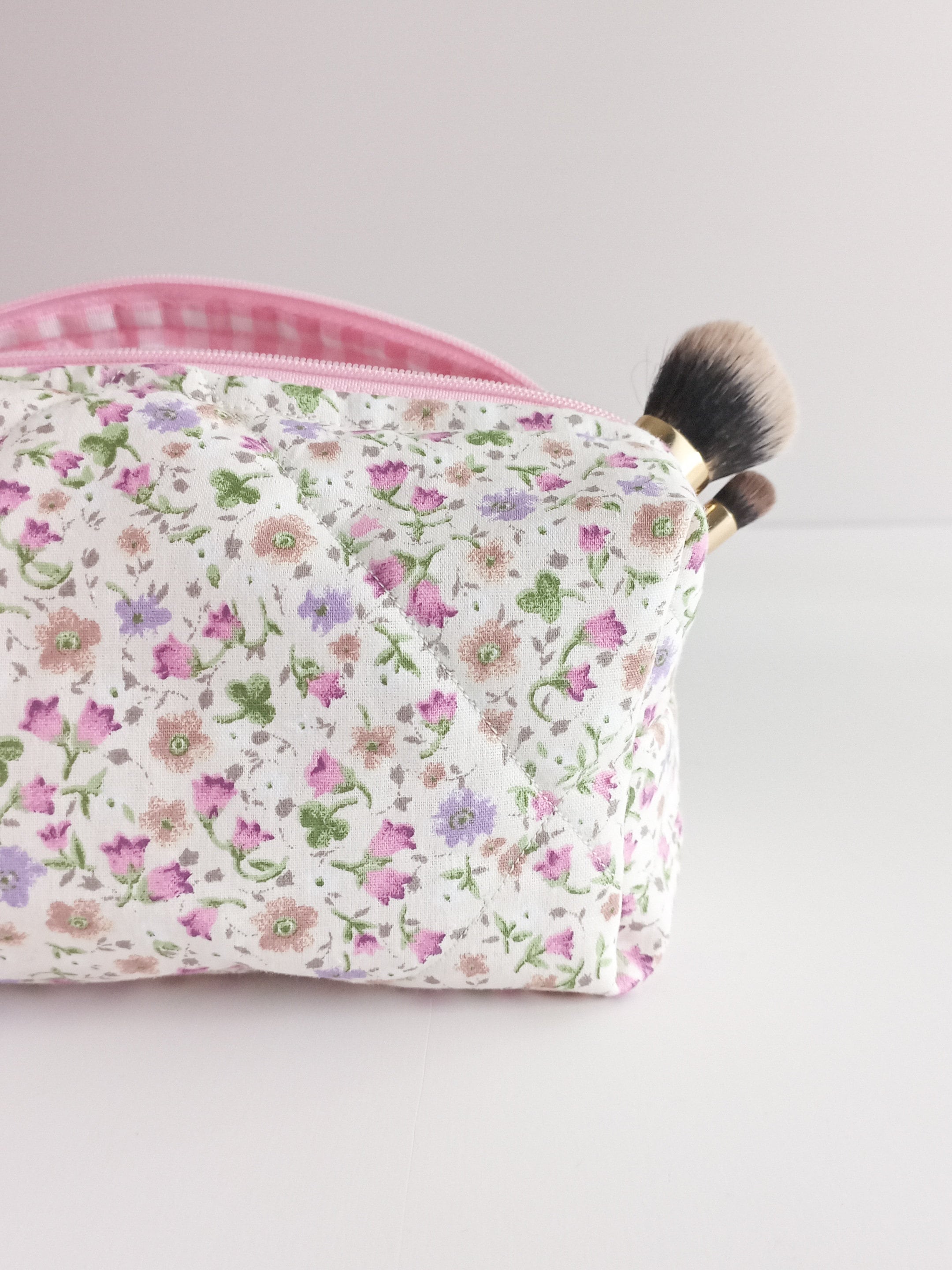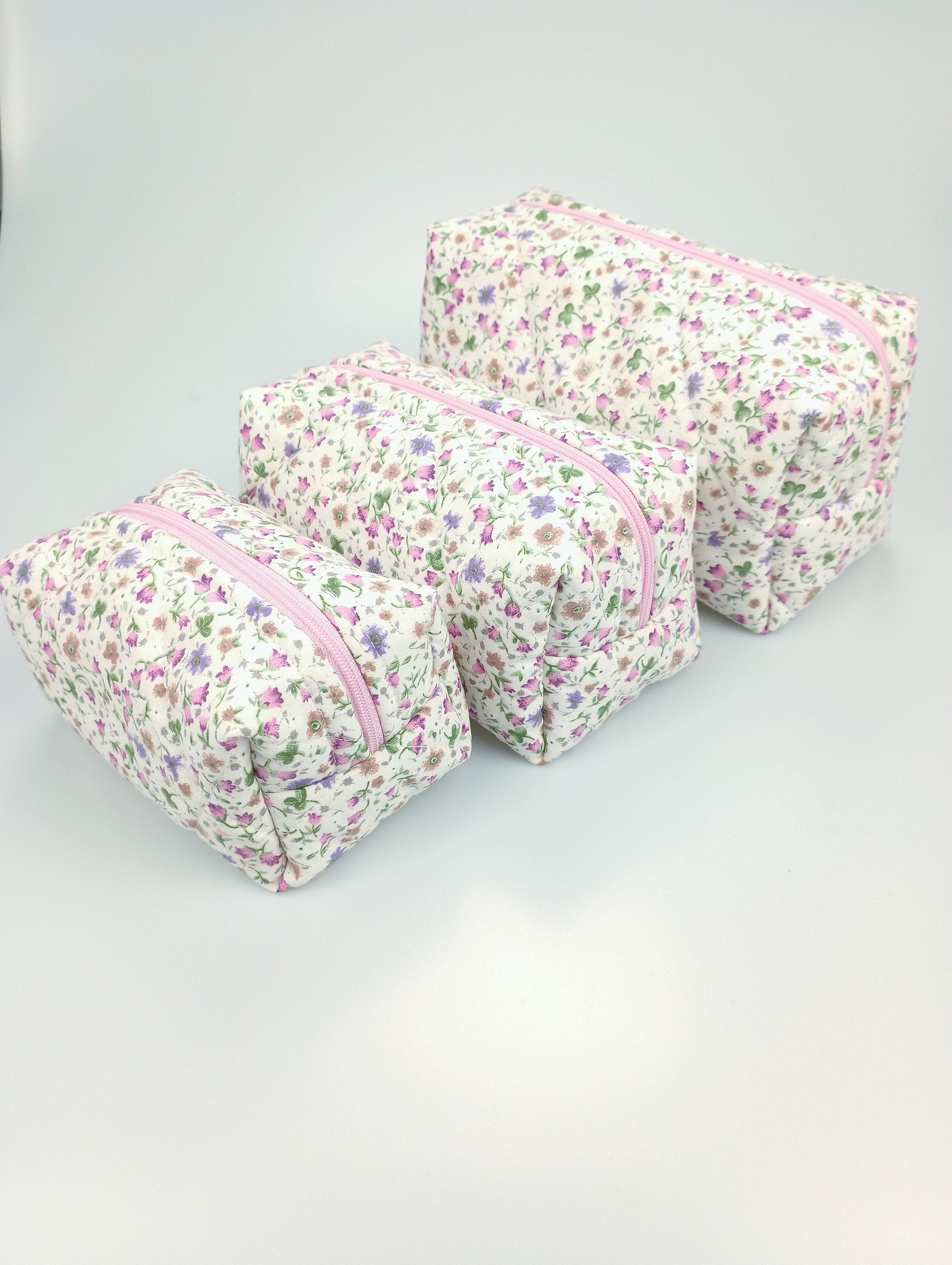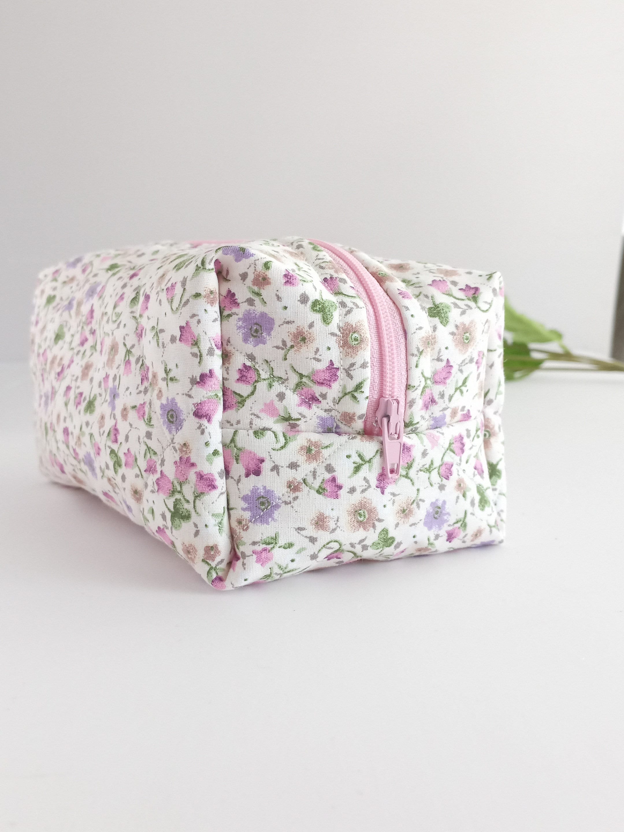 Both the outer and inner fabrics are made of cotton fabric. There is fiber fabric in between, so we have a fuller and softer makeup bag. The fiber fabric inside will not slip because of the cross stitching.