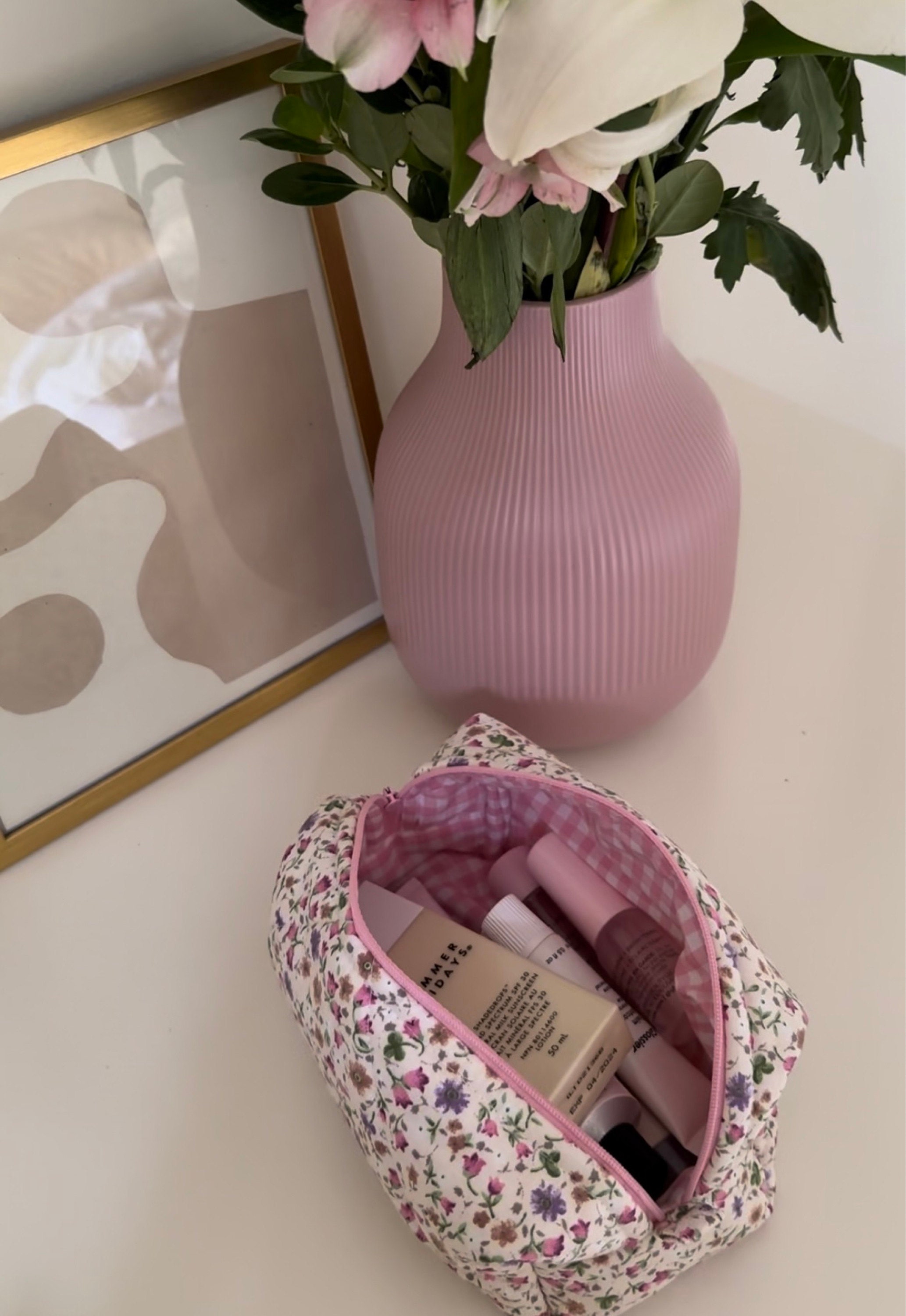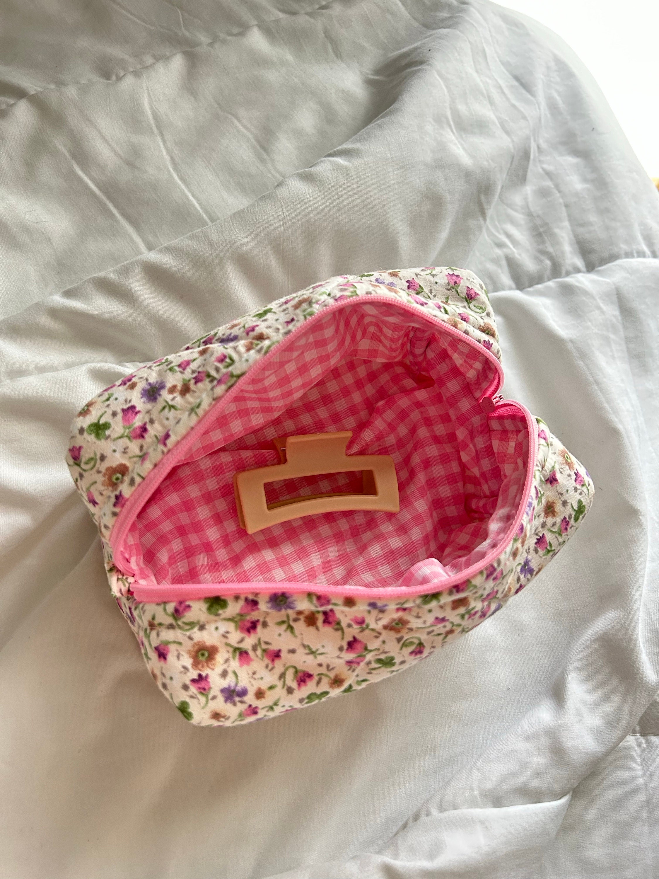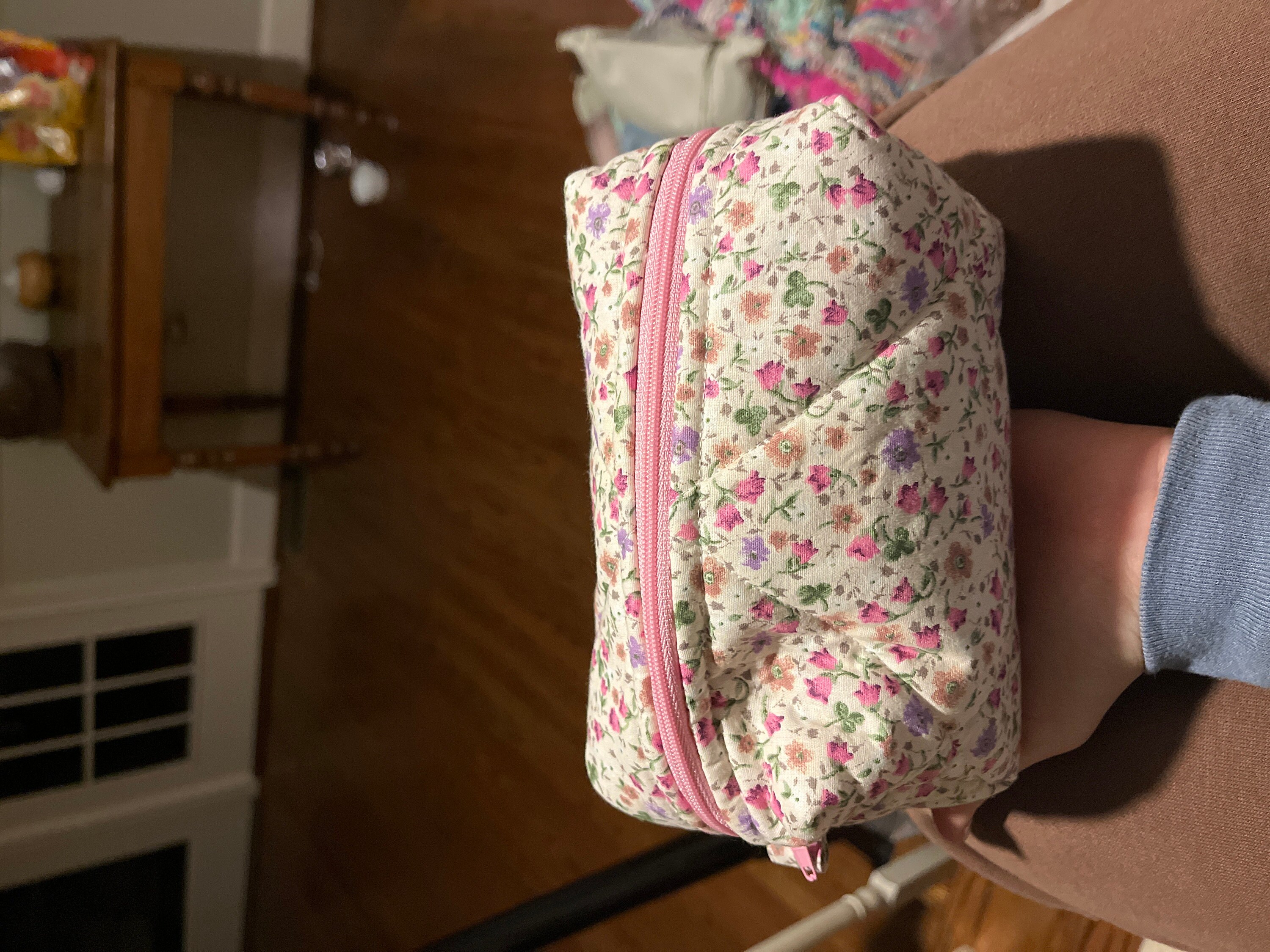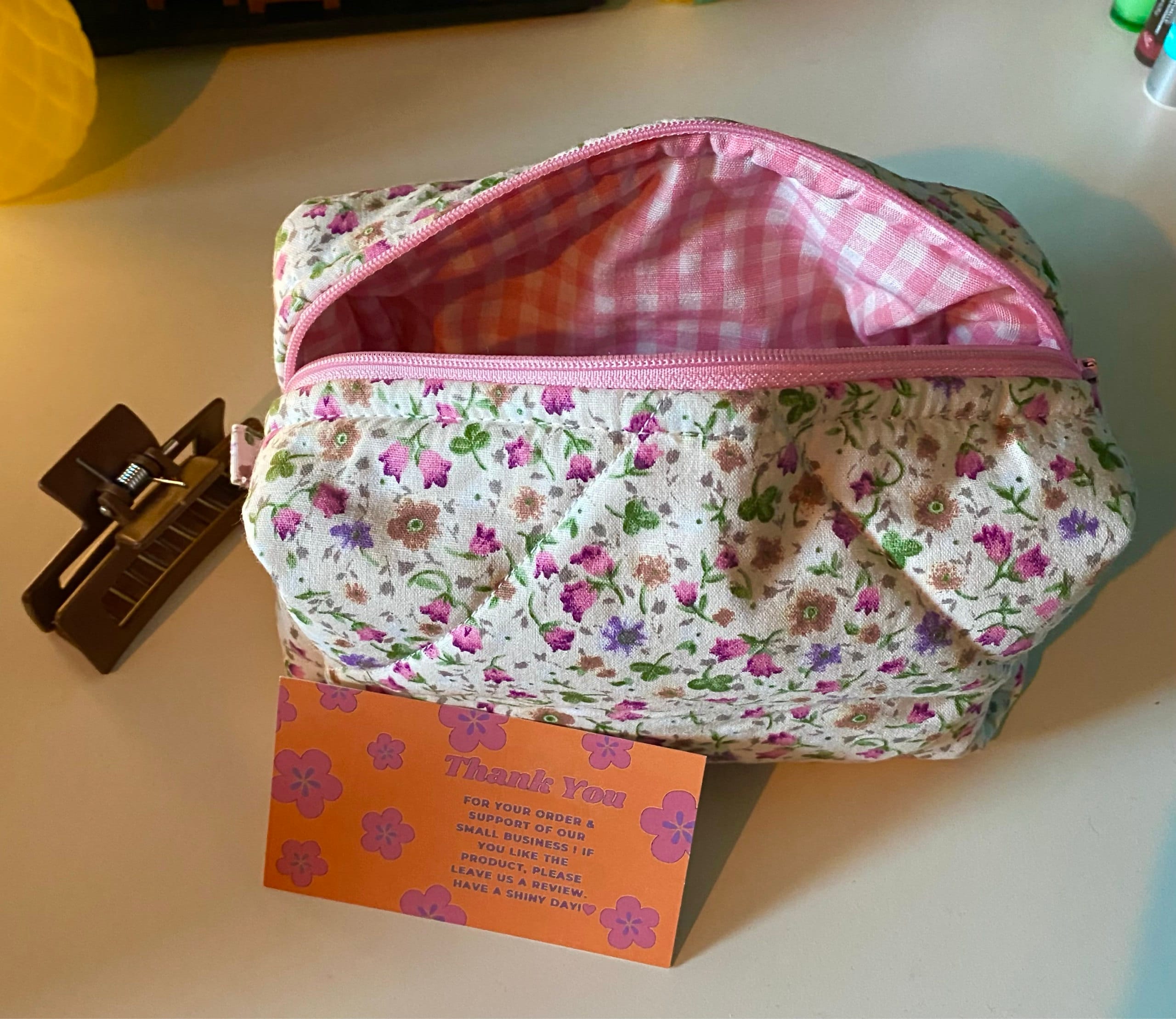 This cute, flower-patterned makeup bag will help you in many ways. You can put your makeup in this makeup bag when you go to a party or go out. You can give it as a gift to a friend to make your loved one happy. If you are traveling, you can put the makeup bag in your suitcase to prevent your makeup materials from being messy. When you go to school, you can use it as a pencil case. 🌸