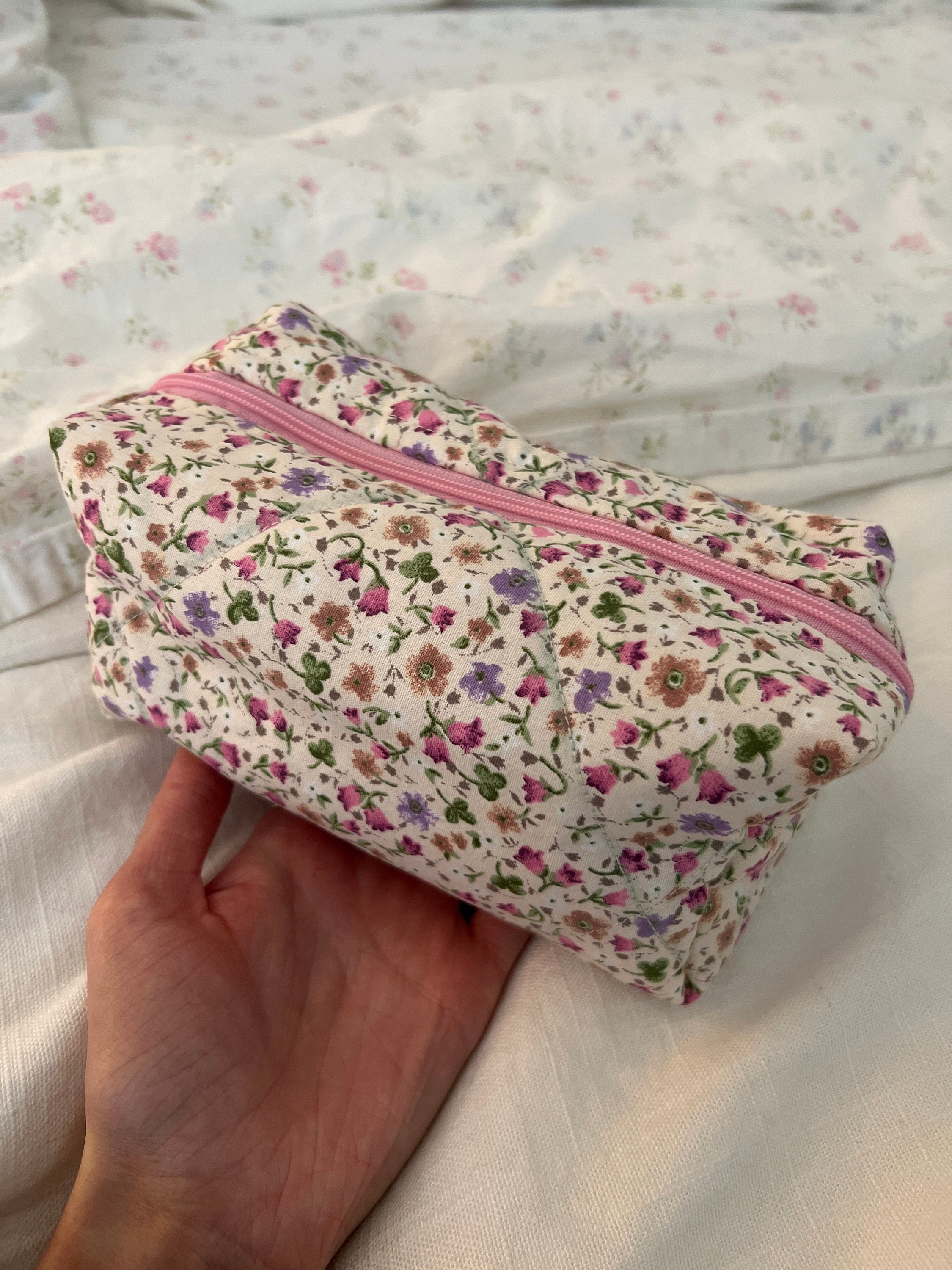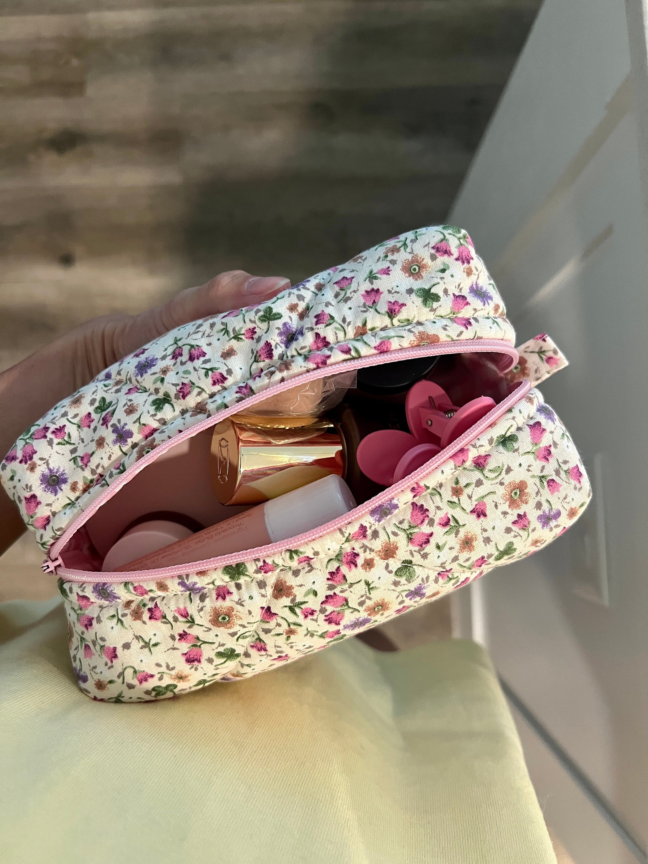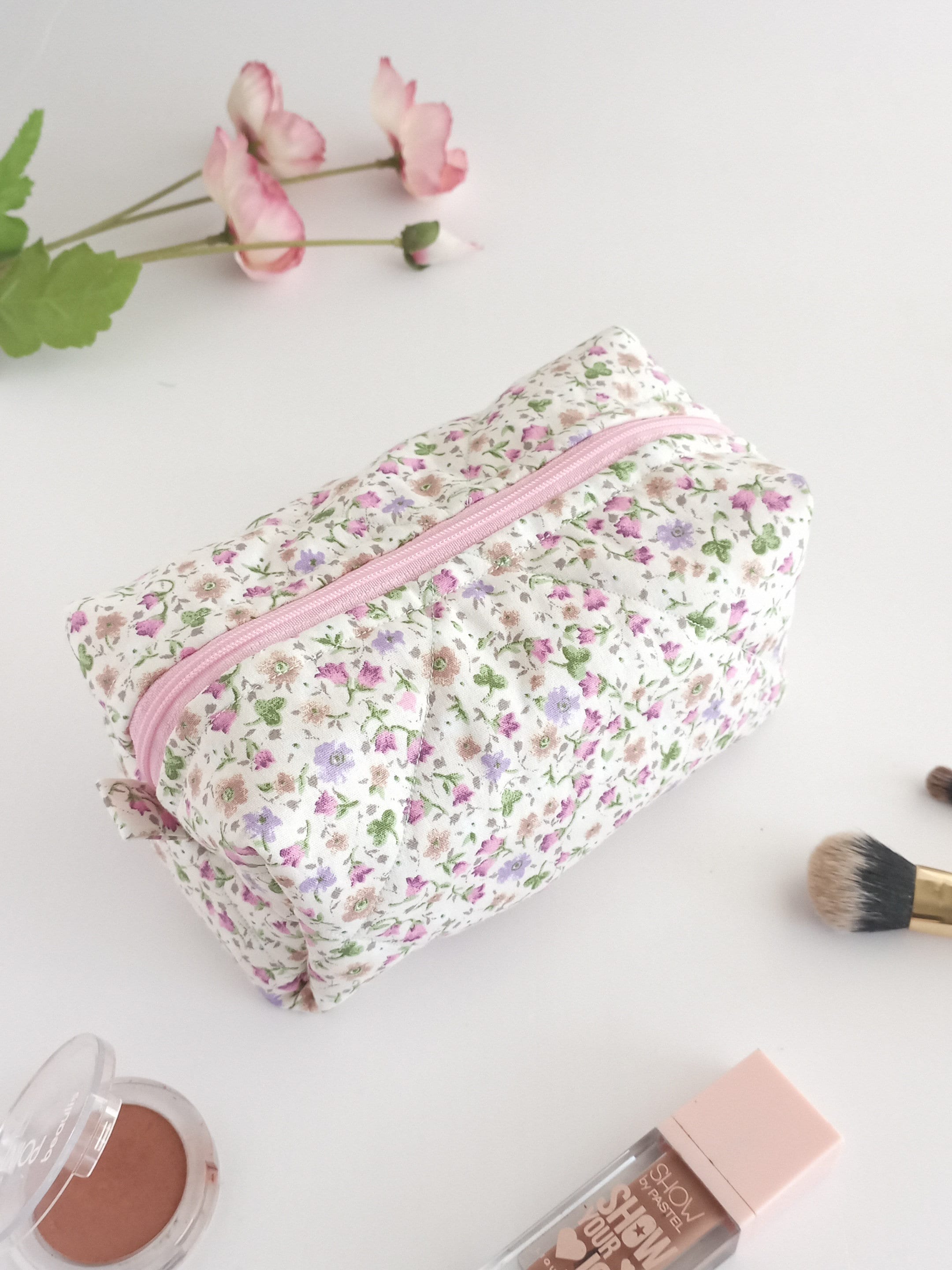This cute, flower-patterned makeup bag will help you in many ways. You can put your makeup in this makeup bag when you go to a party or go out. You can give it as a gift to a friend to make your loved one happy. If you are traveling, you can put the makeup bag in your suitcase to prevent your makeup materials from being messy. When you go to school, you can use it as a pencil case. 🌸