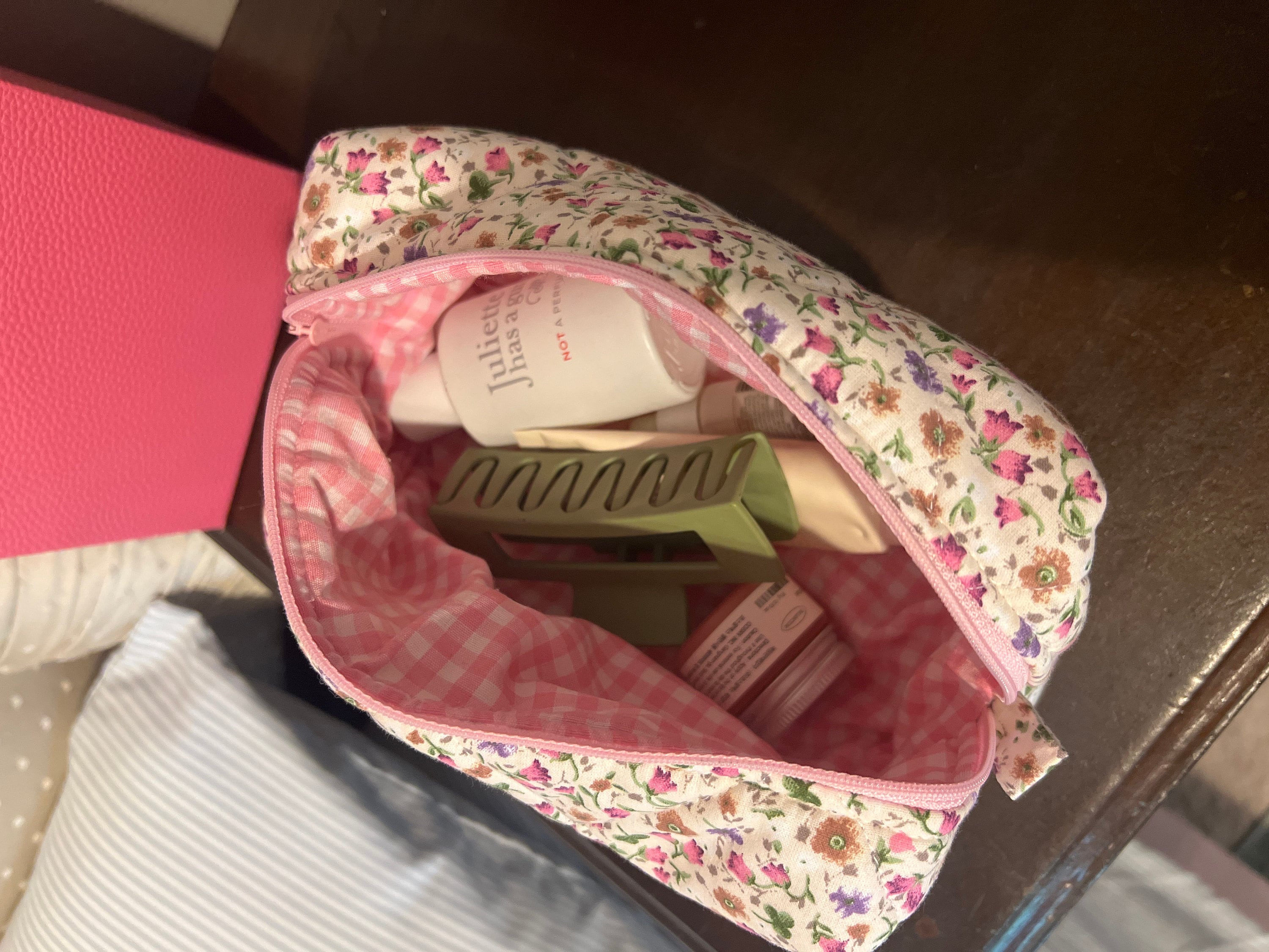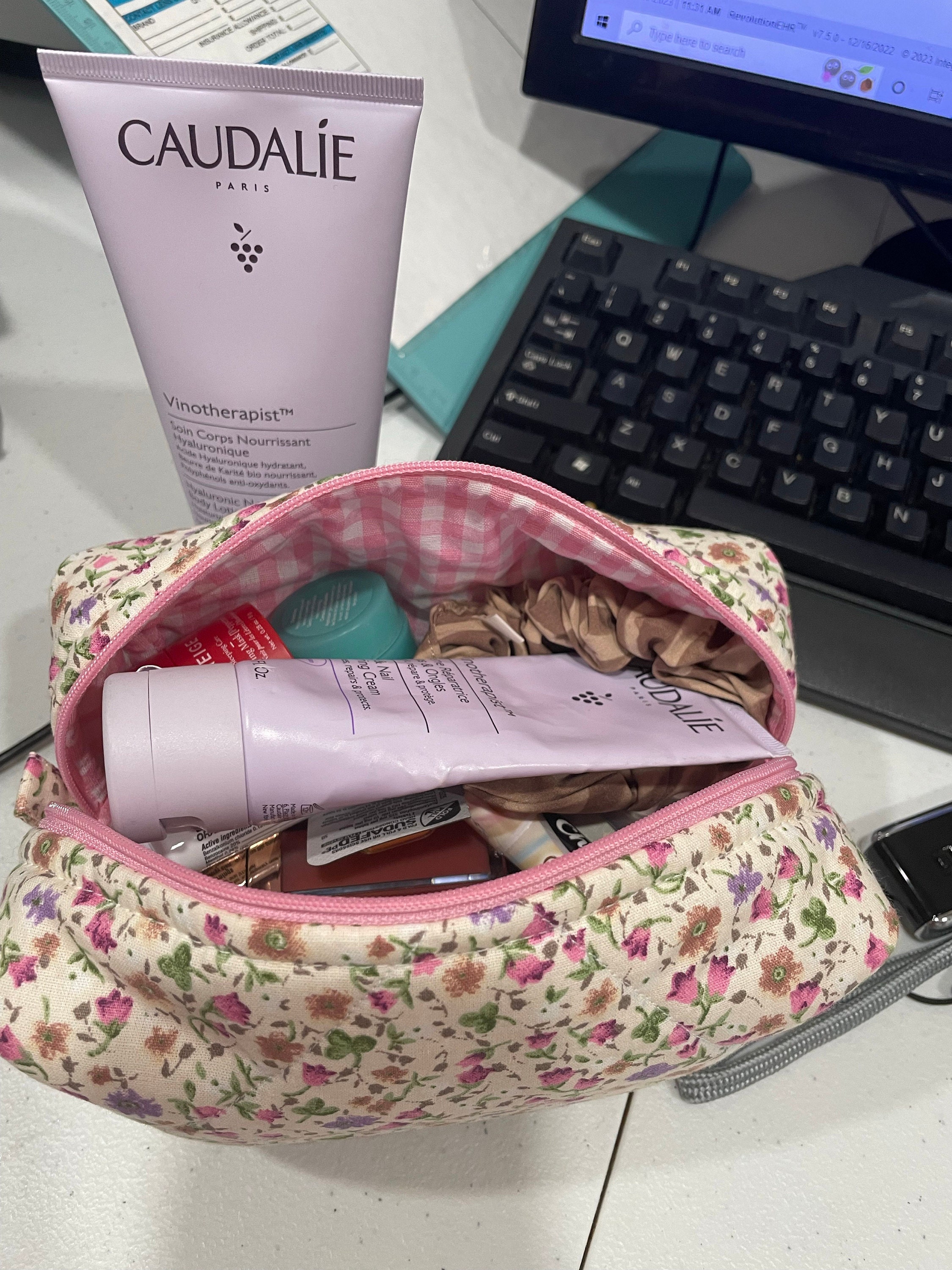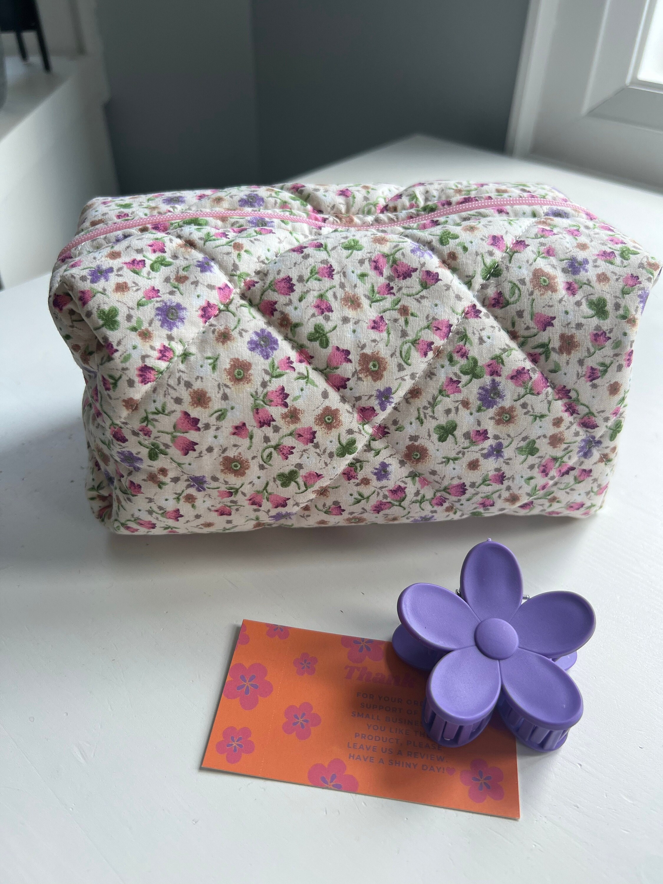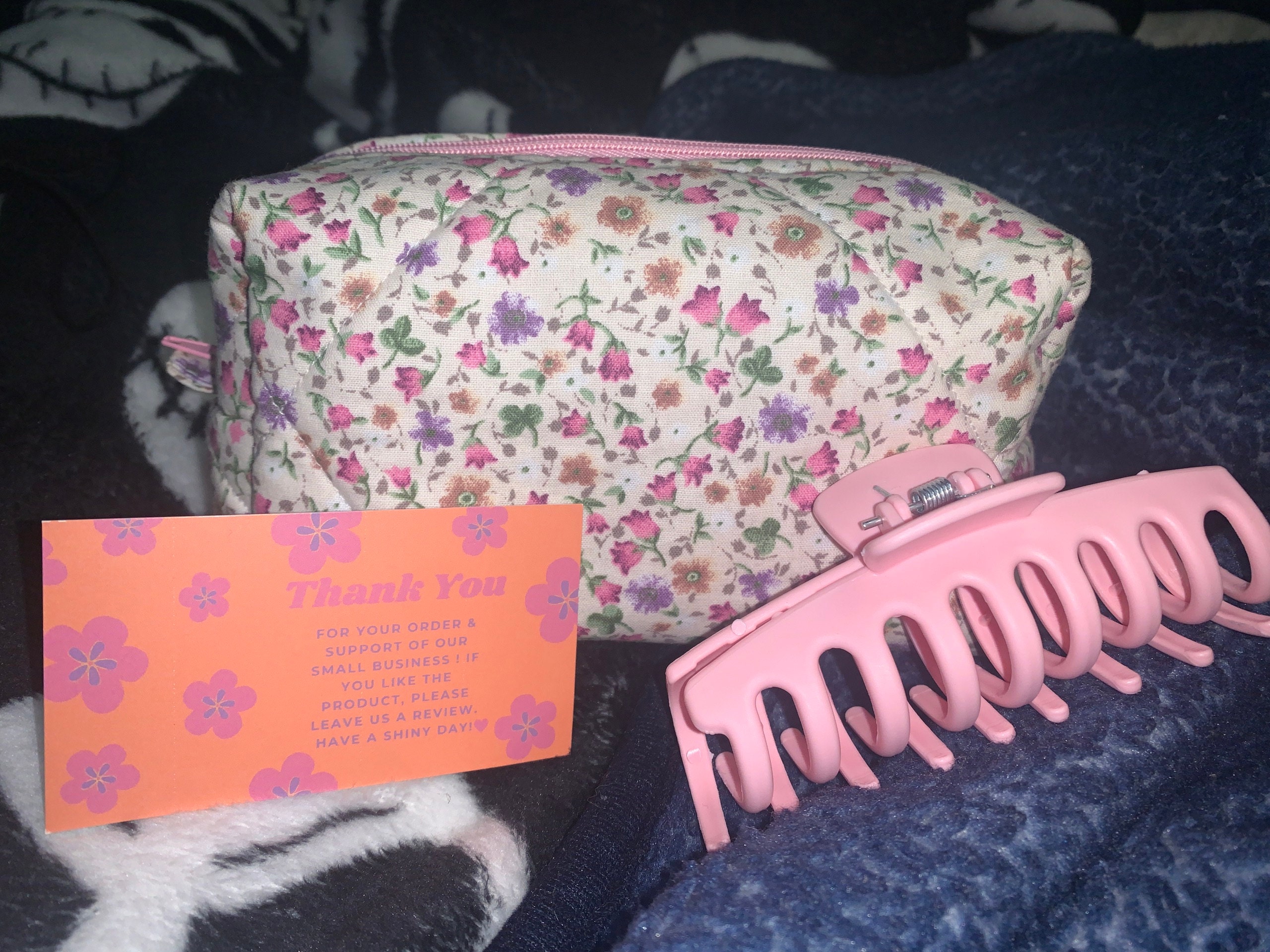 This cute, flower-patterned makeup bag will help you in many ways. You can put your makeup in this makeup bag when you go to a party or go out. You can give it as a gift to a friend to make your loved one happy. If you are traveling, you can put the makeup bag in your suitcase to prevent your makeup materials from being messy. When you go to school, you can use it as a pencil case. 🌸