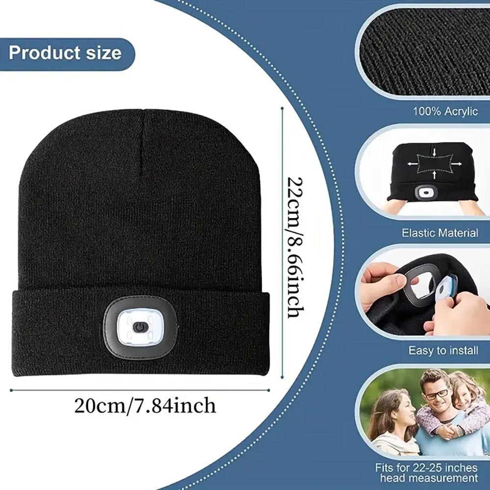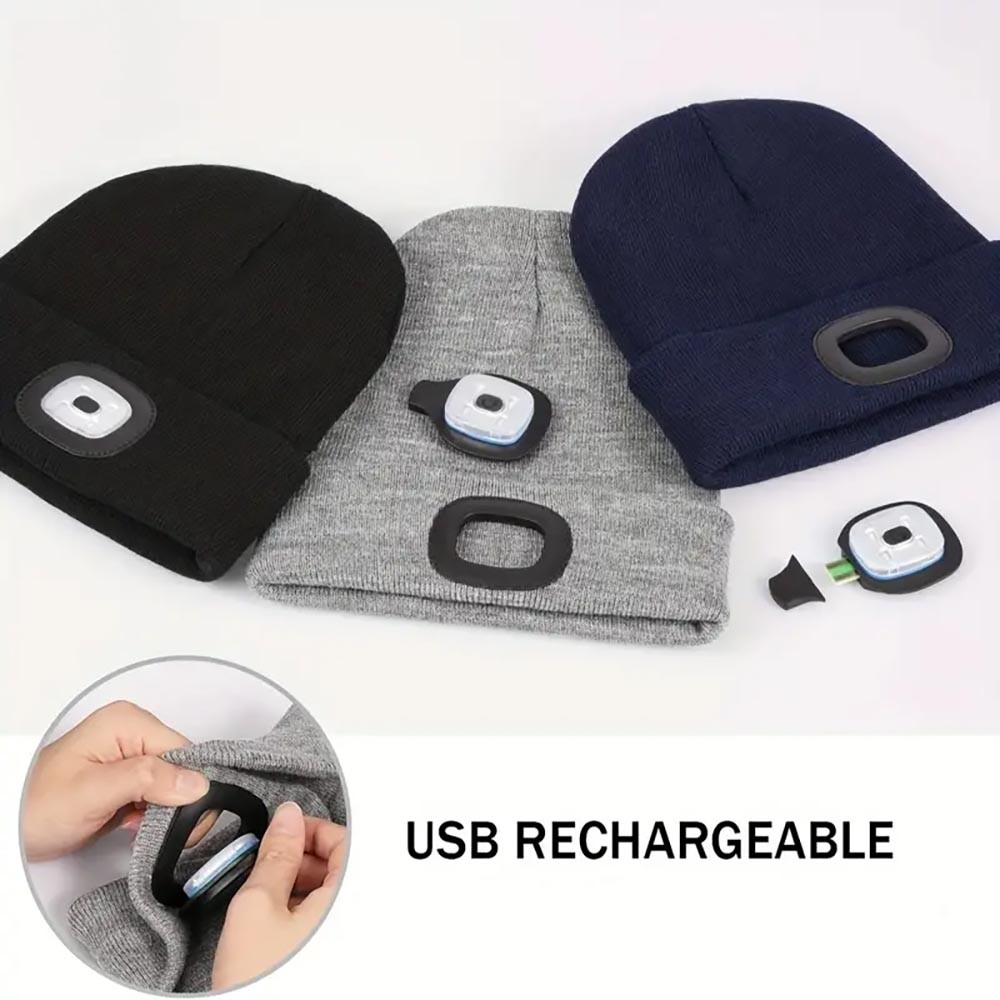 Illuminate your adventures with our Unisex 4 LED USB Rechargeable Headlamp Knitted Cap! This innovative beanie combines warmth and functionality, featuring built-in LED lights that provide hands-free illumination for all your outdoor activities.