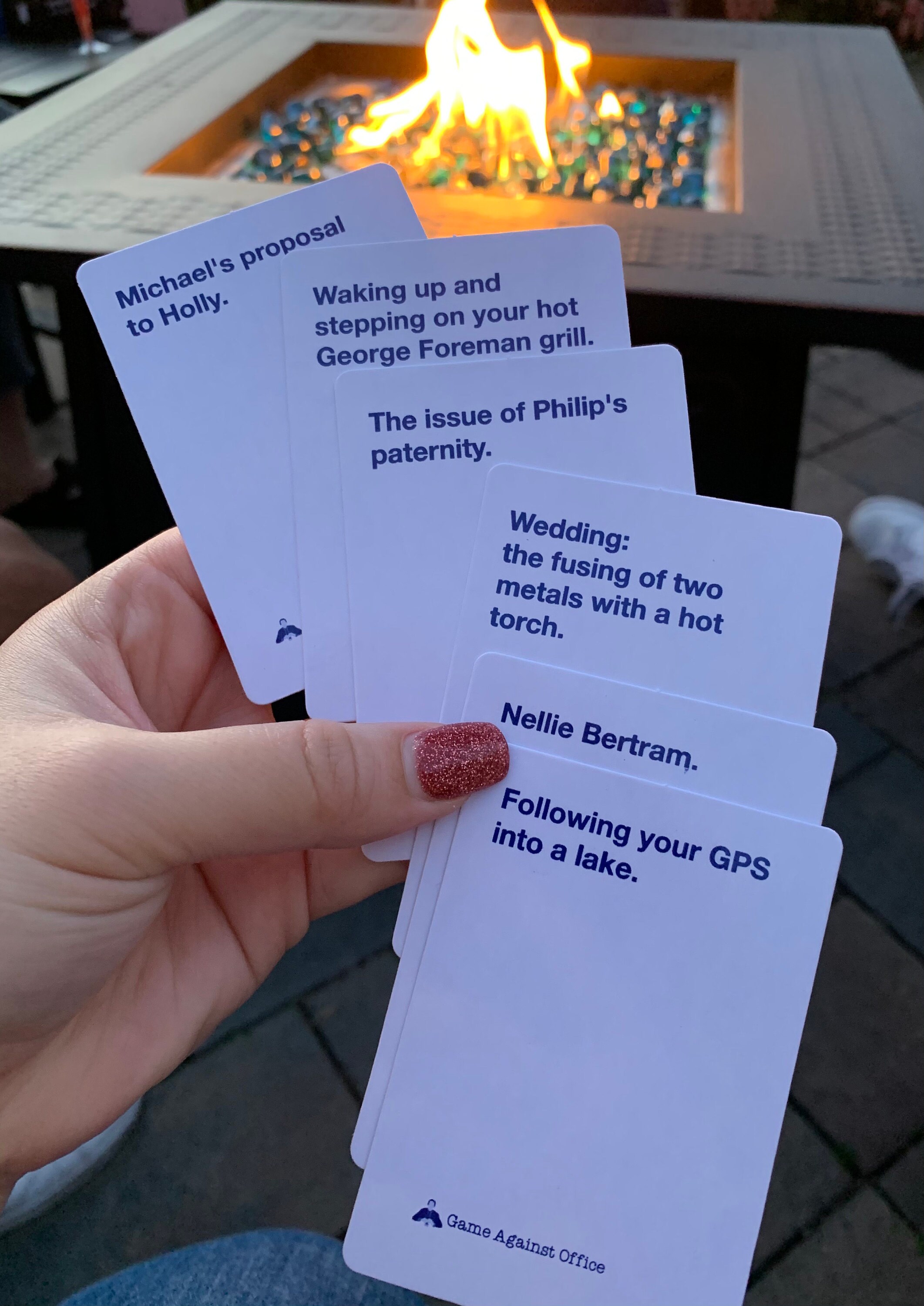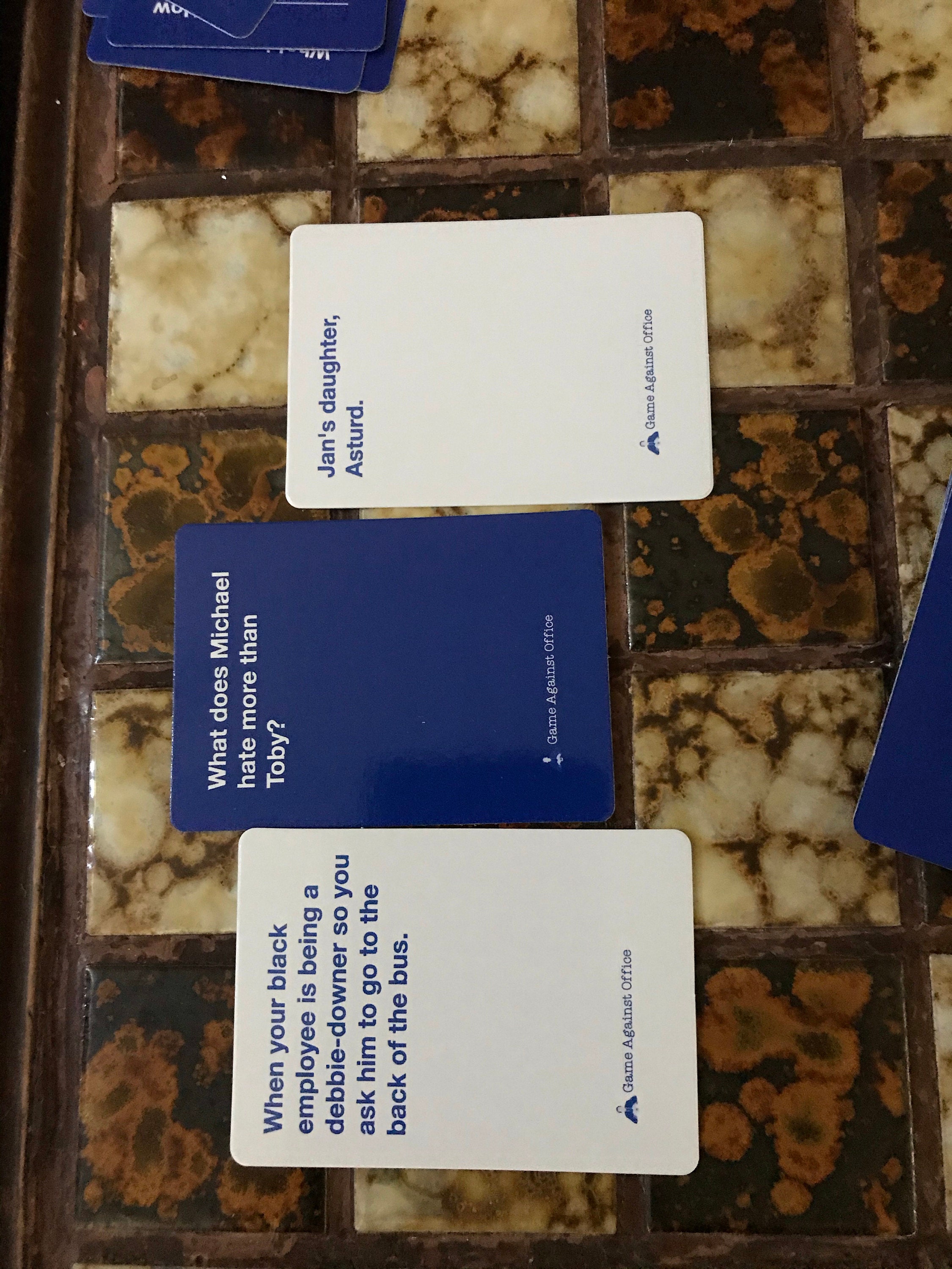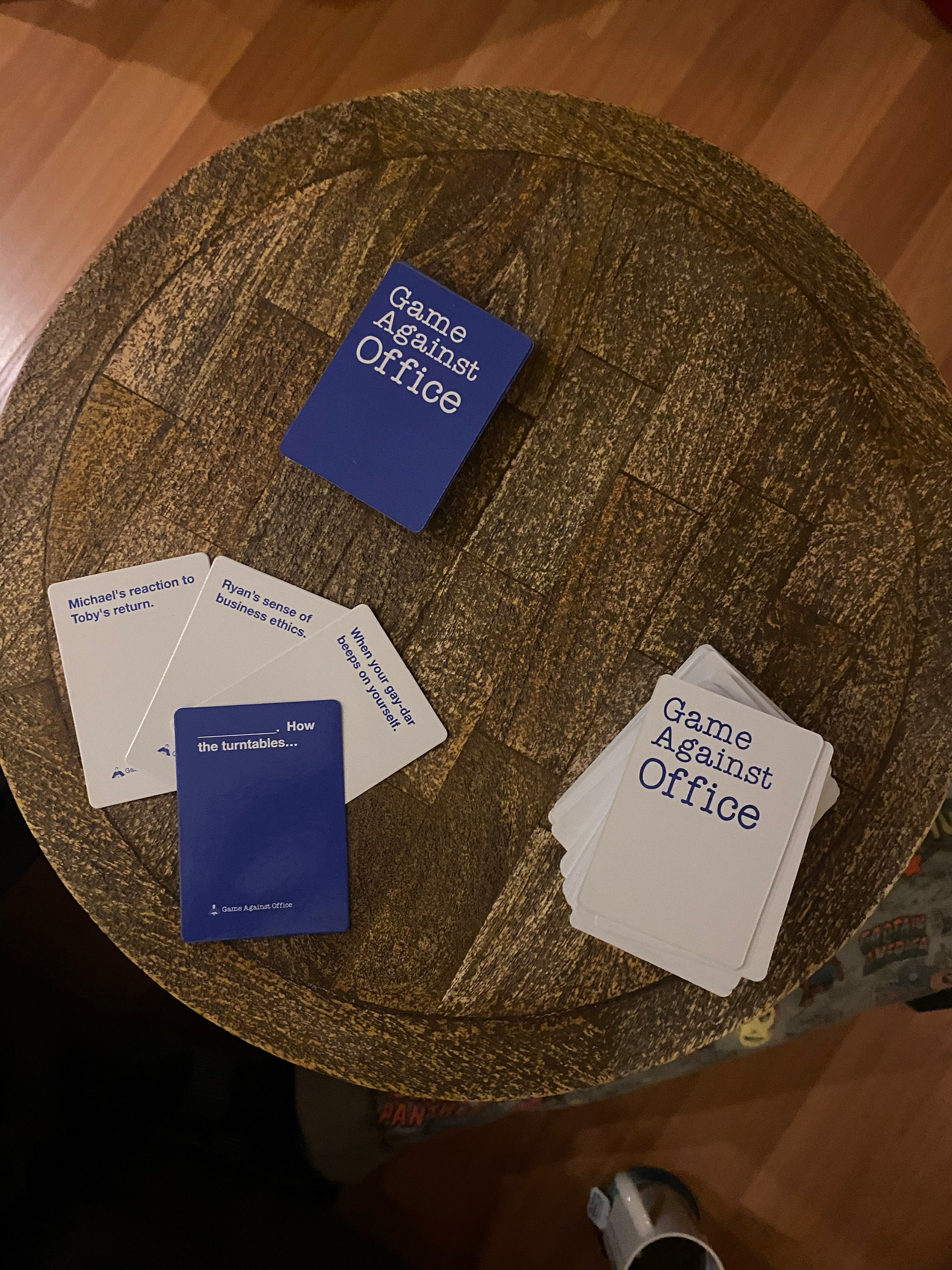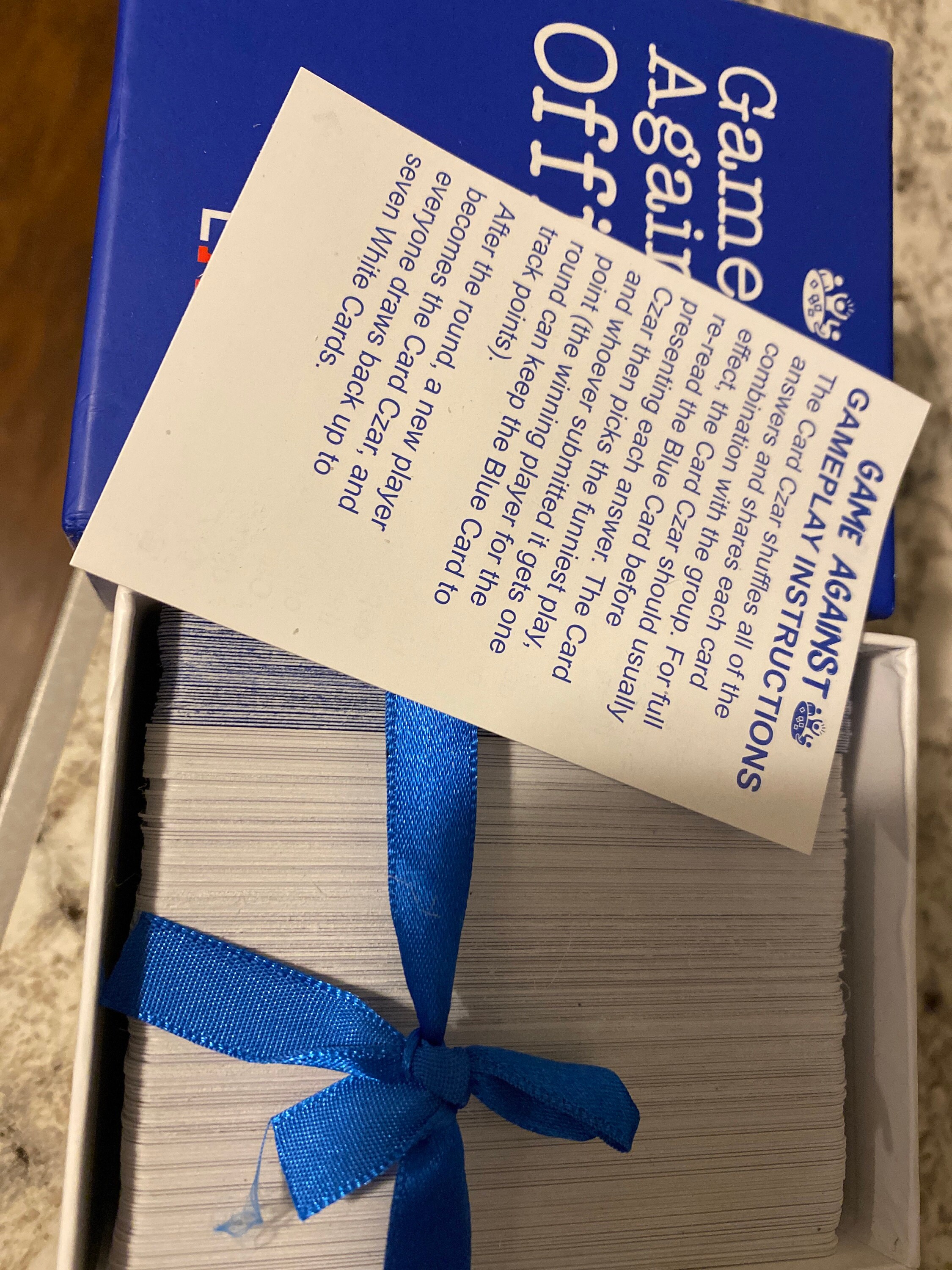What makes this game even more appealing is that, even with 99 “blue cards” (aka reminder cards) and 180 “white cards” (the card you use to answer the prompt) for “The Office “, a game to fill in the topic of Office.