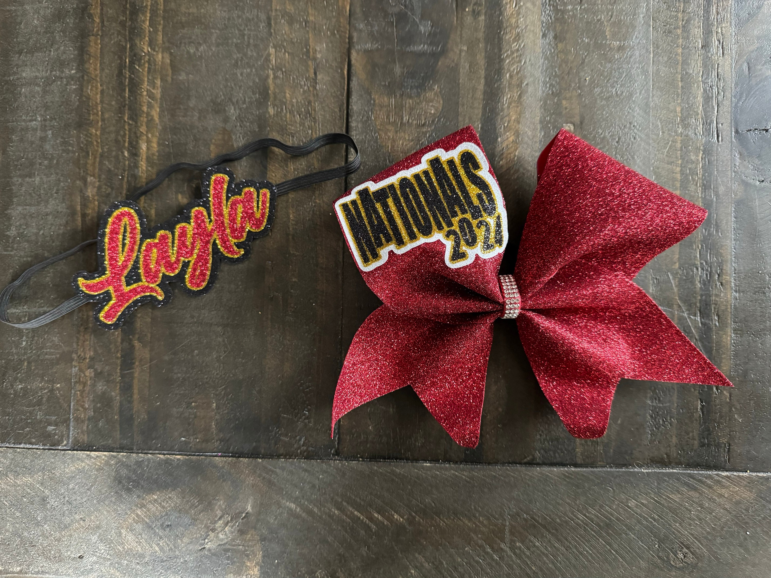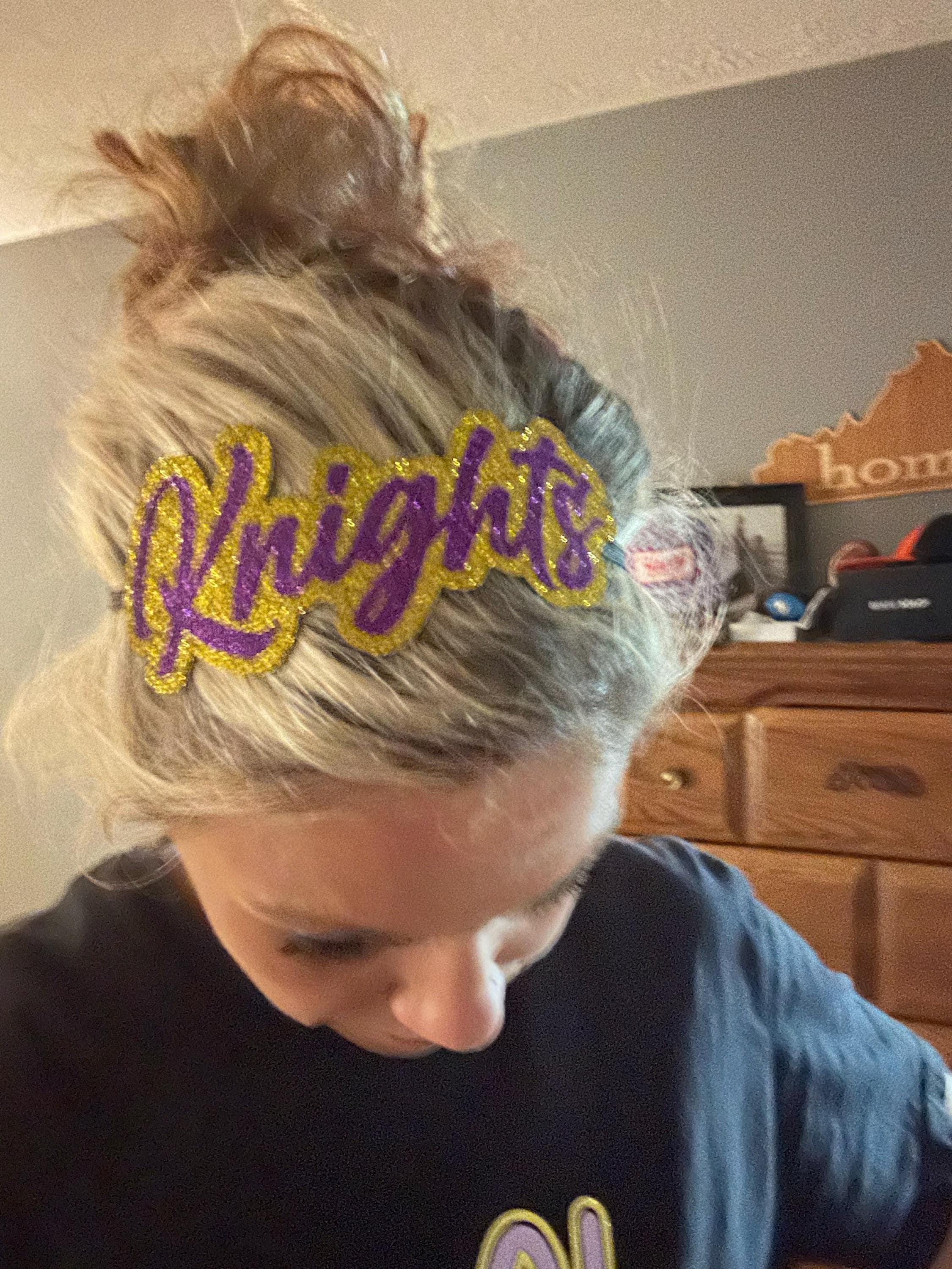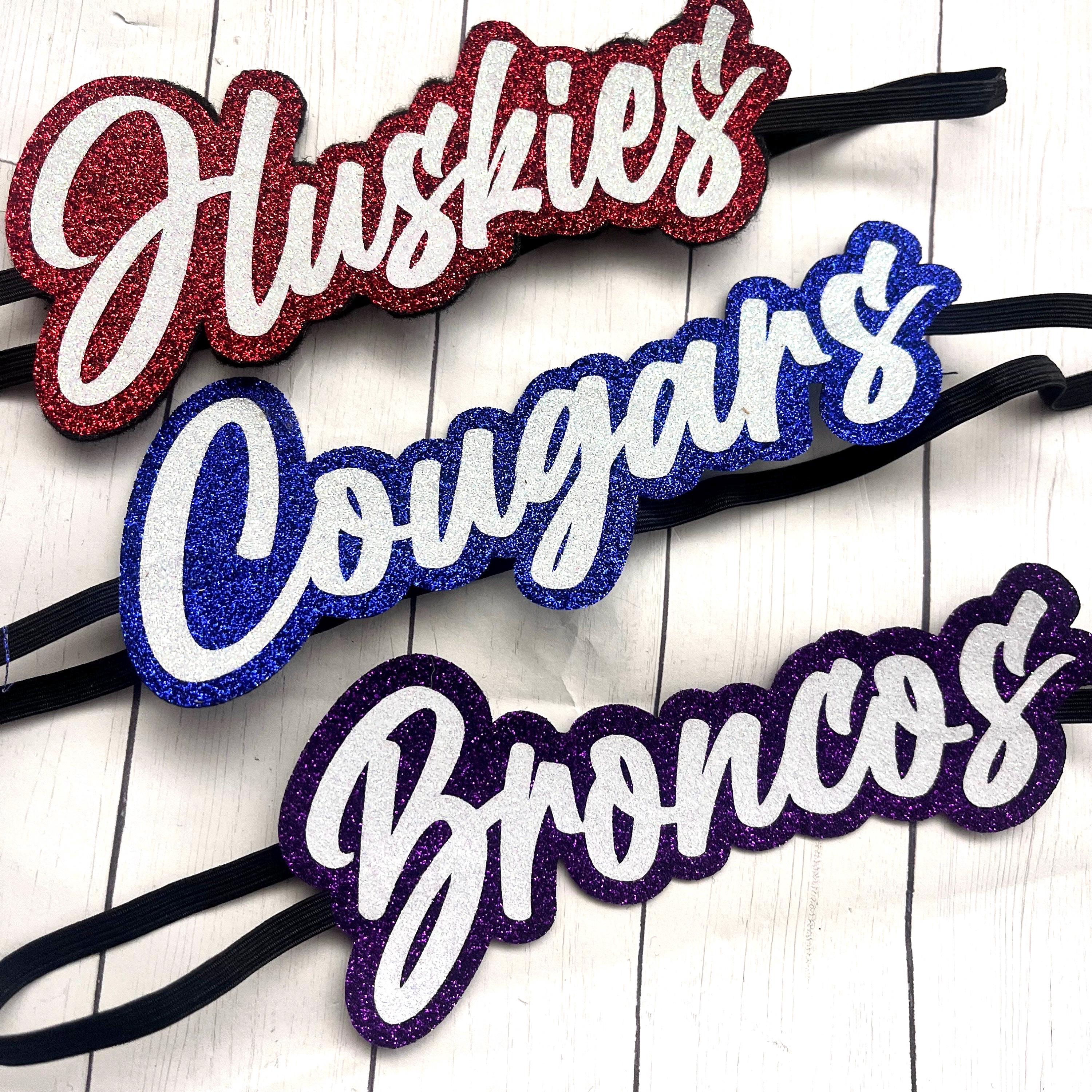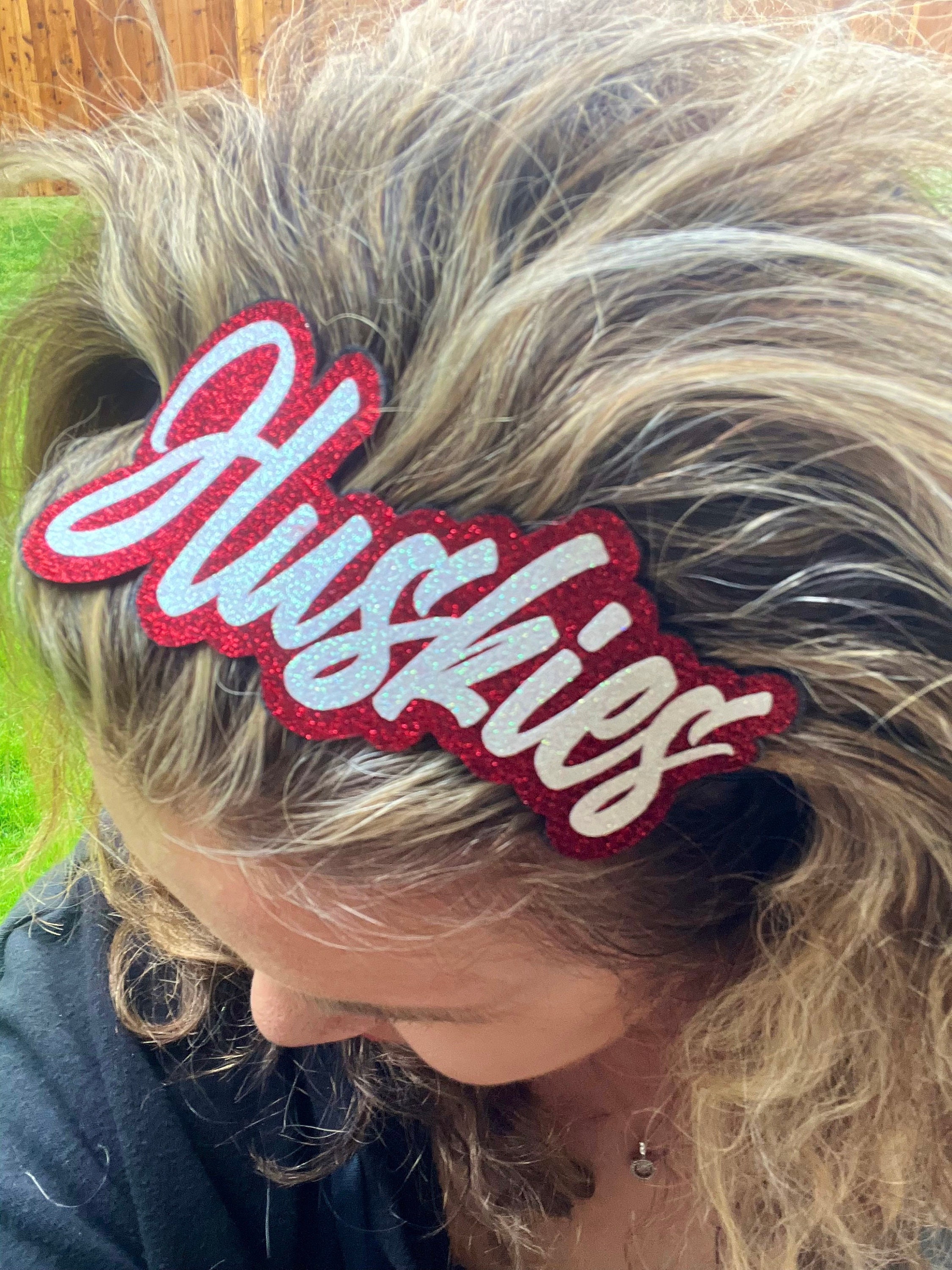 These custom glitter headbands are super cute and perfect for any age! These headbands are perfect for sports teams, school spirit days, game days, gyms, organizations, personal names, mascots, and more. The design can be worn in the middle of the head, on the side, or on the forehead for an adorable look. You can choose between a two-tone or three-tone design. If you choose a three-tone design, the letters will be outlined in white. This works best with darker color combinations and reds and blues. Add rhinestones to your design for even more sparkle. These are sure to be a hit and make a great gift for holidays, birthdays, teacher gifts, or team gifts.