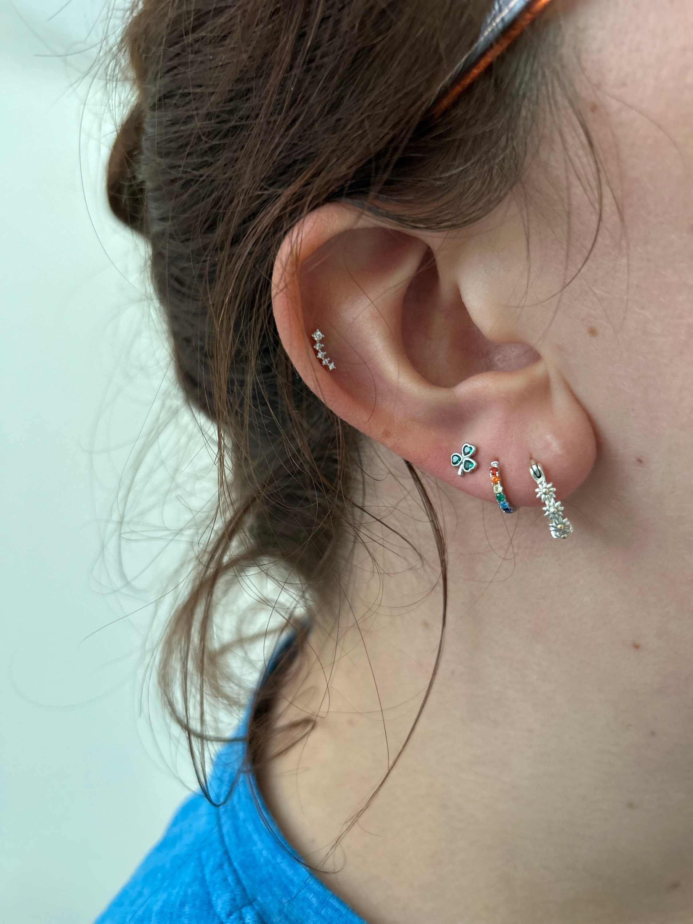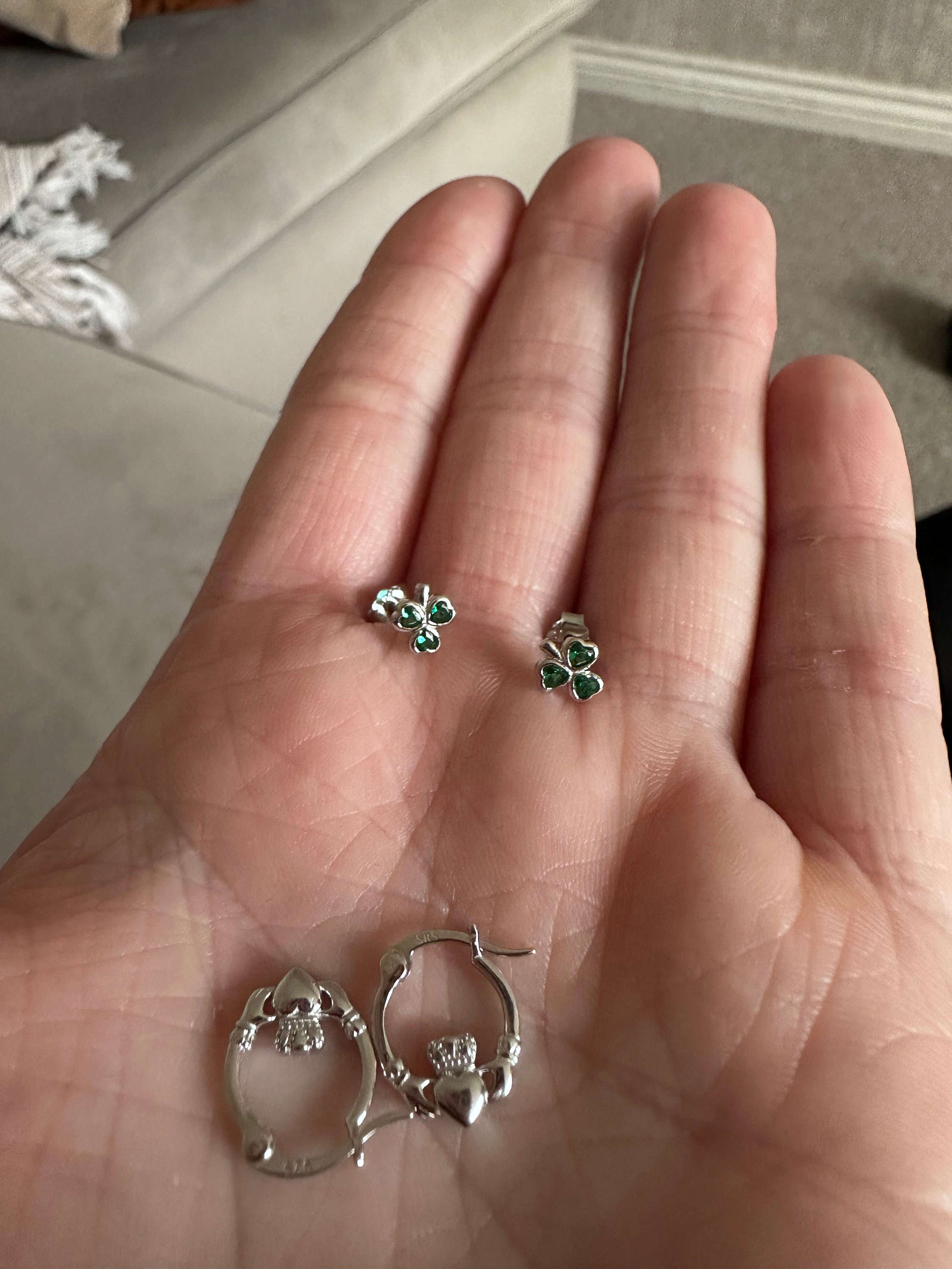 Sterling Silver CZ Clover Small Stud Earrings, Clover Earrings, Irish Earrings, Silver or Gold Flower Earrings