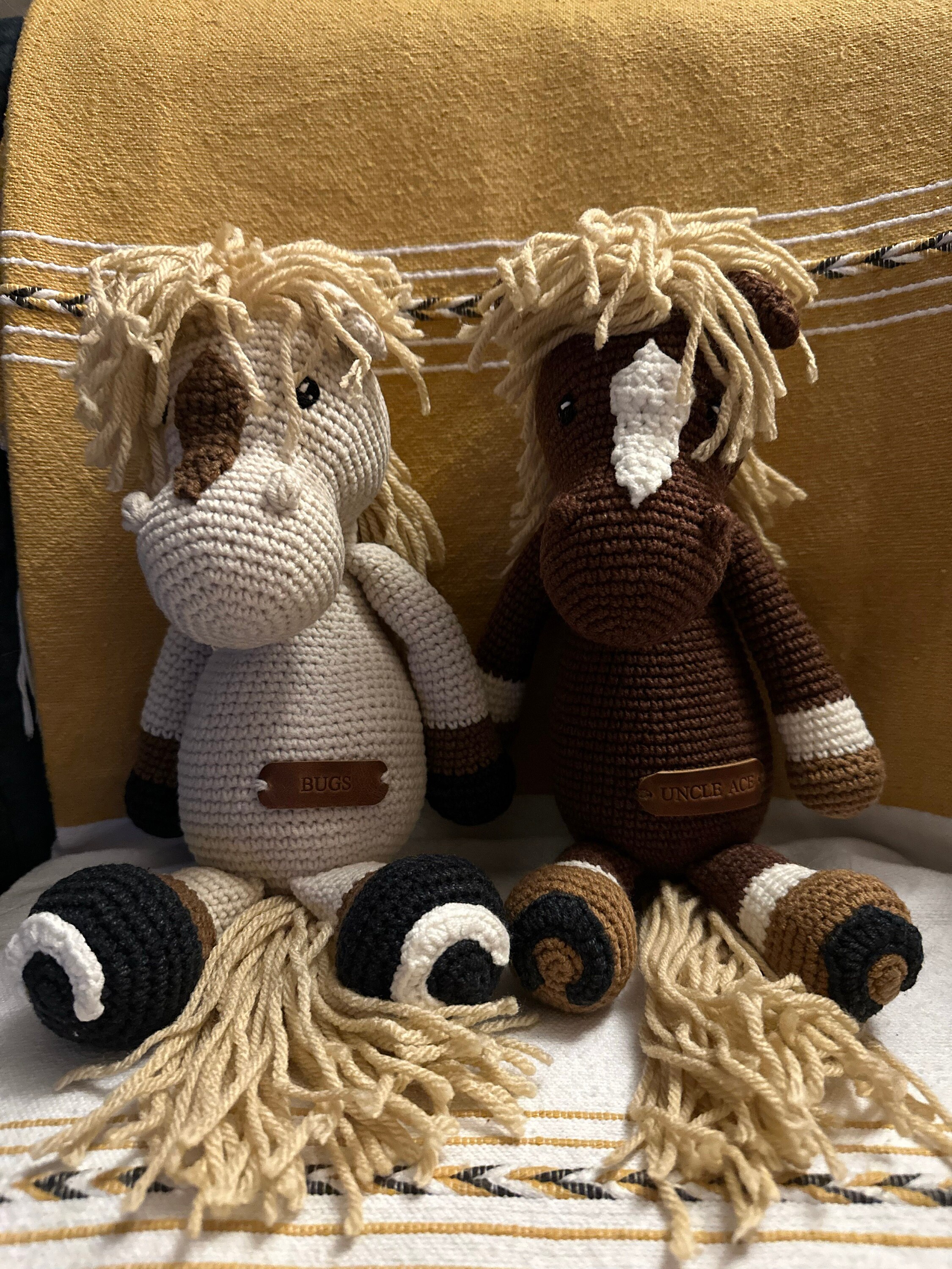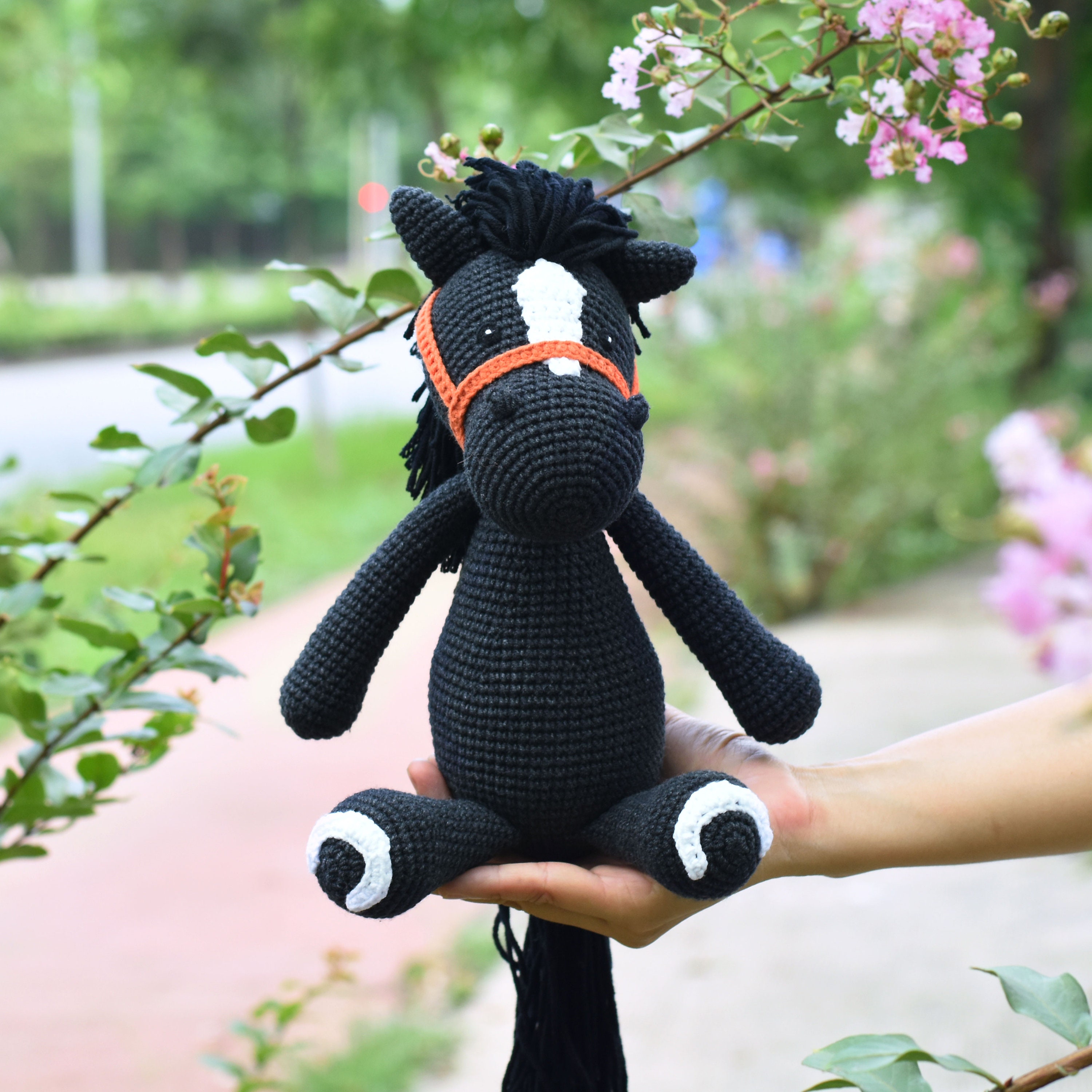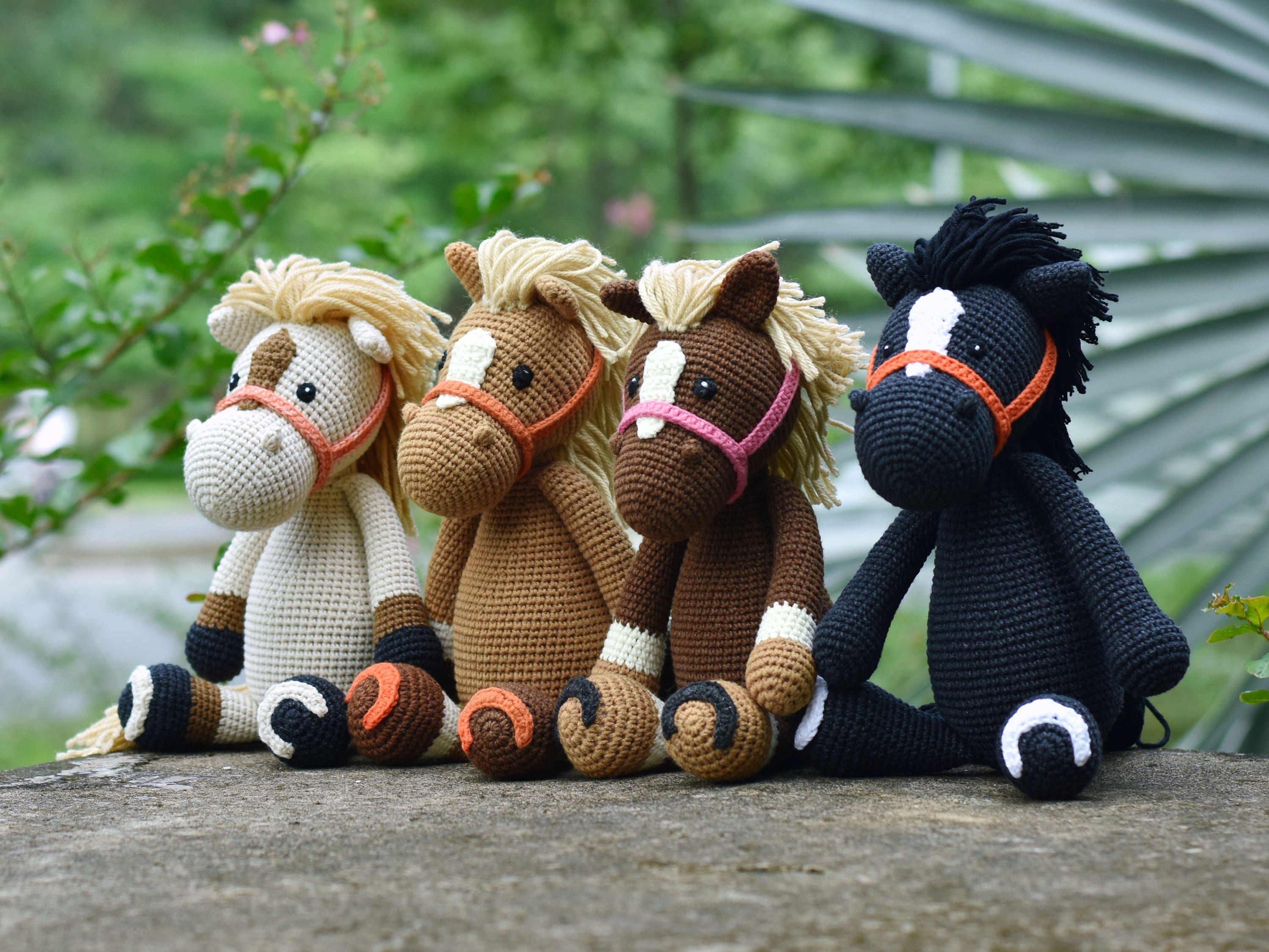 We have 4 horse colors to choose from: Off-White, Black, Brown, Dark Brown
