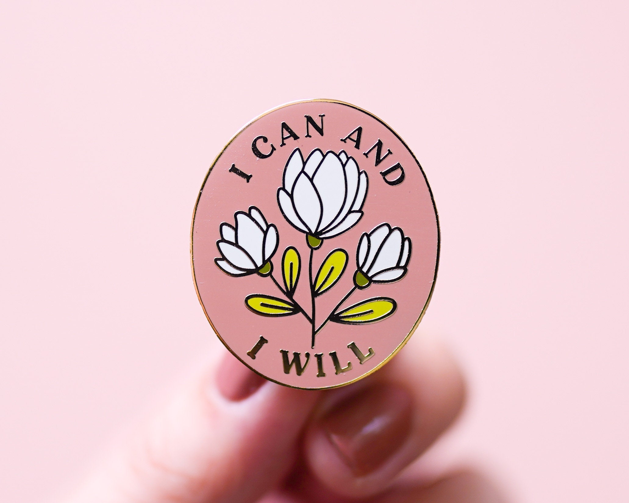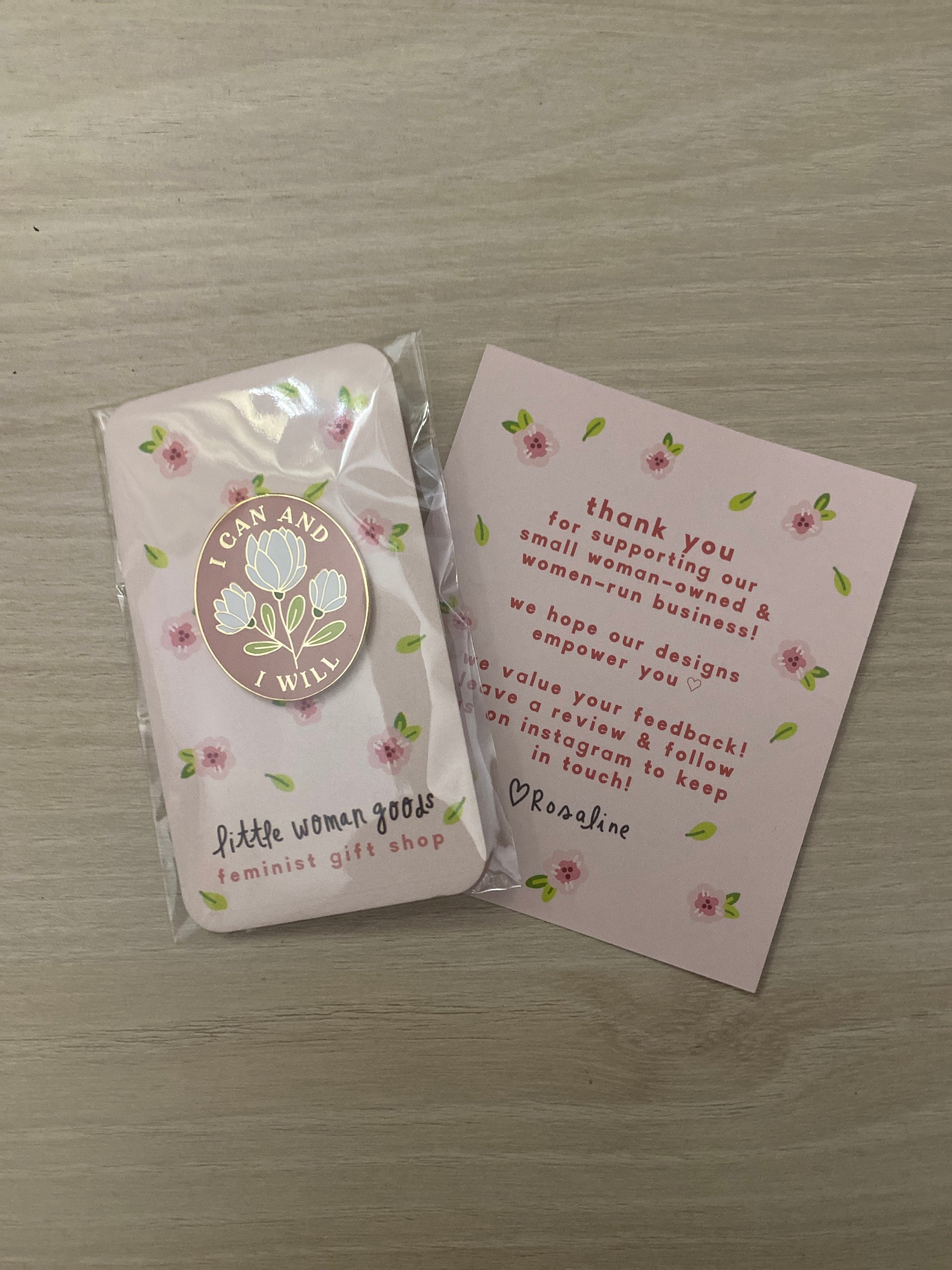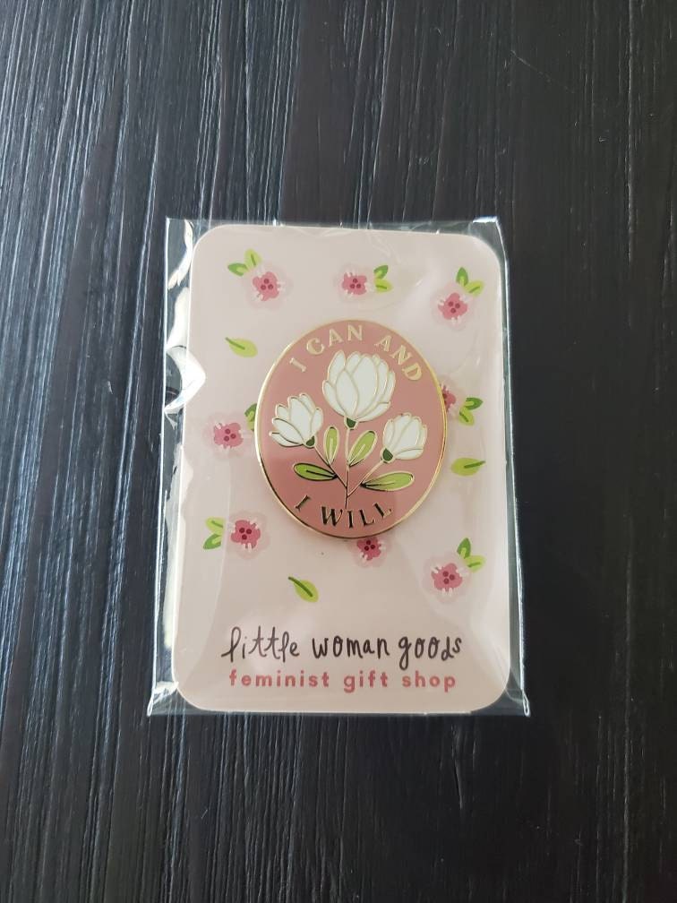 I Can and I Will- Feminist Enamel Pin Motivational Inspirational Quote Lapel Pin Pink Floral Flowers Girl Power