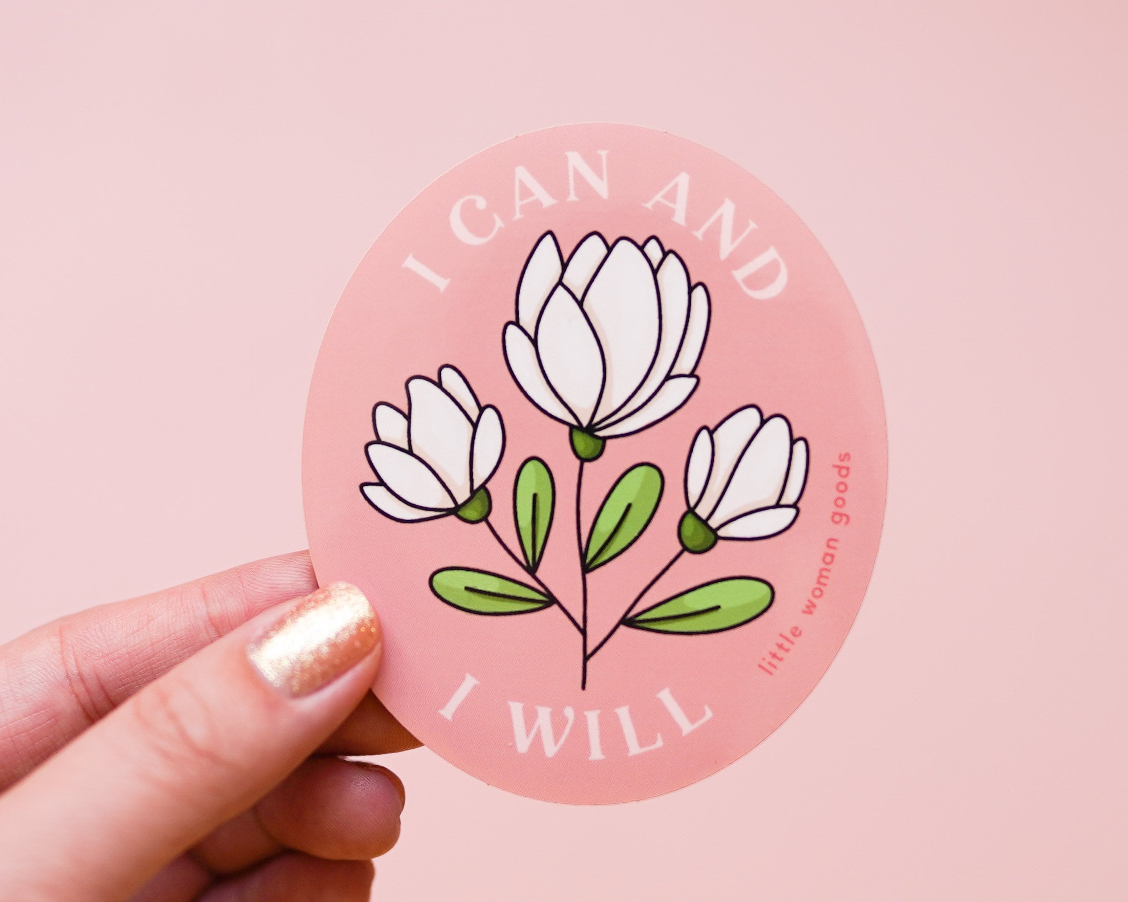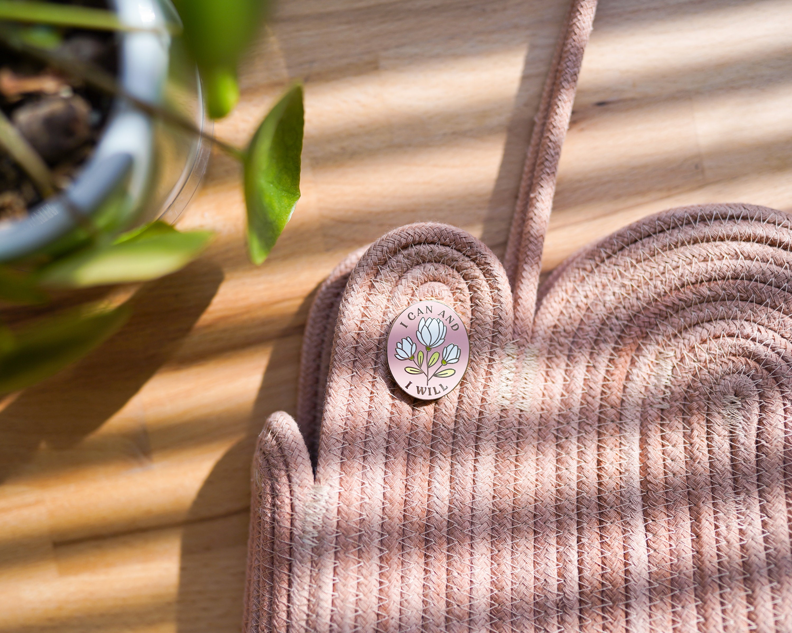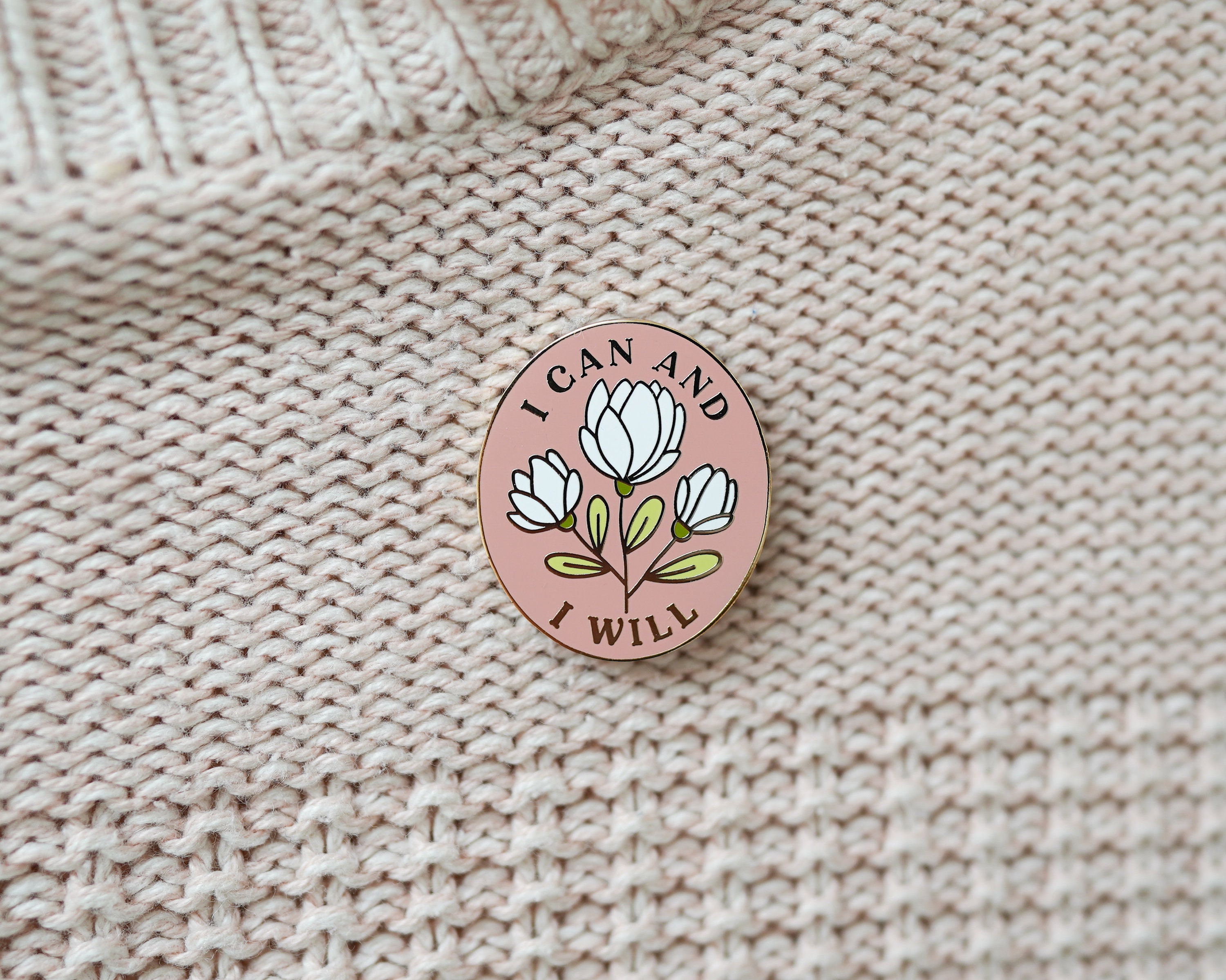 I Can and I Will- Feminist Enamel Pin Motivational Inspirational Quote Lapel Pin Pink Floral Flowers Girl Power