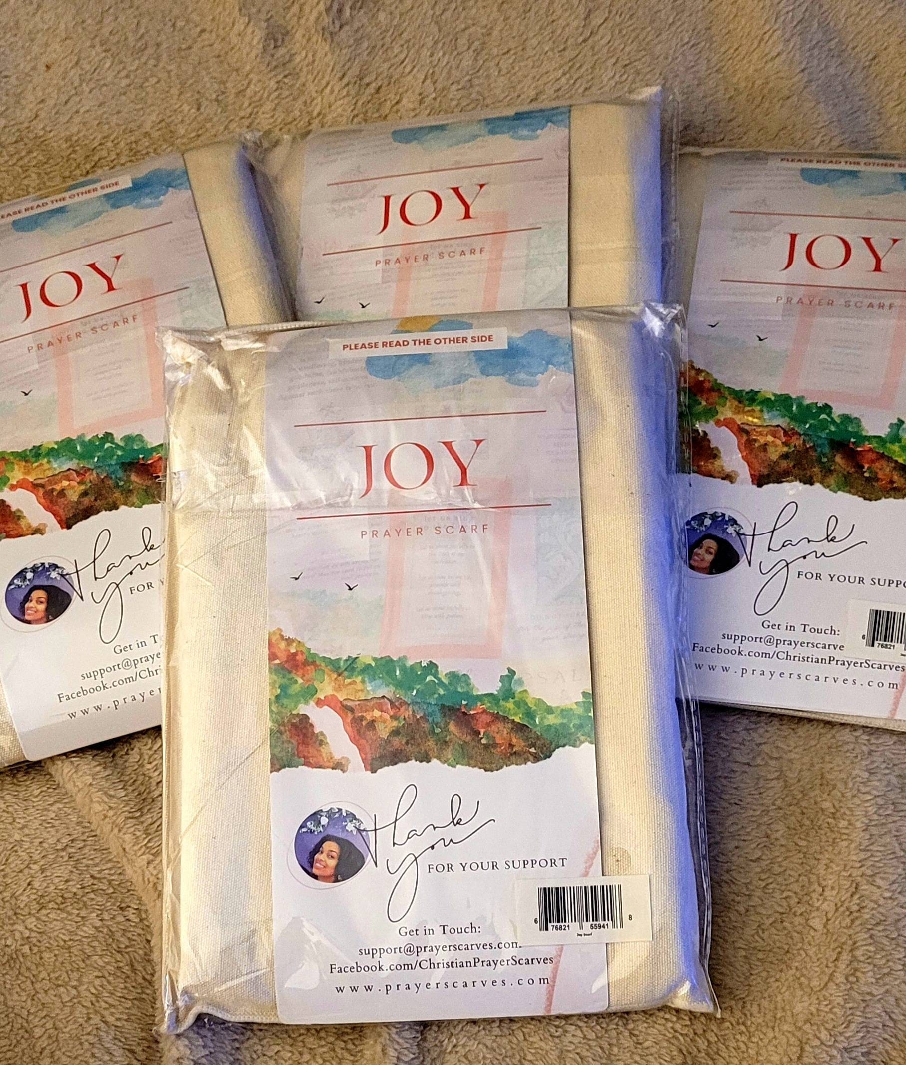 Celebrate the divine gift of joy with our "Joy" prayer scarf, designed to lift hearts in times of trial. This brightly colored scarf is a testimony to the joyful heart of faith, a companion to joyful worship, and a meaningful symbol for those who find happiness in their love for Jesus. It is designed for anyone seeking to live joyfully in God's love, enrich their worship experience, or give a gift that truly resonates with Christian joy.