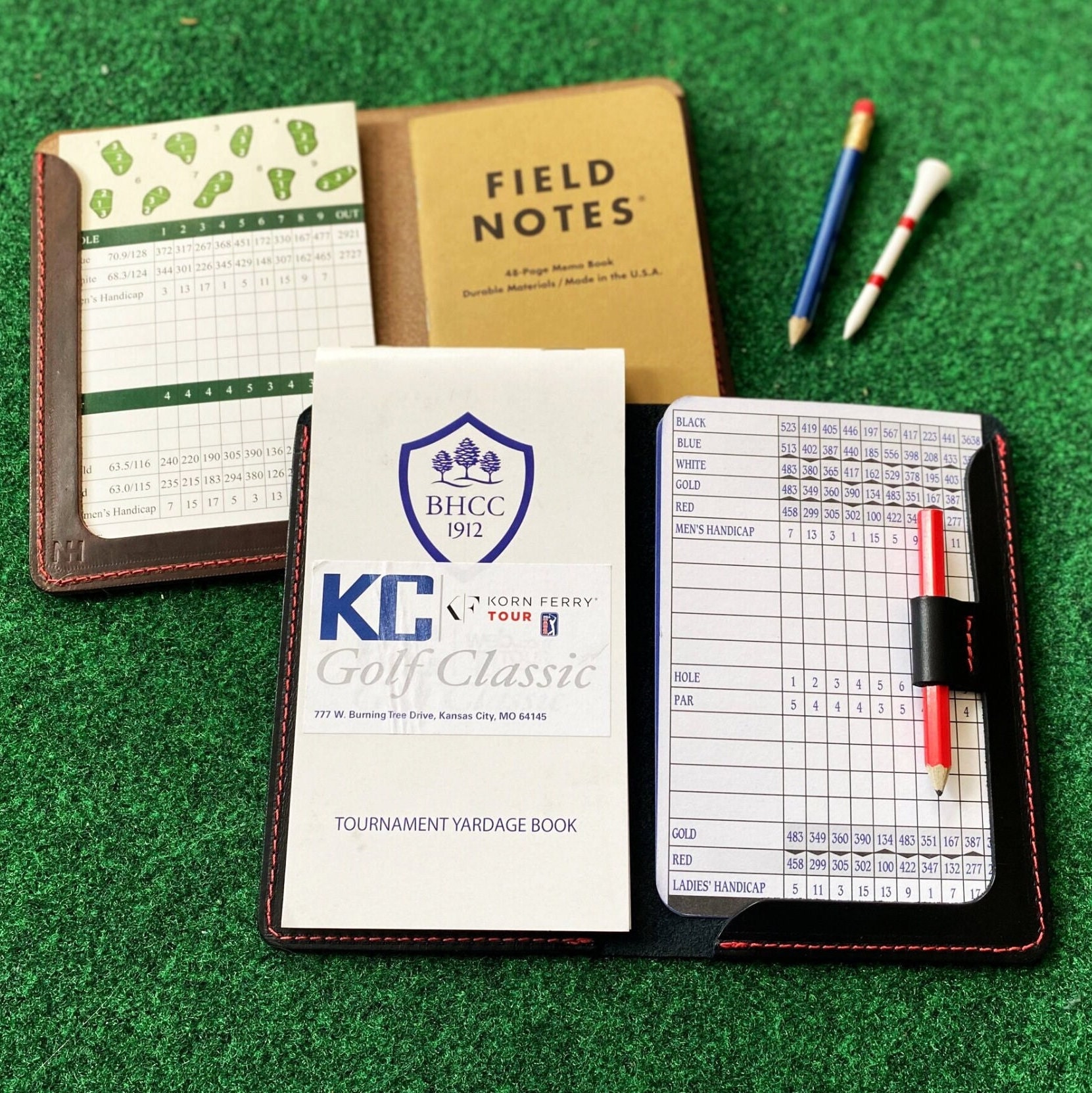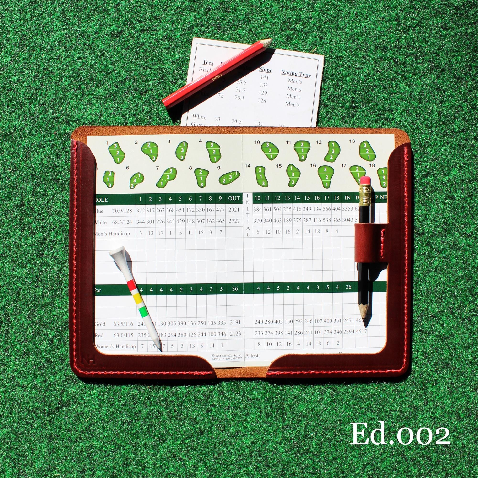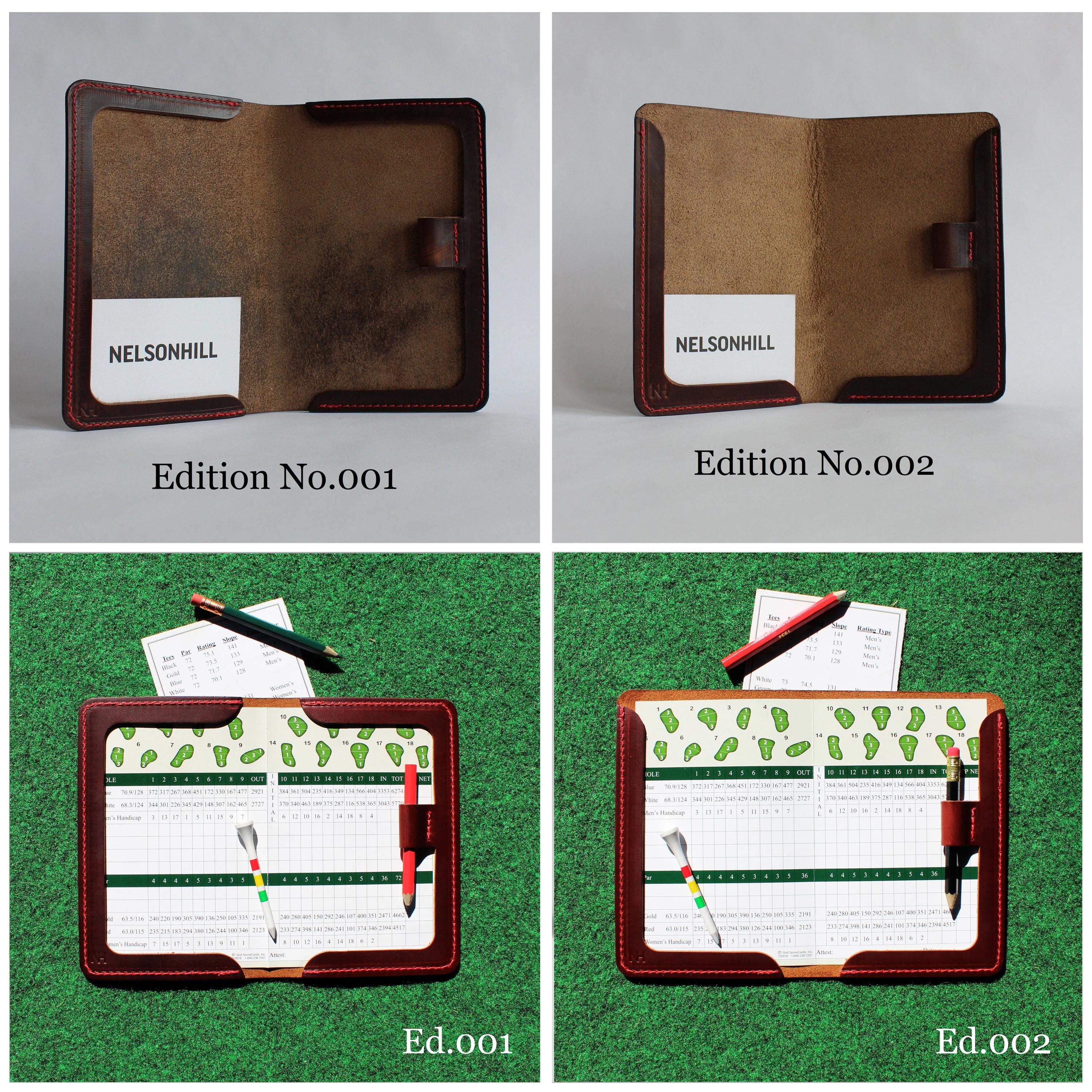 Version 001: Provides a full frame edge for your scorecards and the flexibility to add a pocket notebook for extra note-taking space when documenting your rounds.