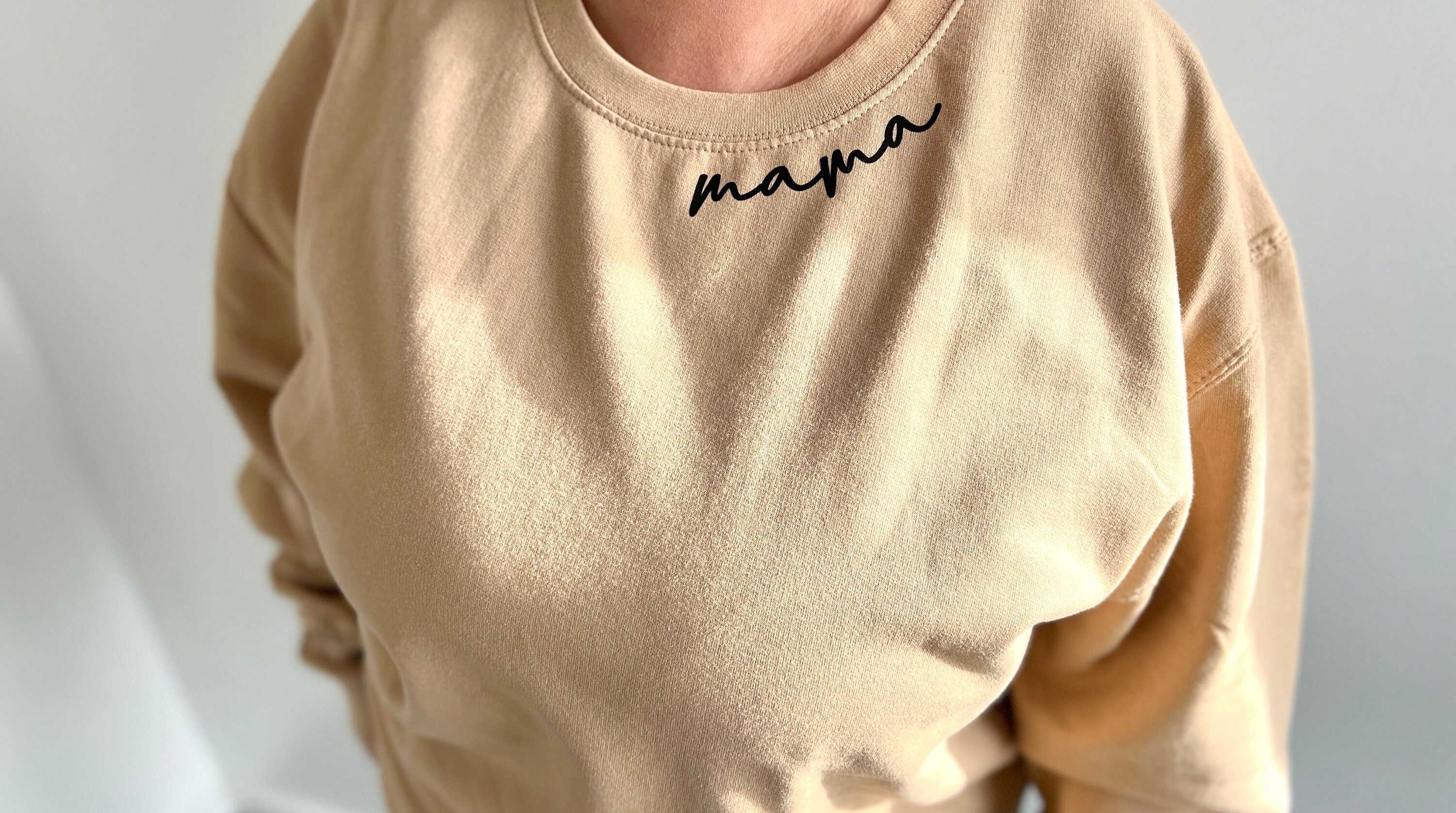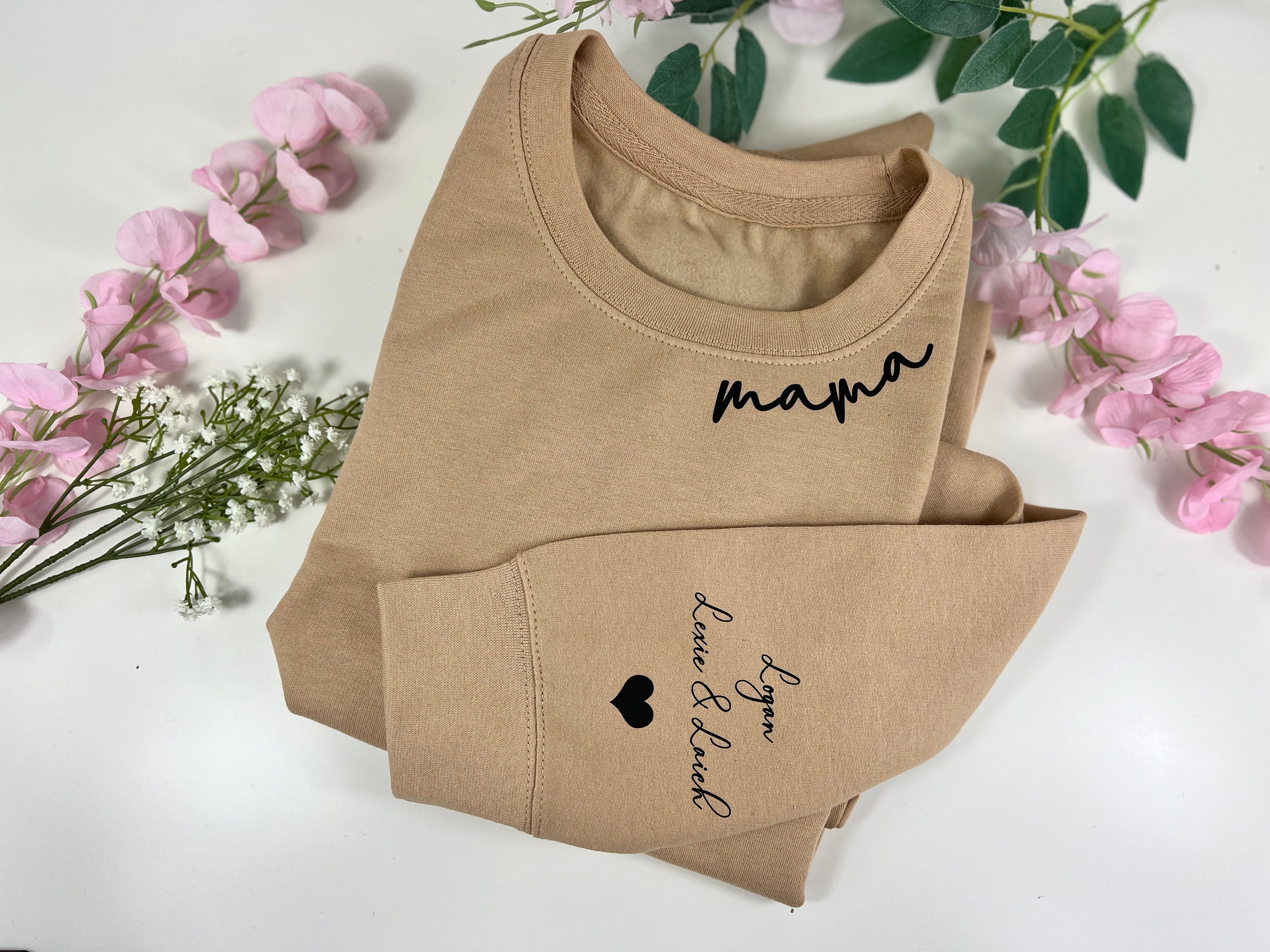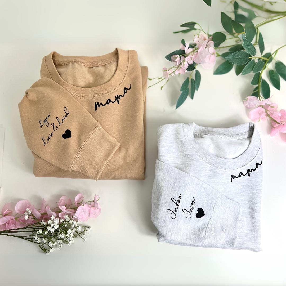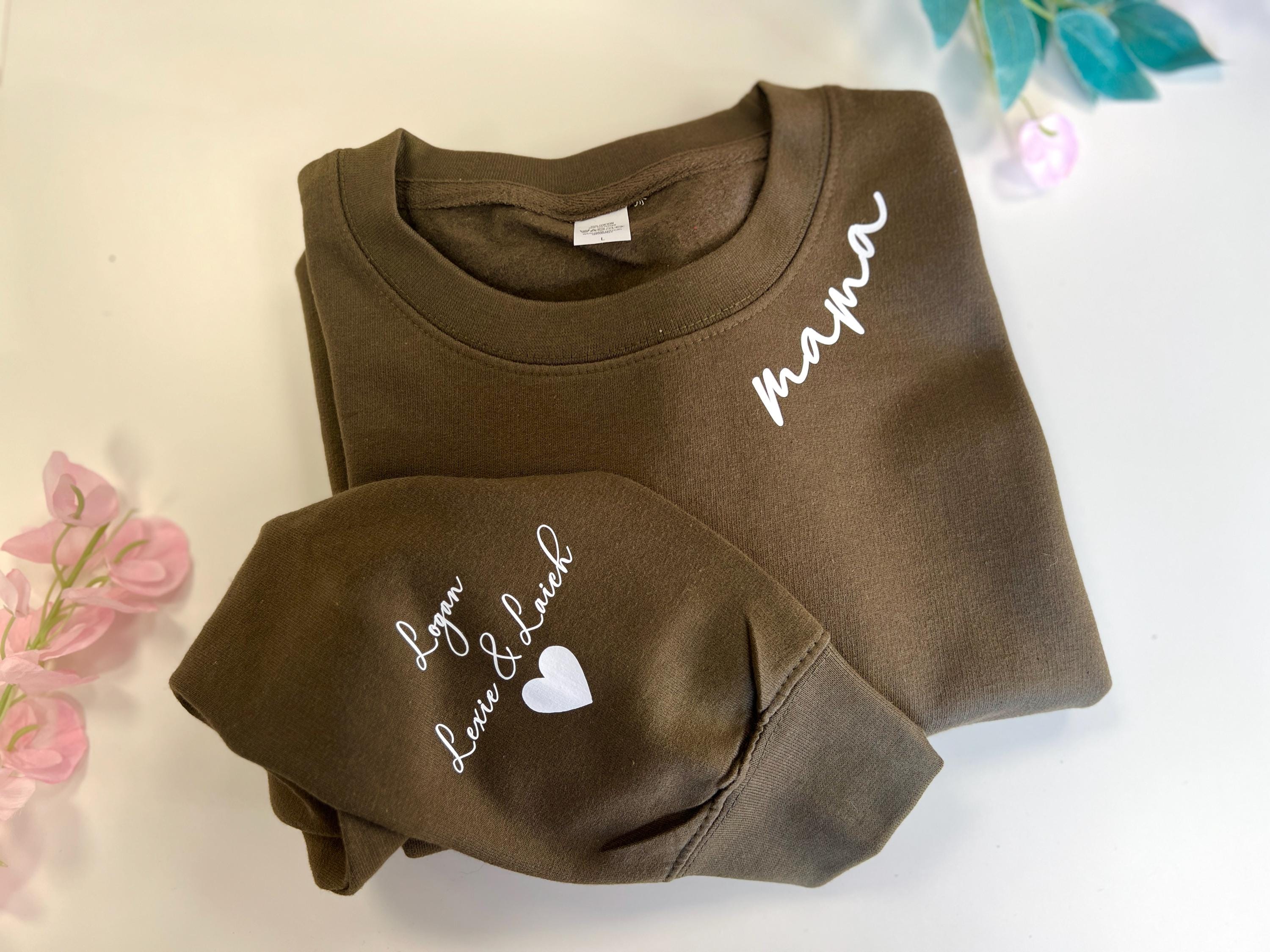 This is the perfect Mother's Day gift for her! A sweater made for Mama. The perfect gift for Mother's Day, or for a mother's birthday, valentines day or just a treat! With Mama design on the neckline with the choice to add each child's name on the sleeve this is the perfect personalised gift for her. Personalize the colour of the sweatshirt to make the ultimate unique gift. This is also a thoughtful Valentine's Day gift for her, and a lovely choice for a First Mother's Day gift.