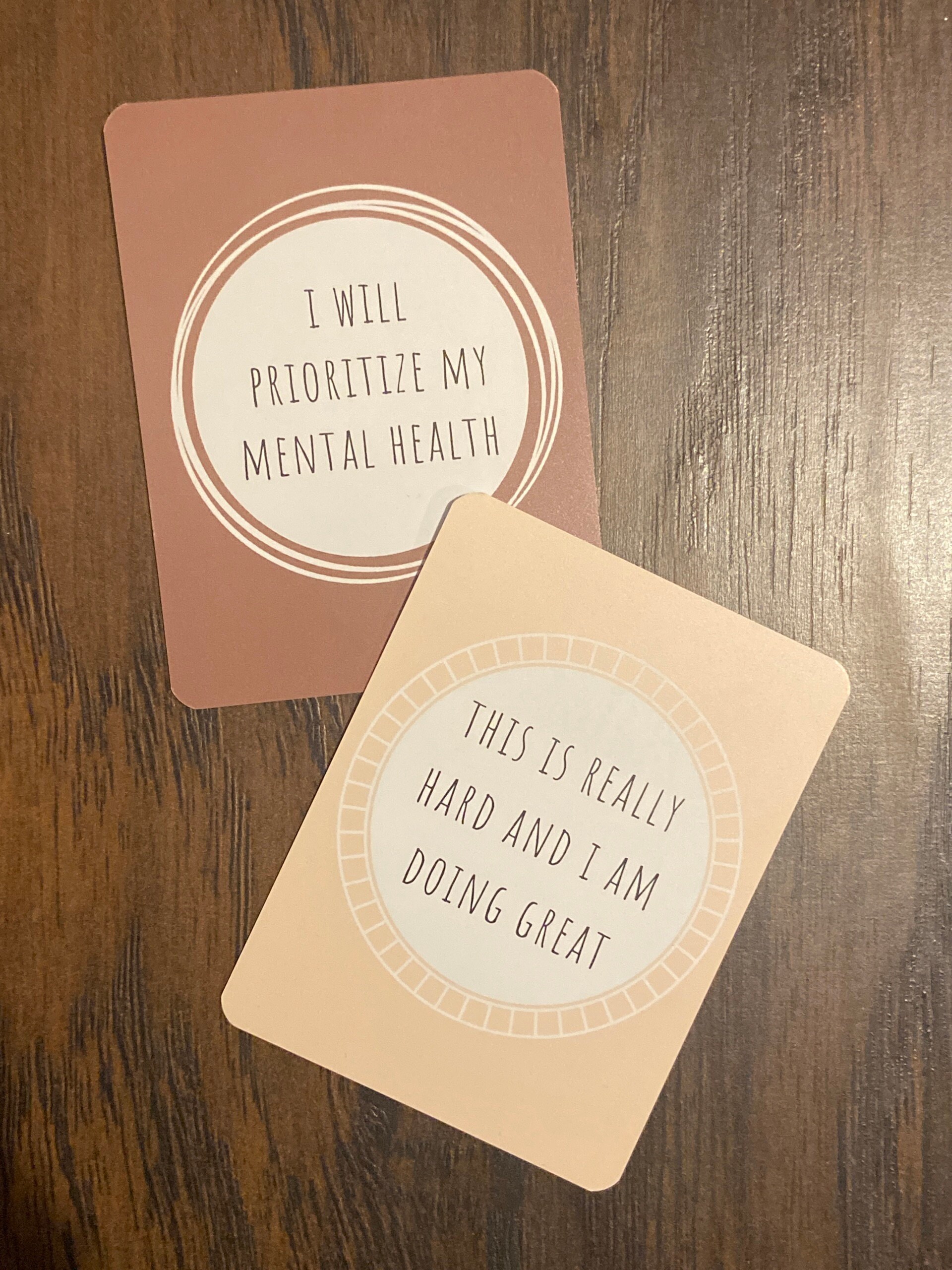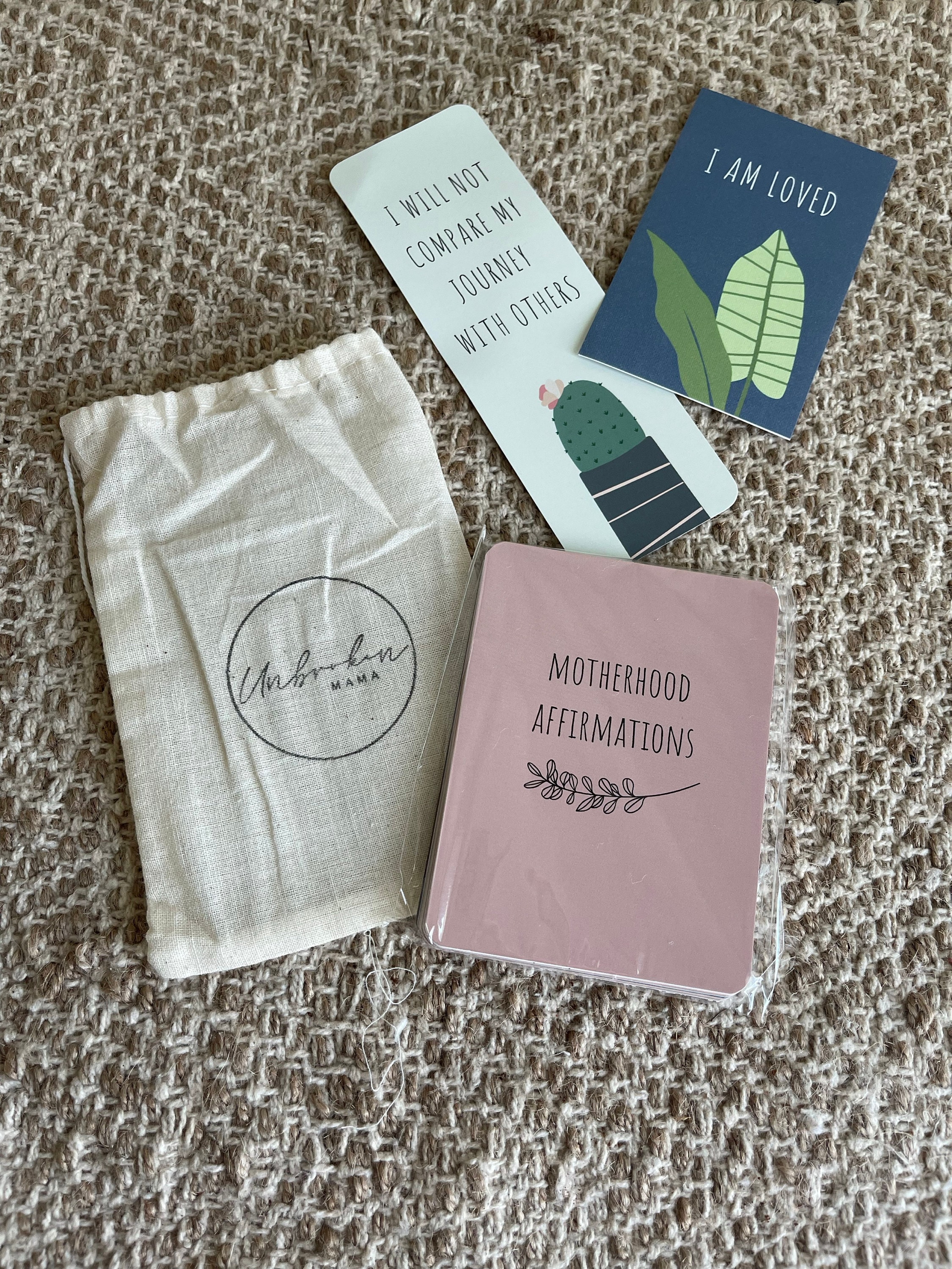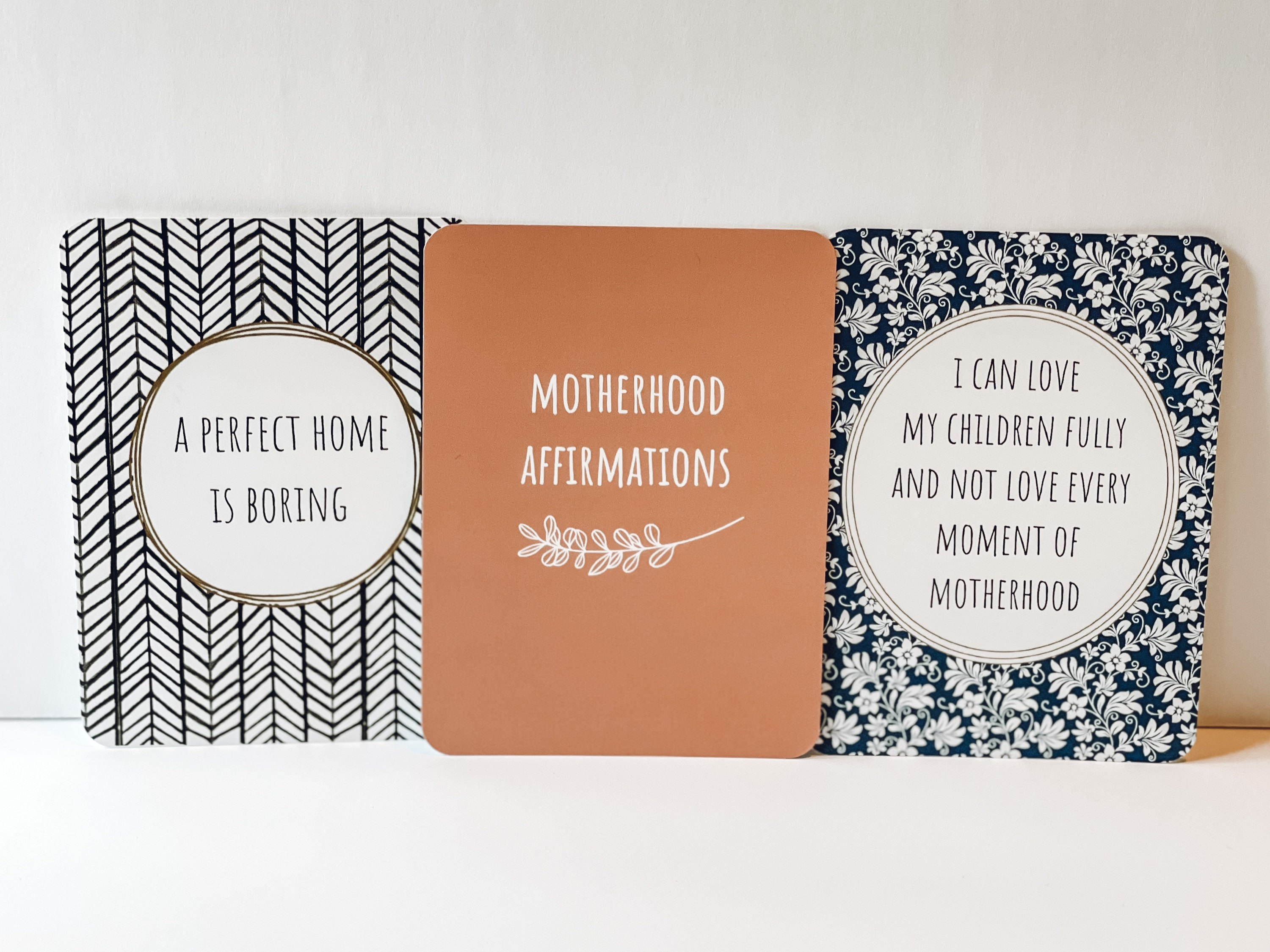 Hang up these motherhood affirmations. Stand a few up around your space (see my “card stands” section for how!) and practice these affirmations!