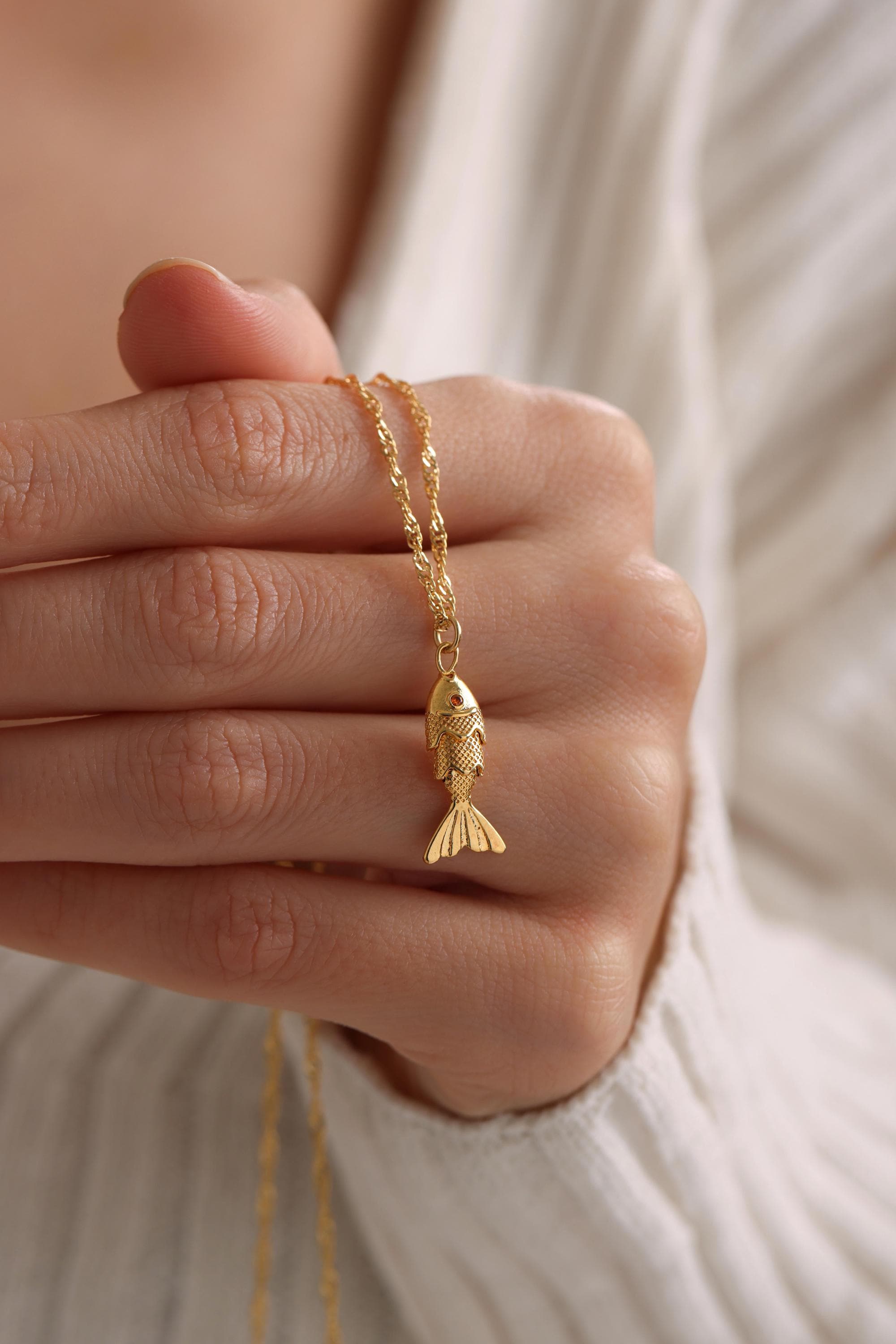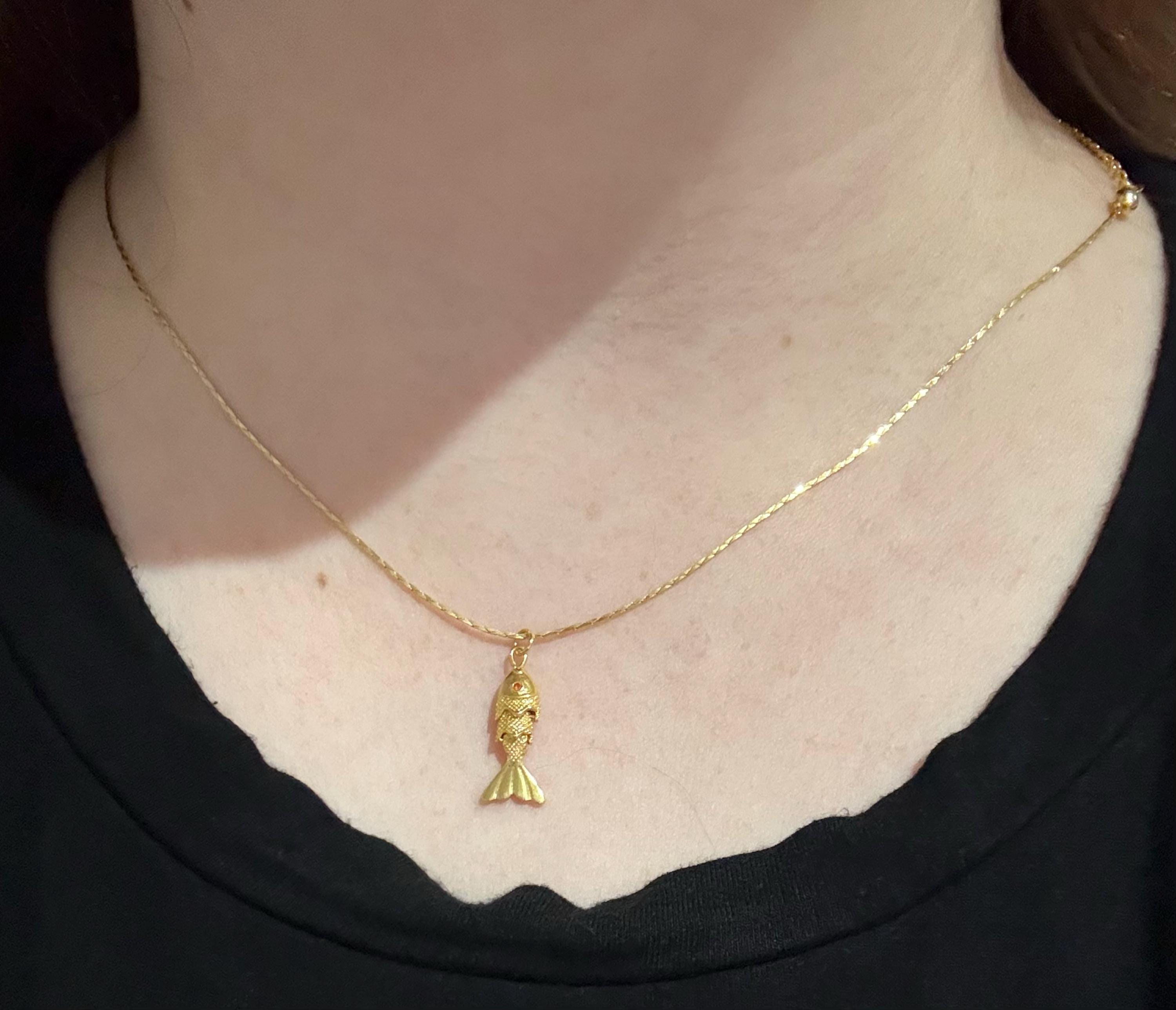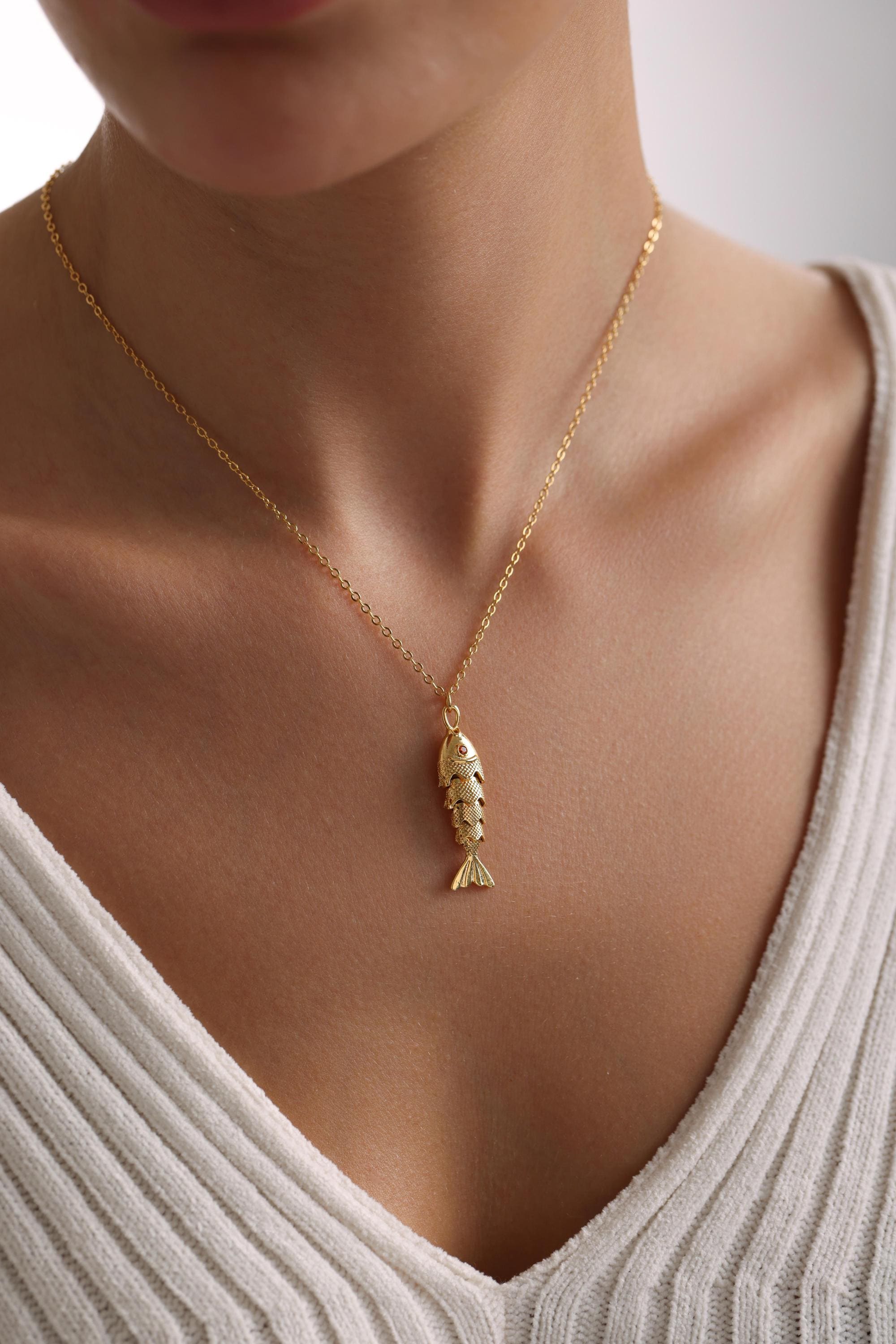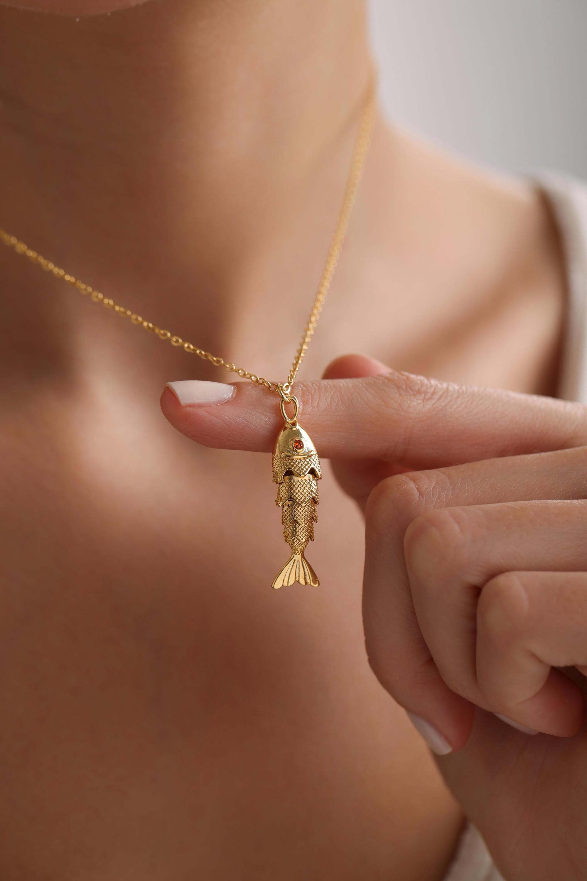 Articulated fish necklace is perfect as a special gift for her. This pave 3D fish necklace is a great gift for Mother's Day, Birthday, Anniversary, Valentine's Day, Christmas. Our high-quality product is carefully prepared for you. The gold plating on it is much thicker than other plating. Therefore, it is a great gift that can be used for a long time. Our product will not tarnish and is hypoallergenic.