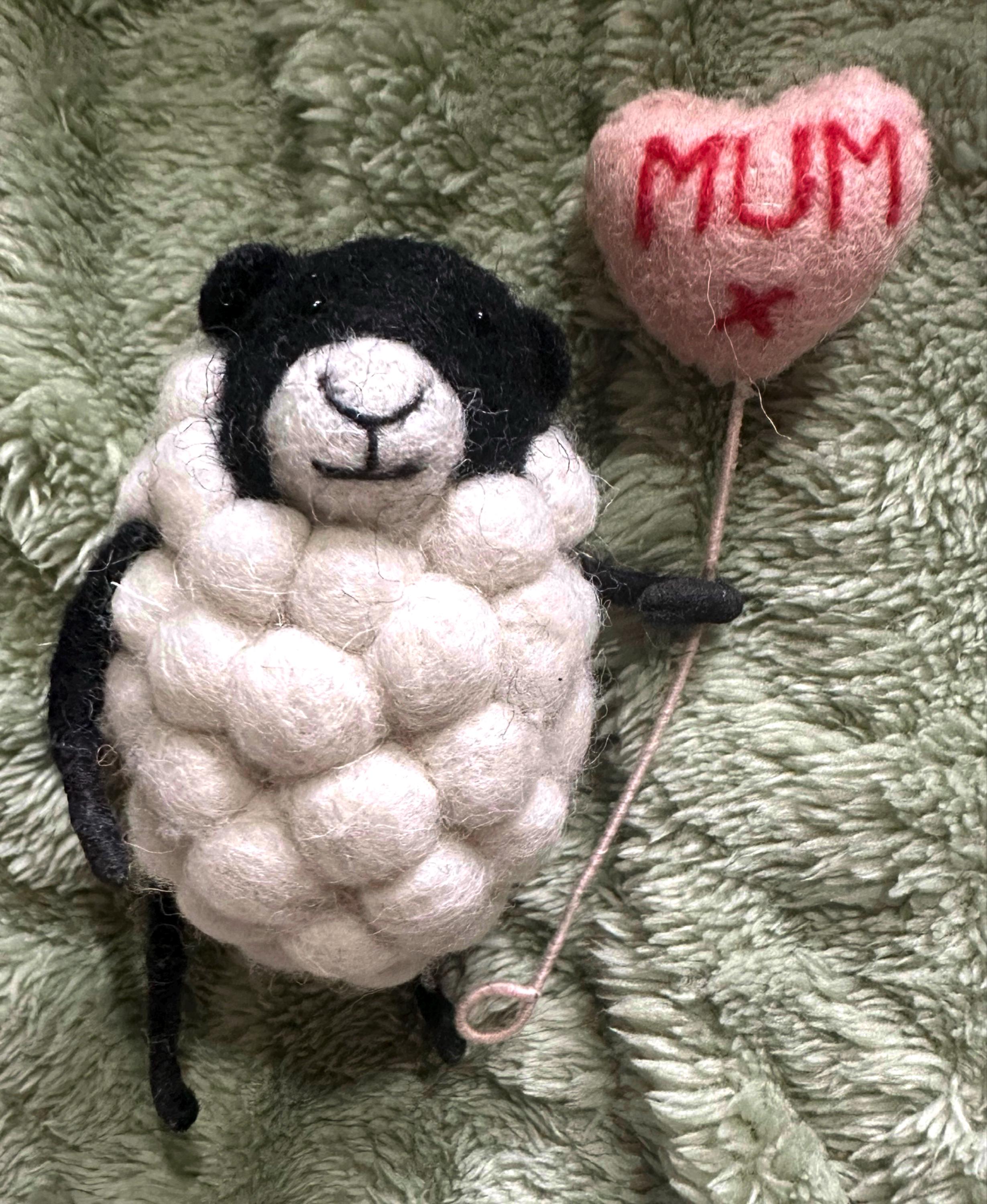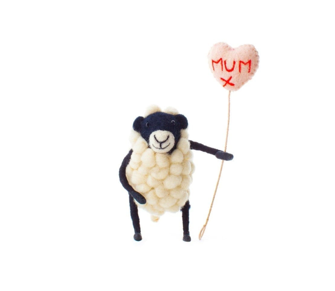 Adorable little sheep holding a mum adorned heart balloon with kisses! There's no better way to make your mum feel loved this Mother's Day!