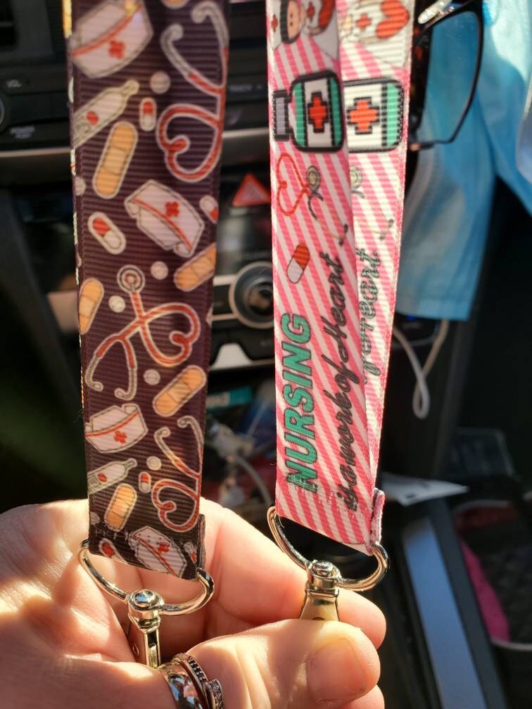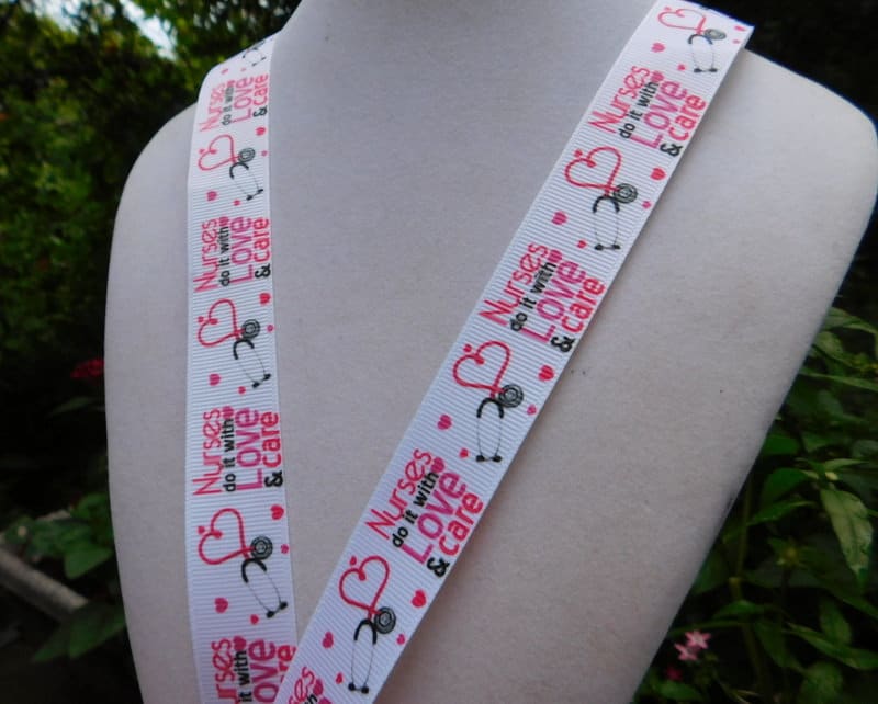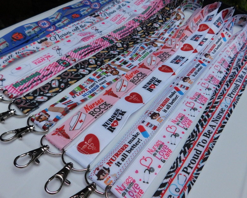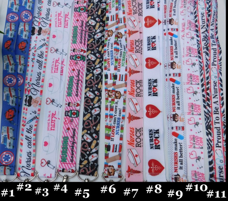 Your choice of 11 styles. Last picture shows choices #1 Ambulance- Blue - 7/8" #2 Nurses call the Shots - White - 7/8" #3 White - Proud to be a Nurse - Hats Stethoscope - 7/8" #4 Nursing Work of Heart - Pink Stripes - 7/8" #5 Nurse Hats Equip - Black - 7/8" #6 If Love Can't Cure it, Nurses Can - 7/8" #7 Nurses Rock Pink Caduceus (Medical Symbol) 7/8" #8 Nurses Rock - White - Hearts - 1" #9 Nurses Make it all Better - 7/8" #10 Nurses Do it with Love & Care - White - 7/8" #11 Proud to be a Nurse - Black Zebra - 7/8"