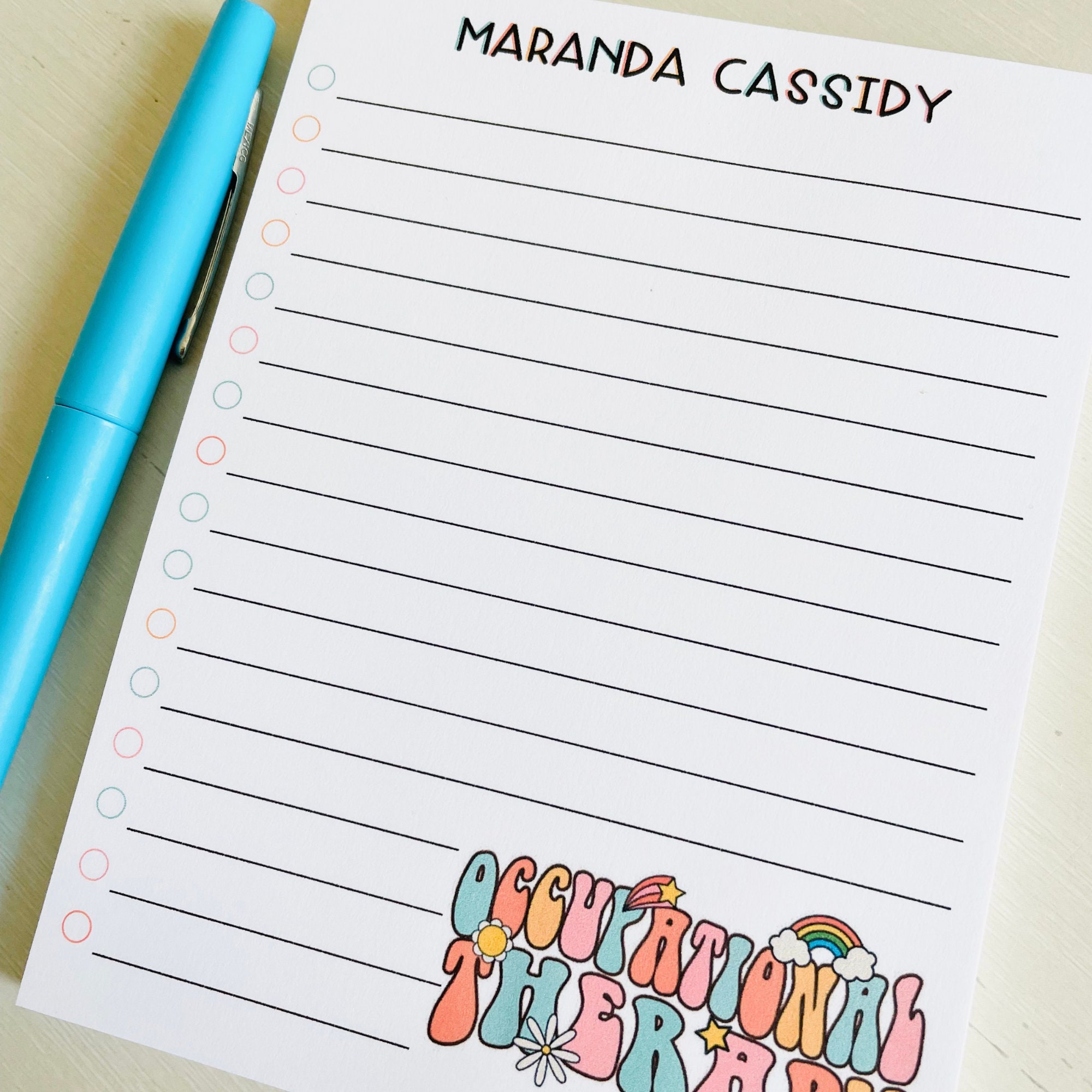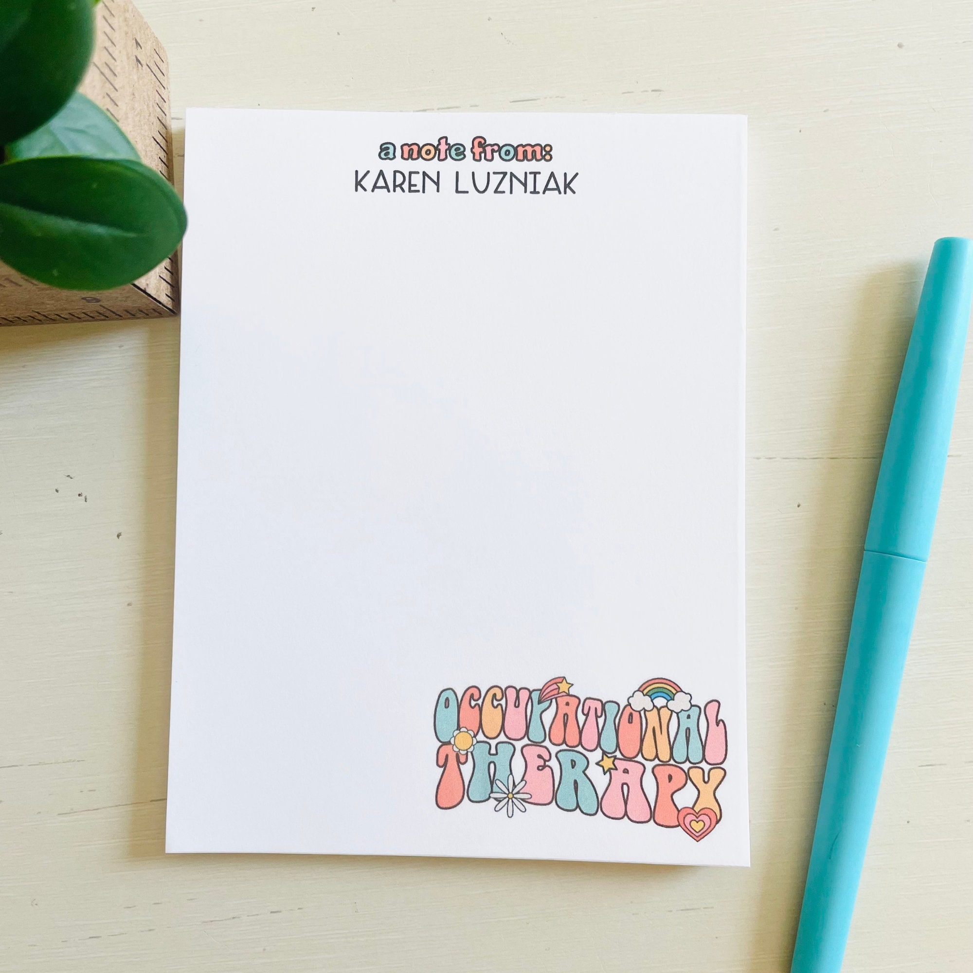 Celebrate the dedication and hard work of your favorite occupational therapist with our personalized notepad. This custom notepad is a thoughtful and practical gift, perfect for therapist appreciation, special occasions, or everyday notes.