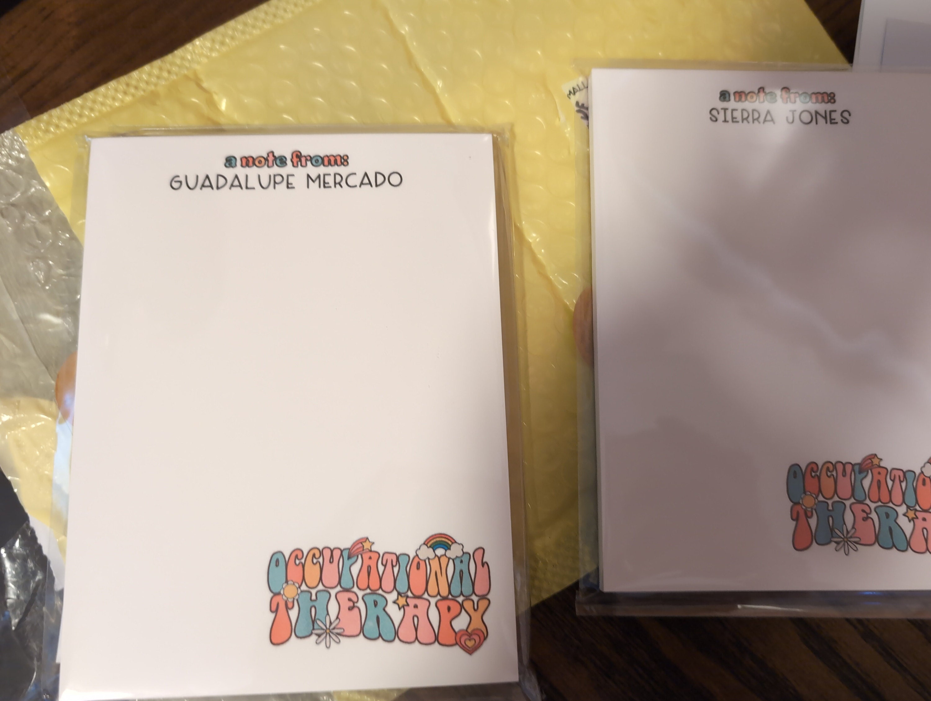Each notepad is customized with the recipient's name, adding a personal and unique touch.