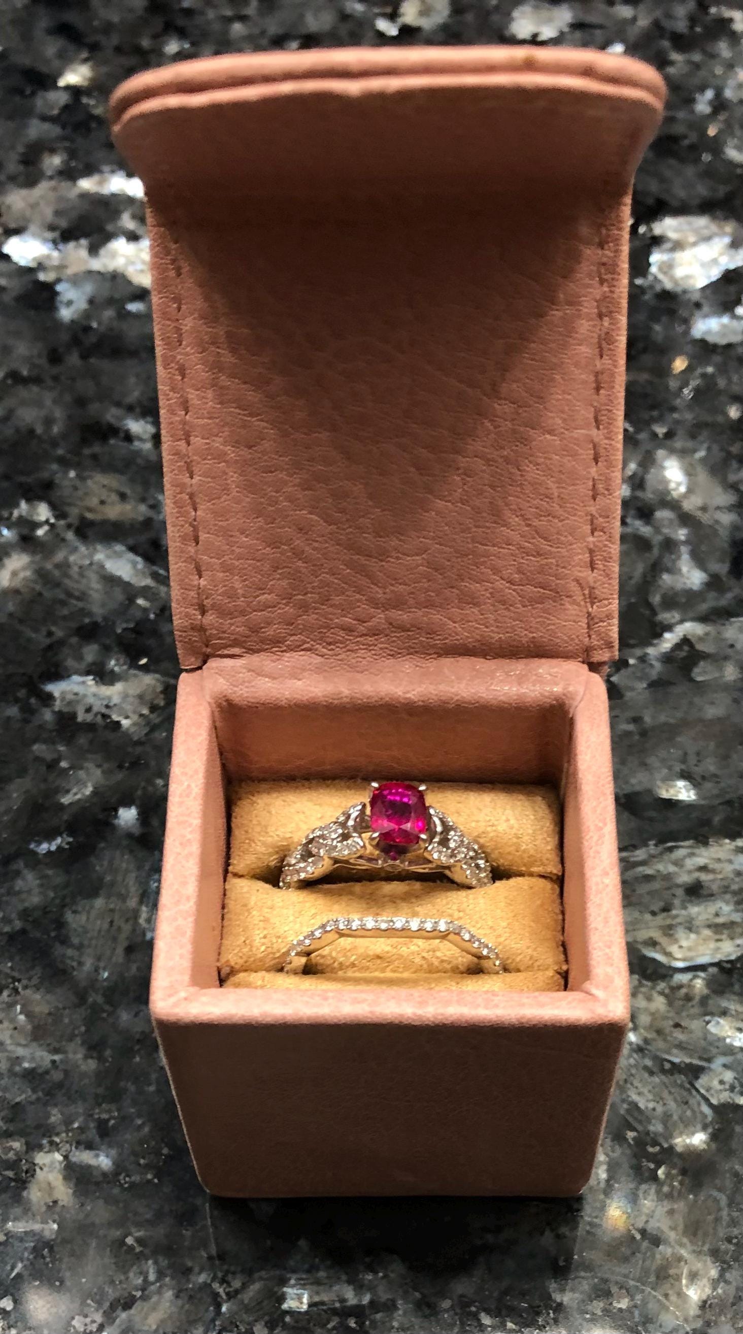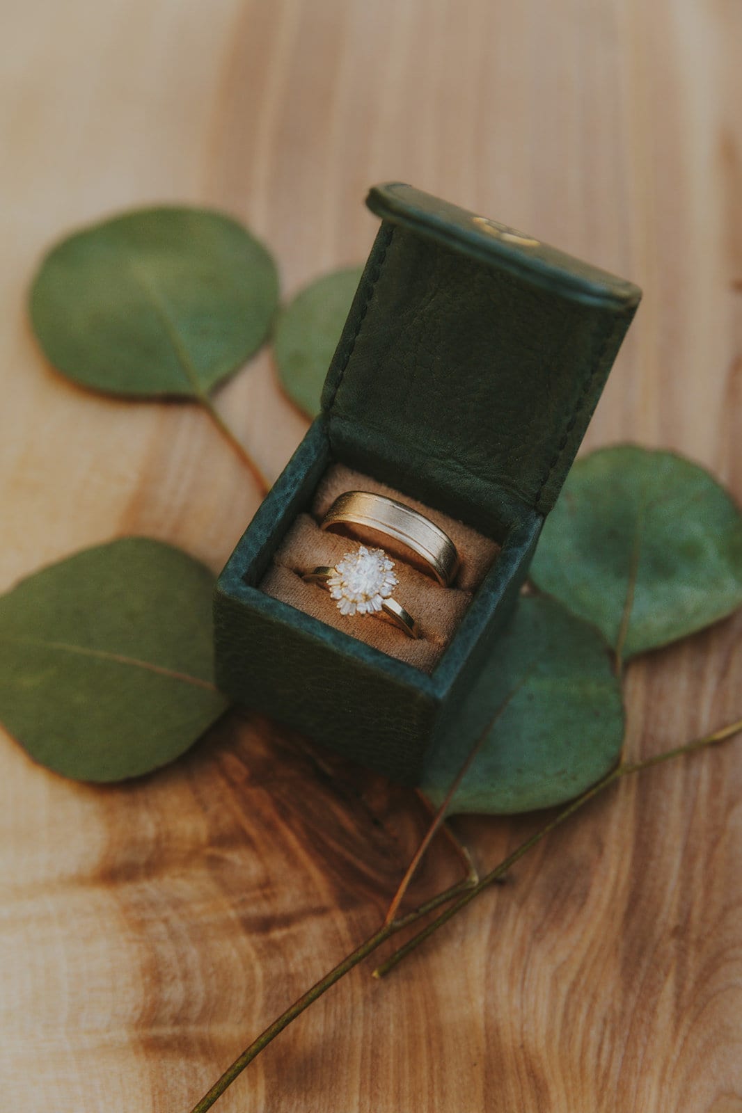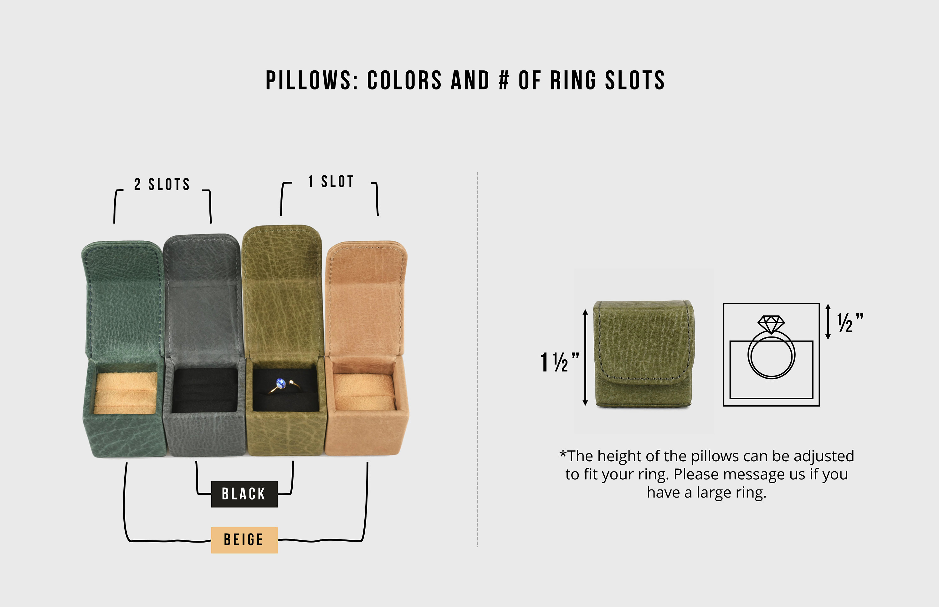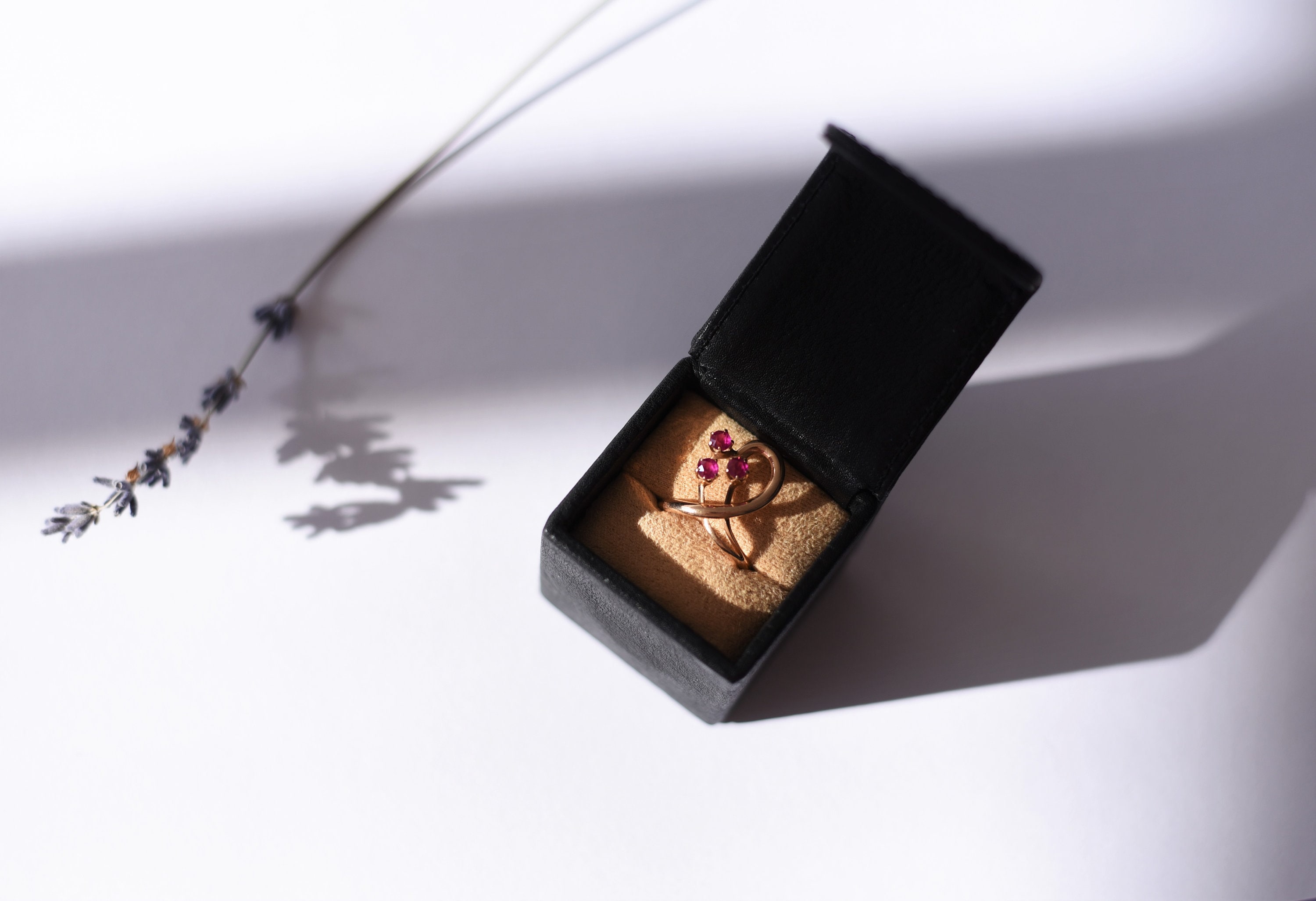 Your very special ring deserves a very special keepsake box 🎁. Made from beautiful full-grain cowhide leather, the keepsake box comes with 2 or 3 soft suede pillows to protect your treasures at home or on the go. The box closes with a secure magnetic flap. It can be personalized with up to 3 characters engraved on the top panel and one on the front panel.